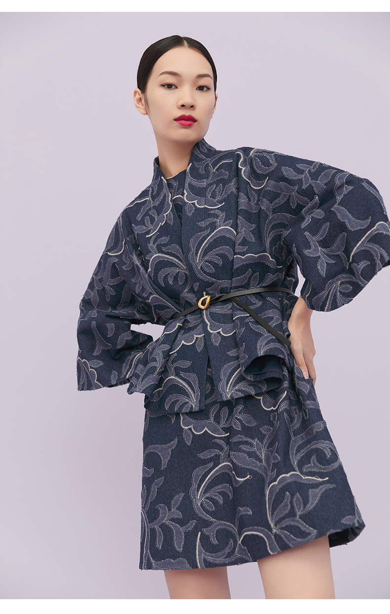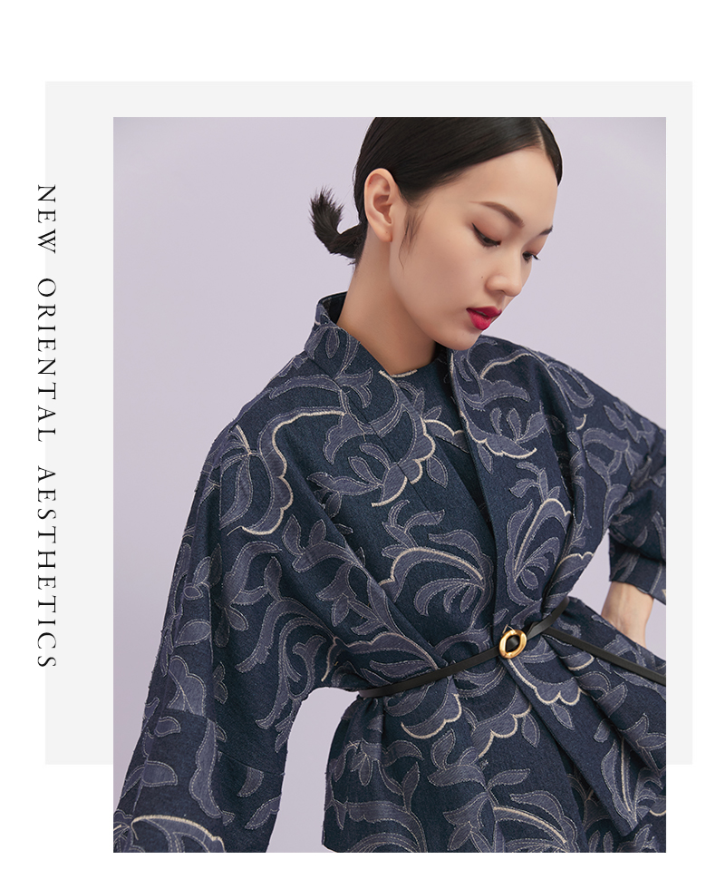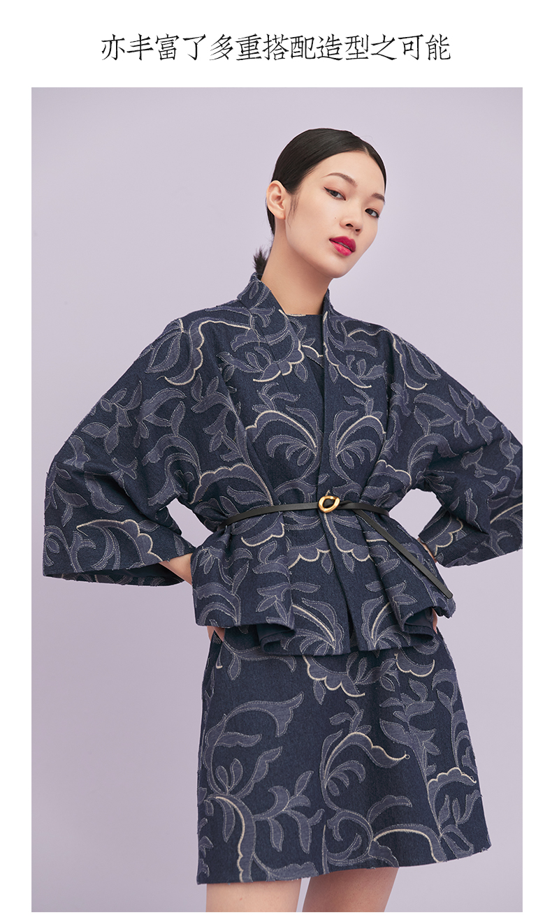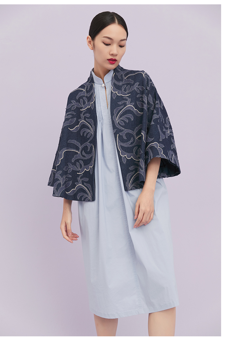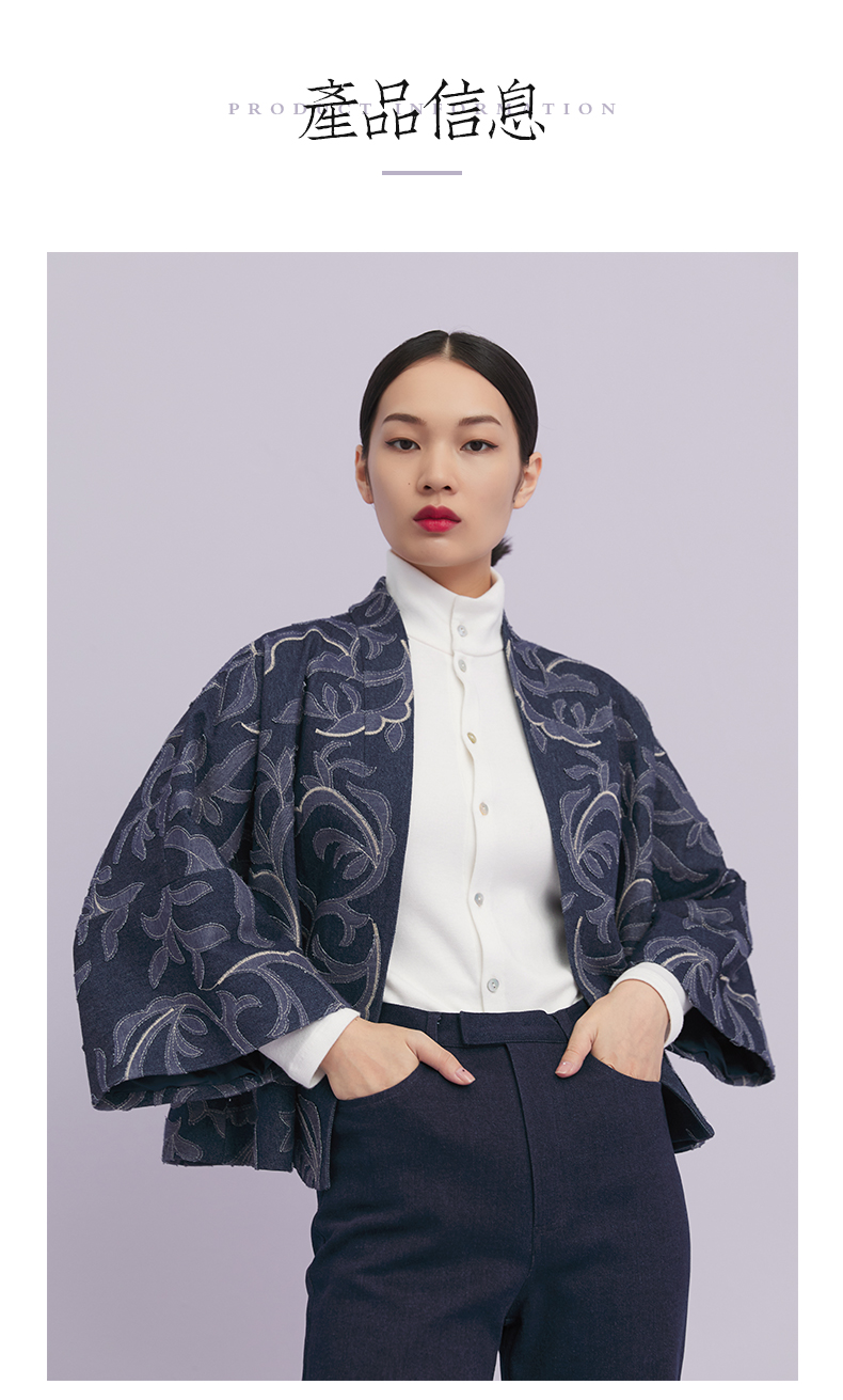 ASAYA1643 Shili Chunqiu Original Chinese Style Traditional Curling Grass Pattern Cutting Flower Embroidery Cowboy Improved Hanfu Wide Sleeve Short Coat for Women