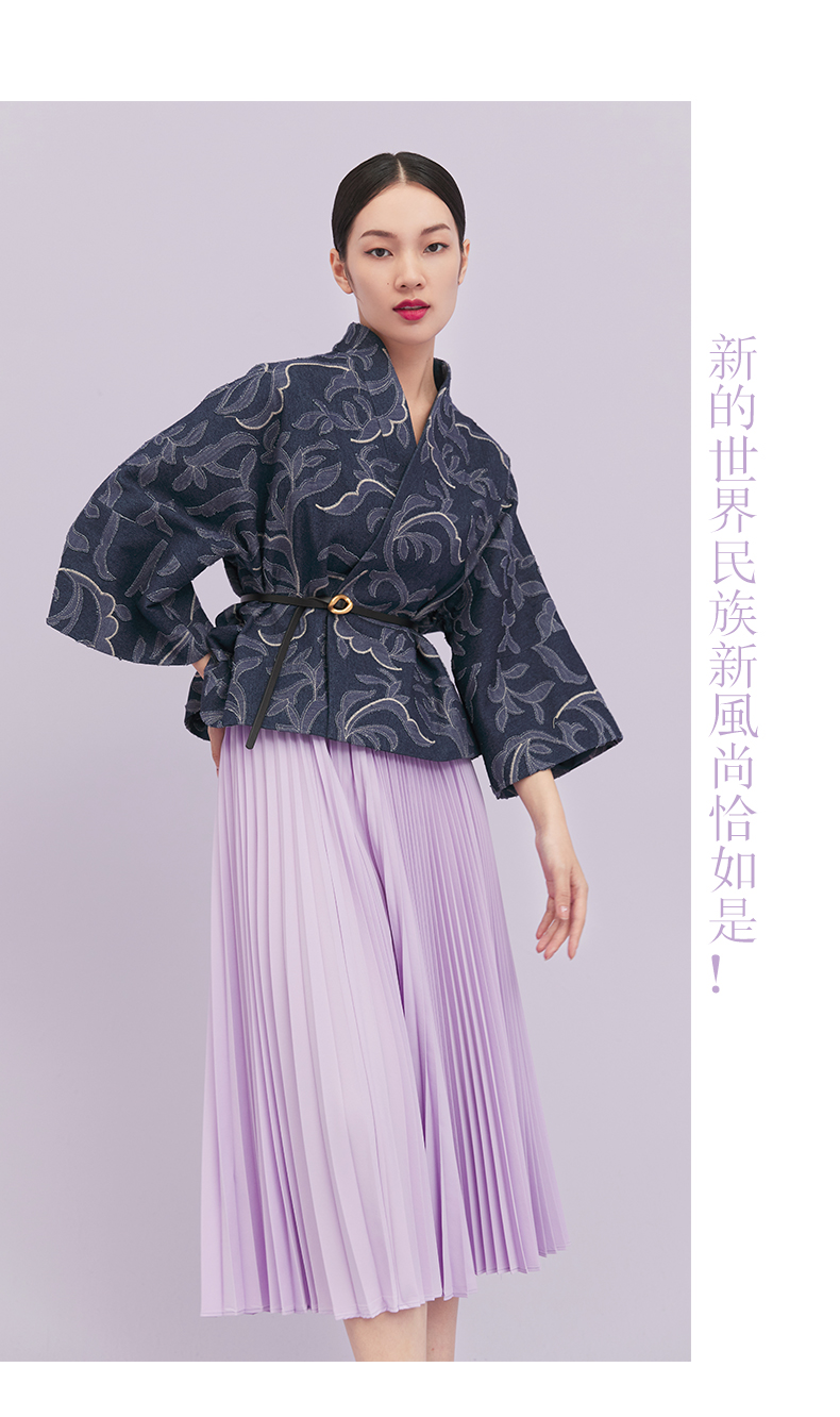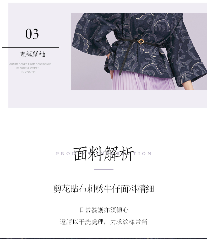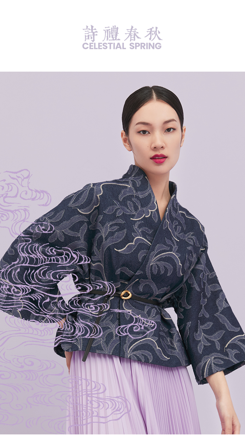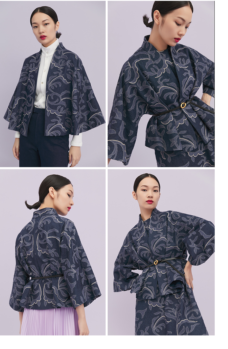 ASAYA1643 Shili Chunqiu Original Chinese Style Traditional Curling Grass Pattern Cutting Flower Embroidery Cowboy Improved Hanfu Wide Sleeve Short Coat for Women