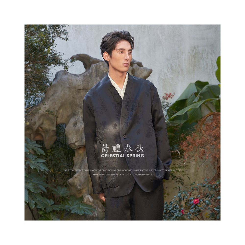 ASAYAHomme1538– Midnight Bloom Relaxed Short Set 🌸🖤