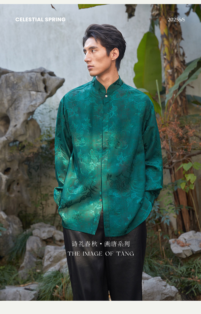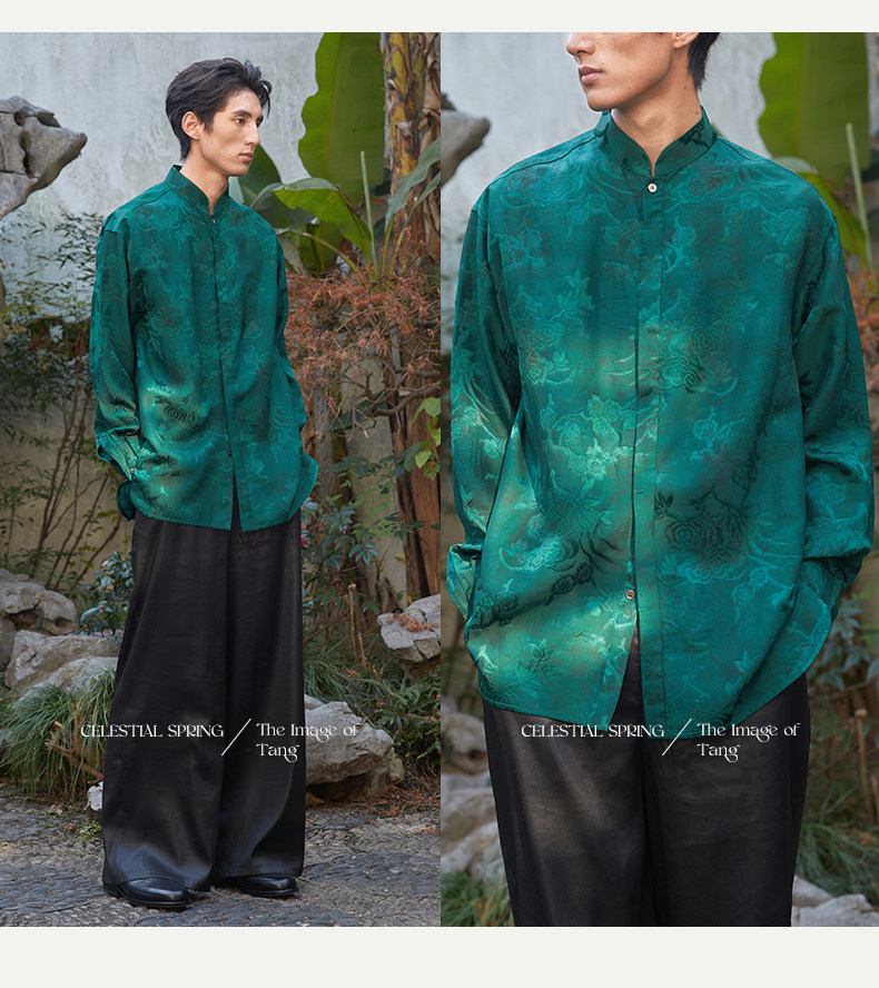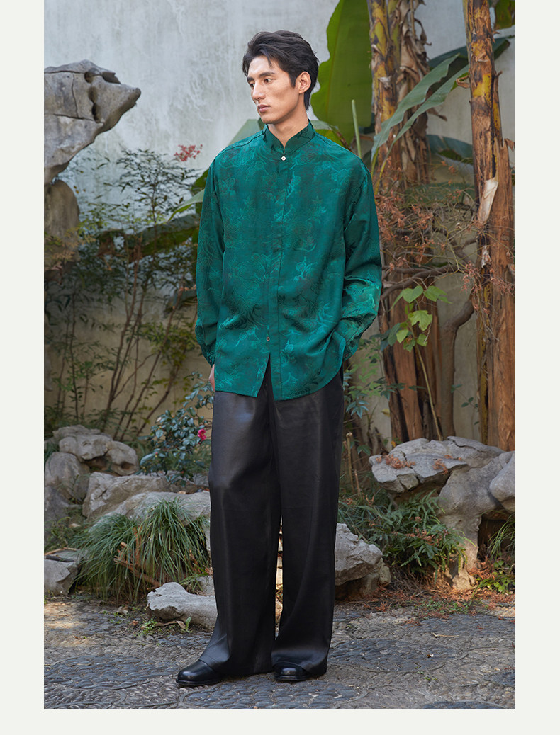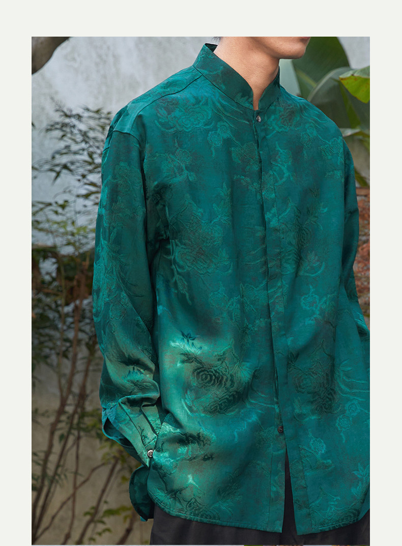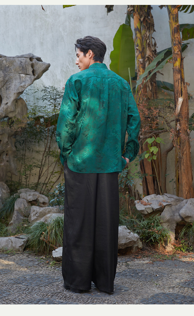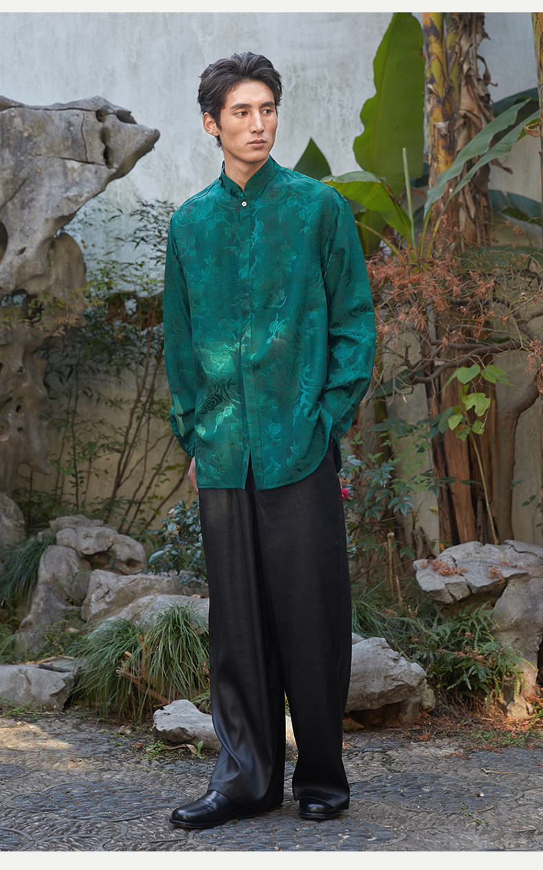 ASAYAHOMME1512 – Emerald Celestial Silk Shirt 🌿🐉