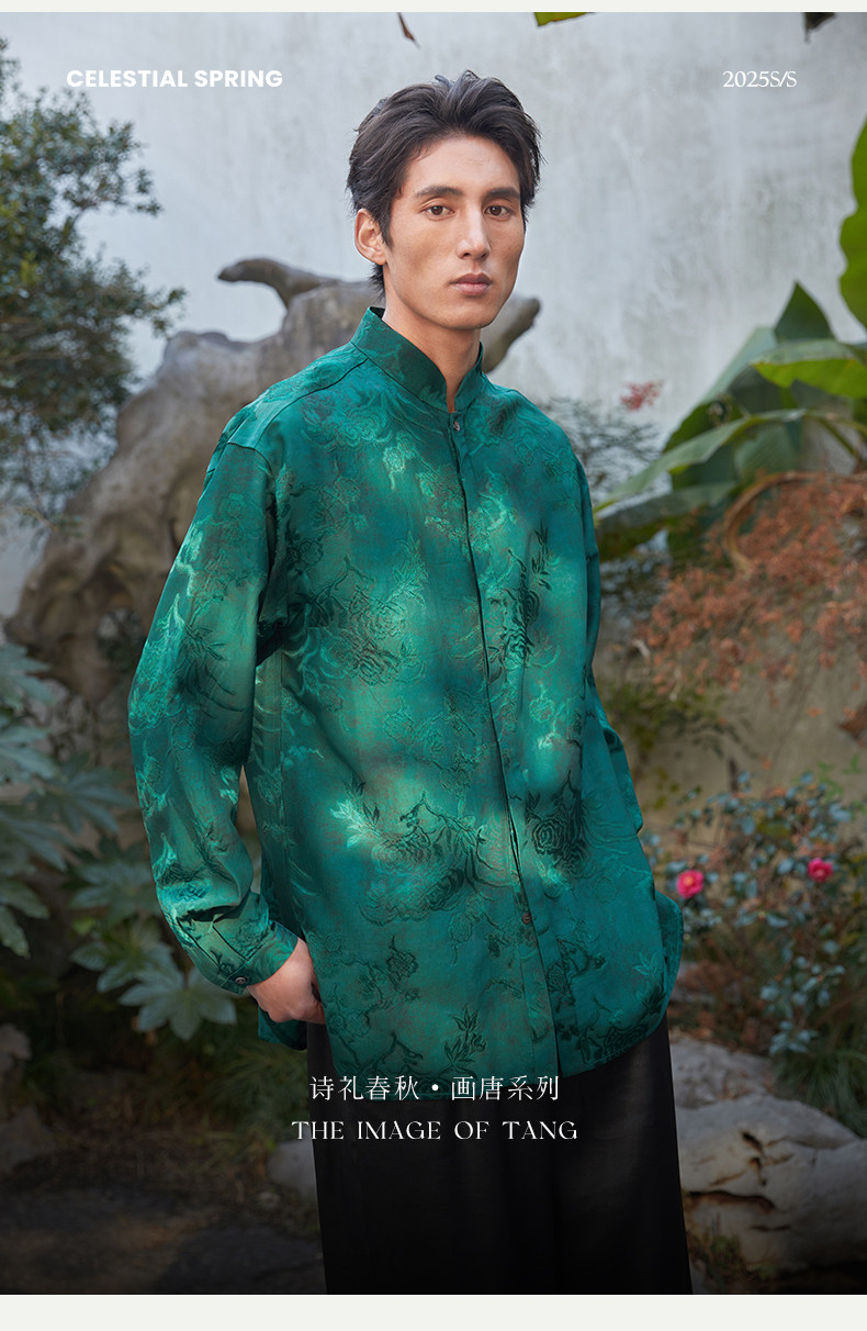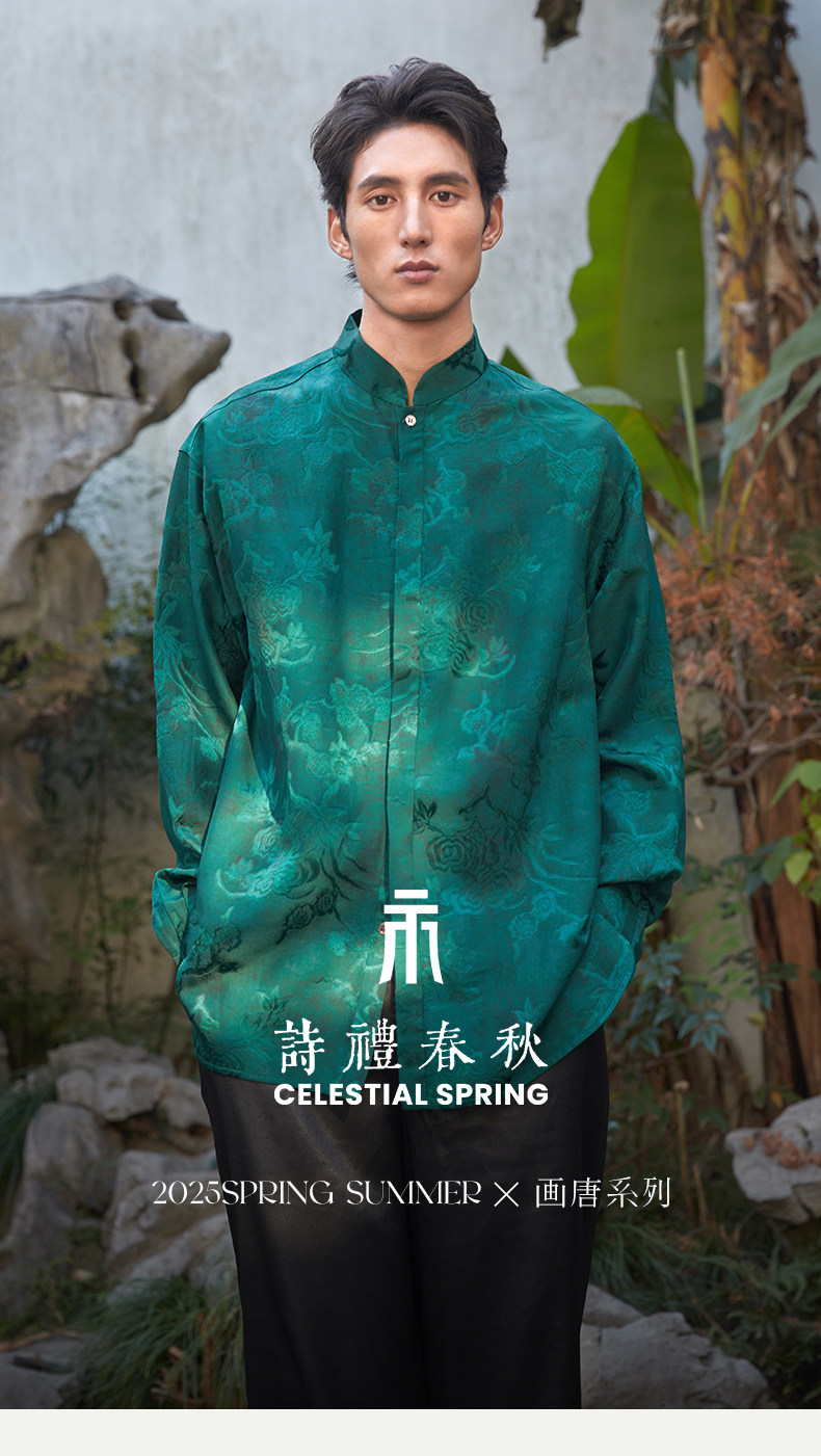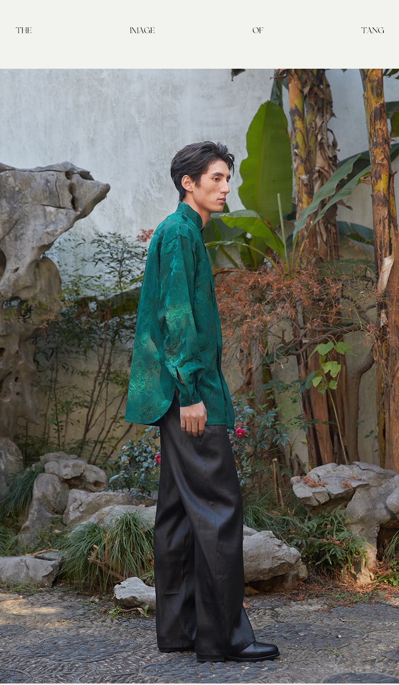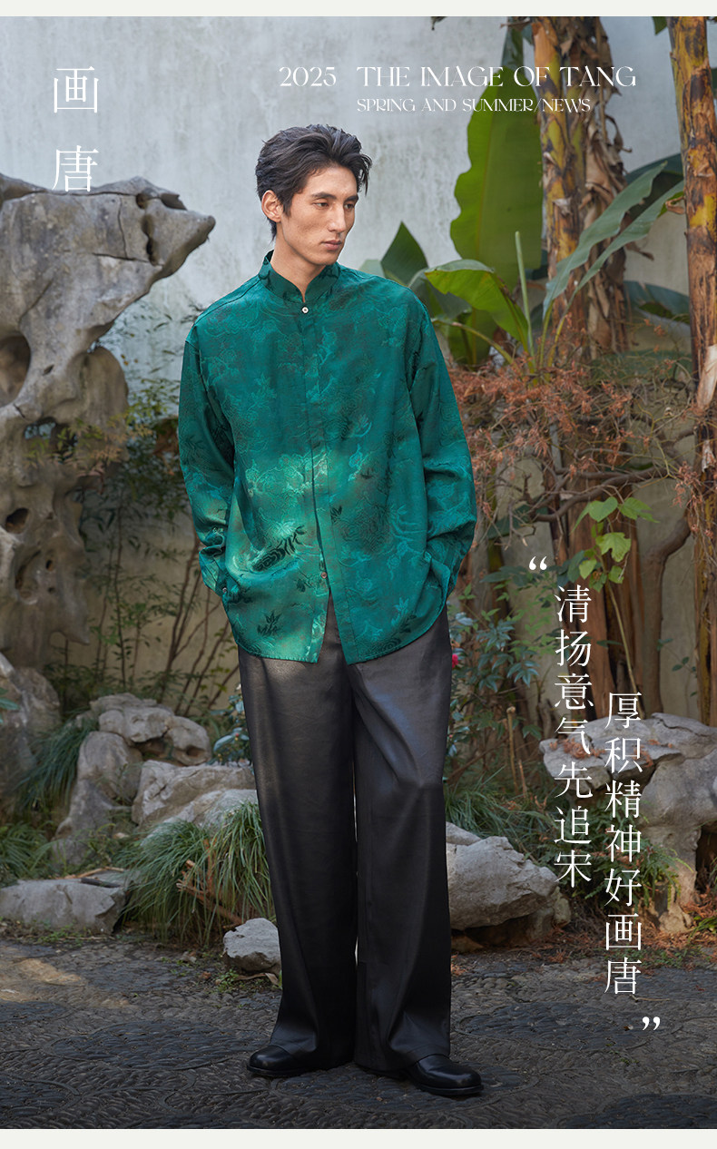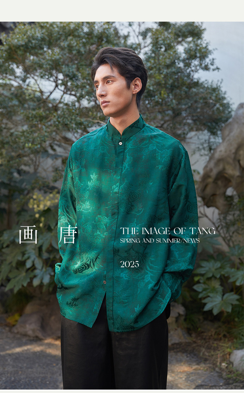 ASAYAHOMME1512 – Emerald Celestial Silk Shirt 🌿🐉