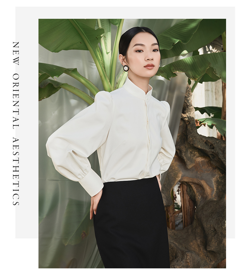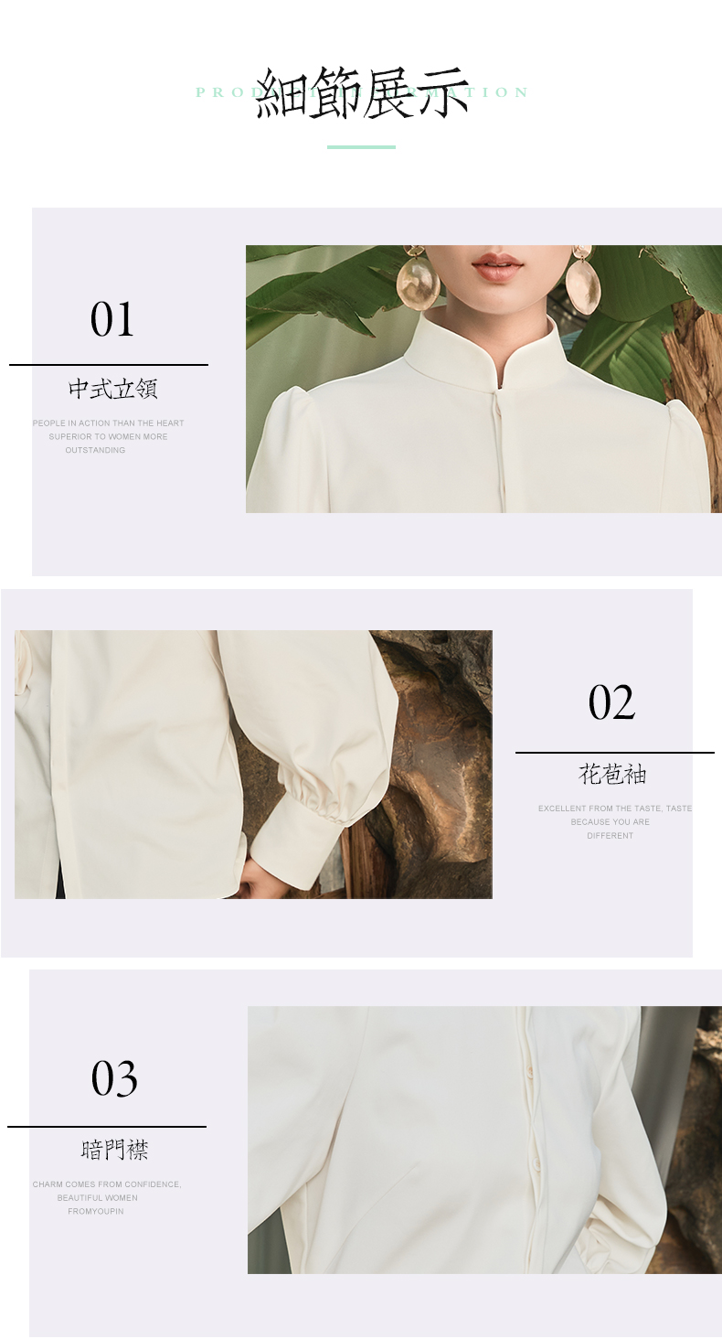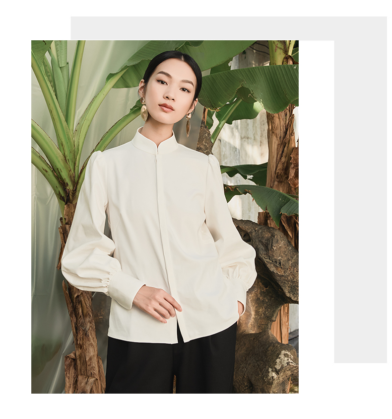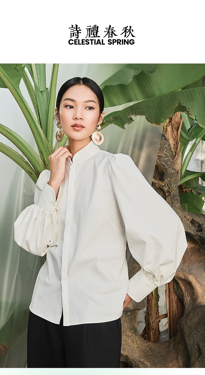 ASAYA1644 Shili Chunqiu Original New Chinese style Top Chinese style Long sleeved Shirt Retro white Elegant Tea Clothes Stand up Collar Shirt for Women