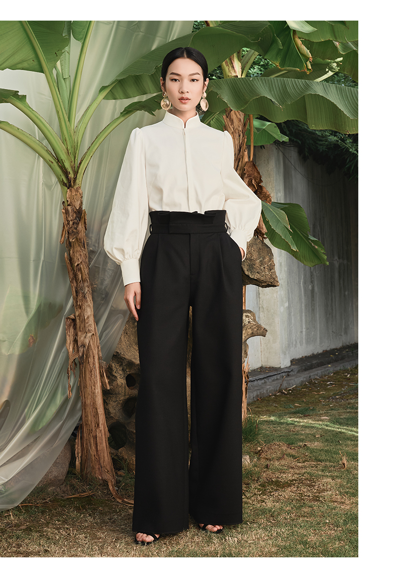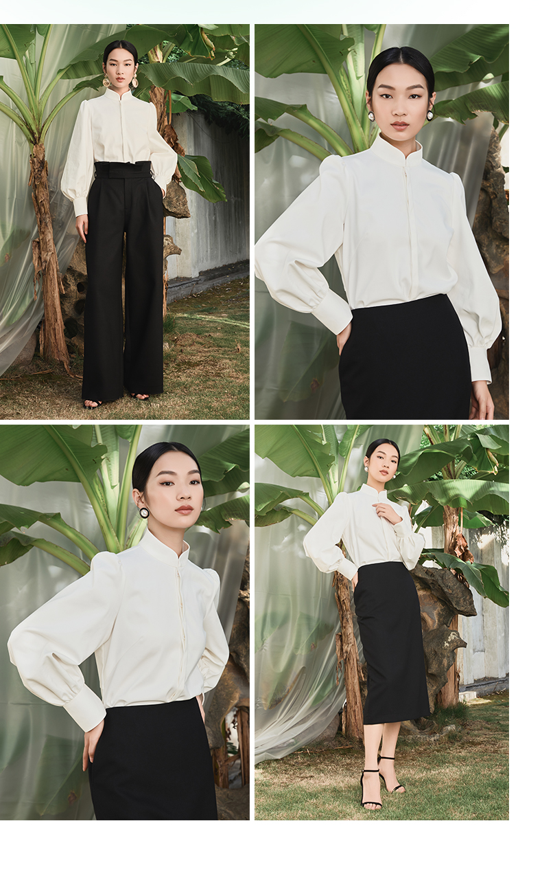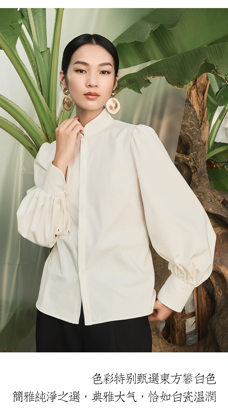 ASAYA1644 Shili Chunqiu Original New Chinese style Top Chinese style Long sleeved Shirt Retro white Elegant Tea Clothes Stand up Collar Shirt for Women