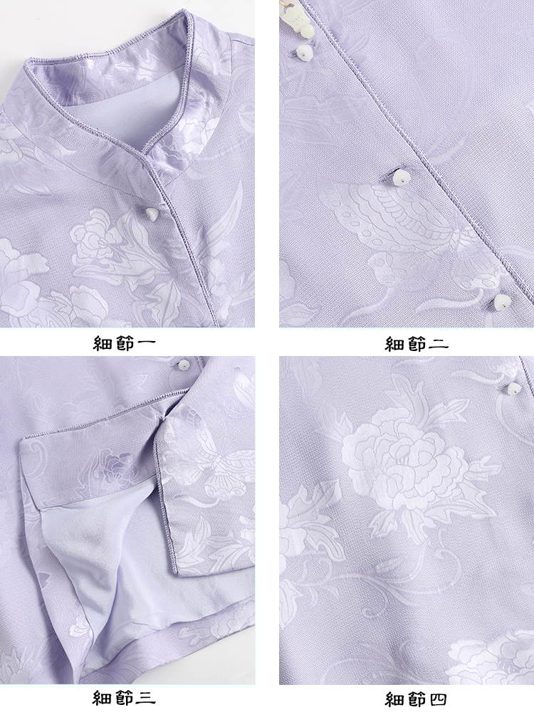 Asaya317 - silk flower Luo double breasted shower head jade button top spring and autumn jacket
