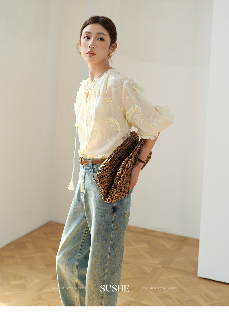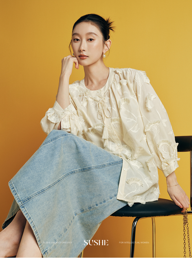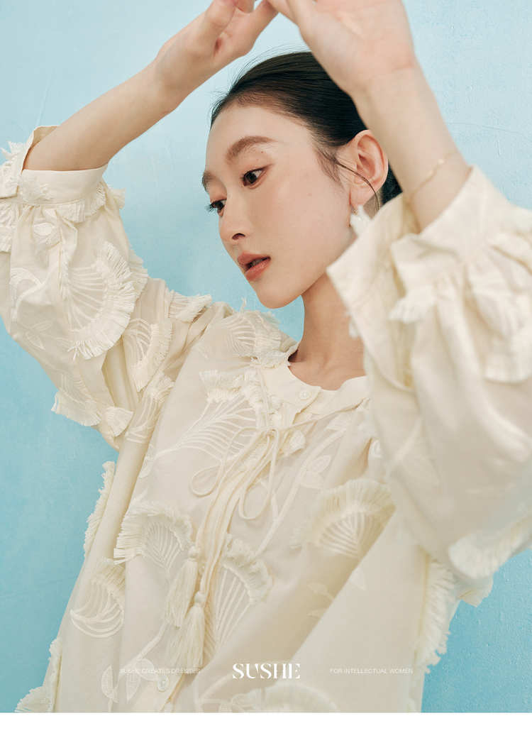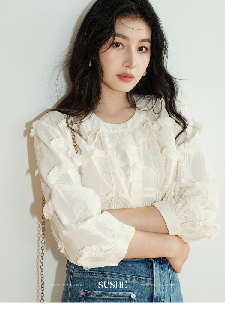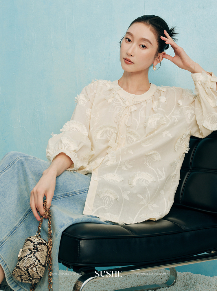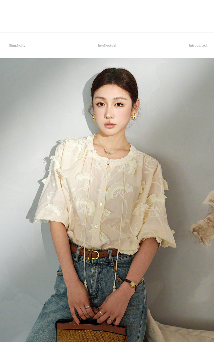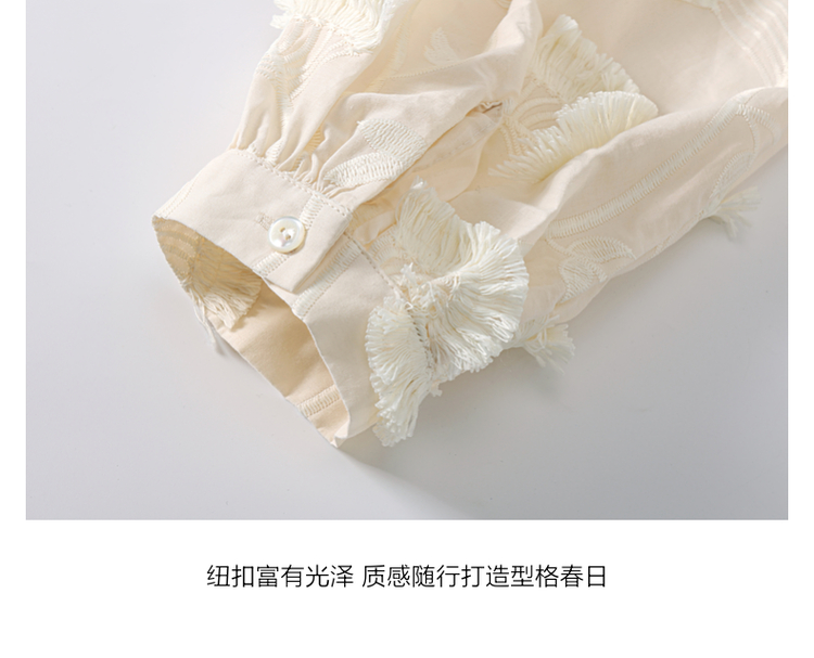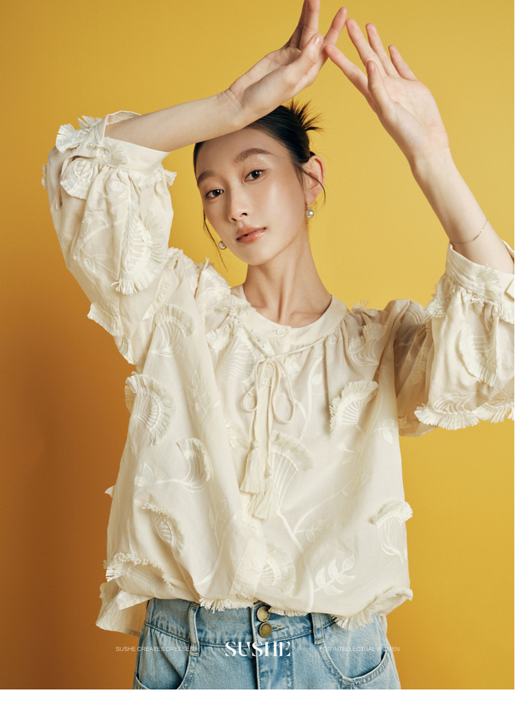 ASAYA2389 three-dimensional embroidery cotton French top niche high-end white fringed shirt