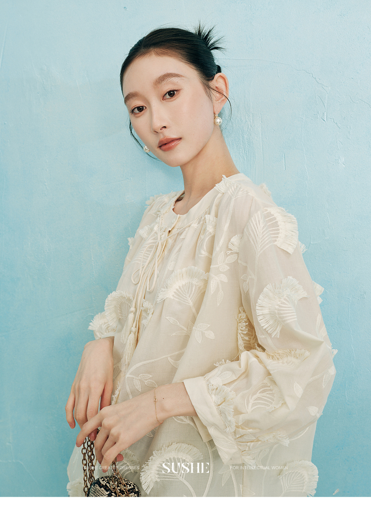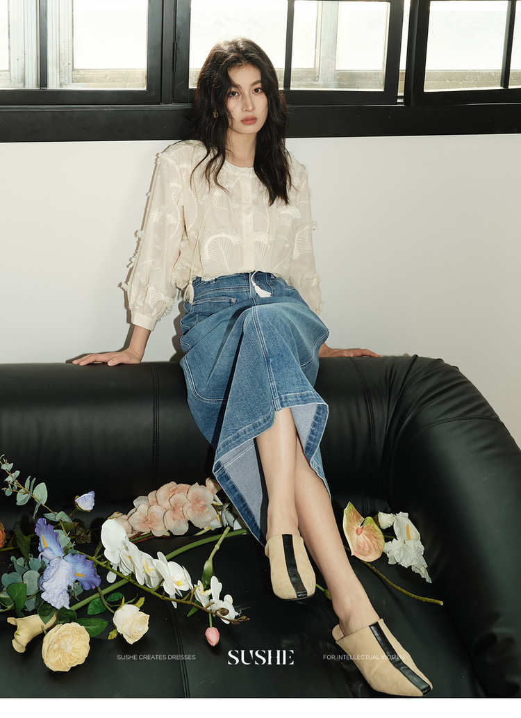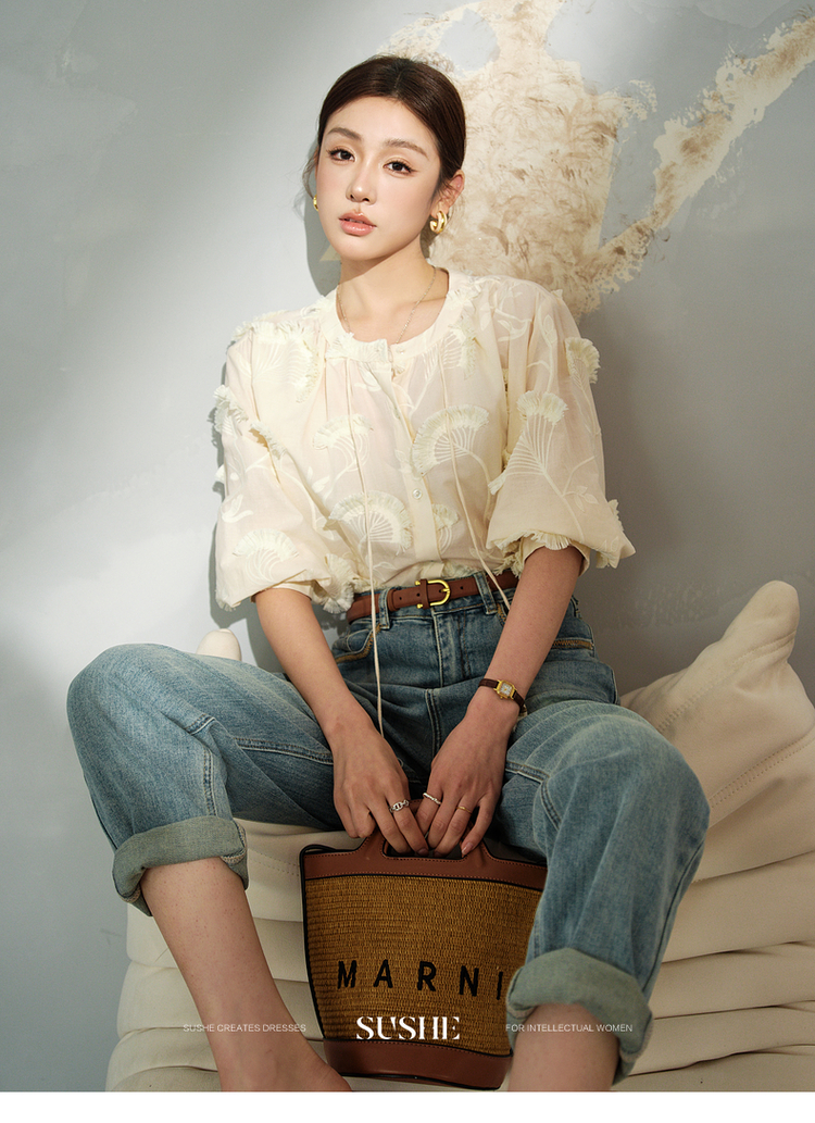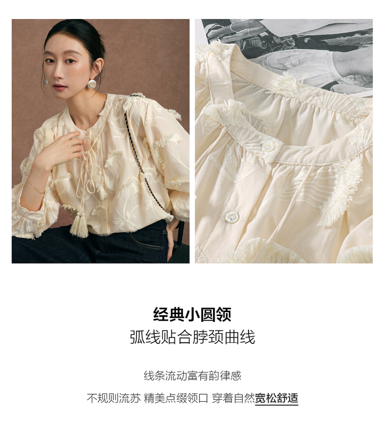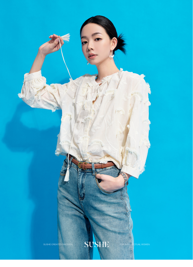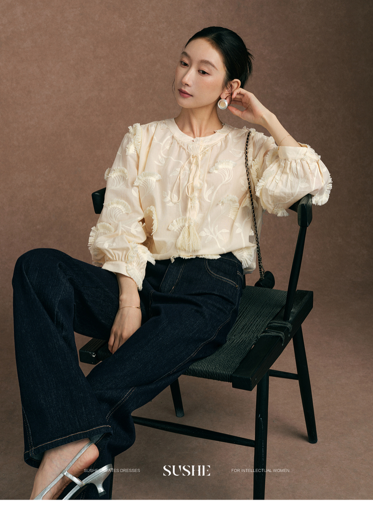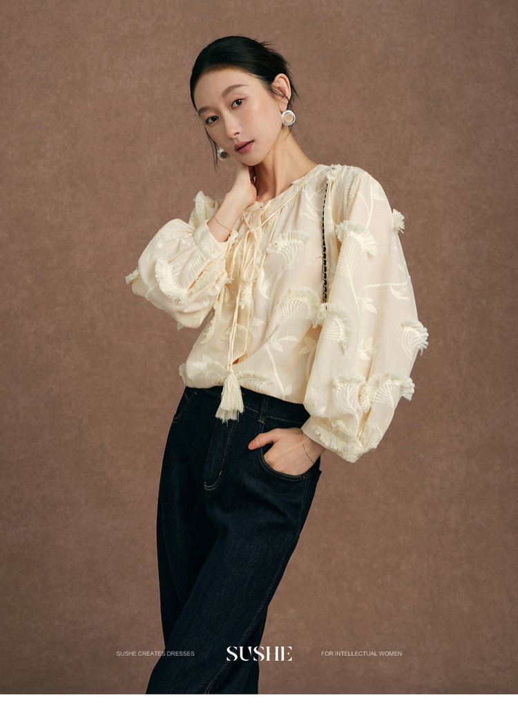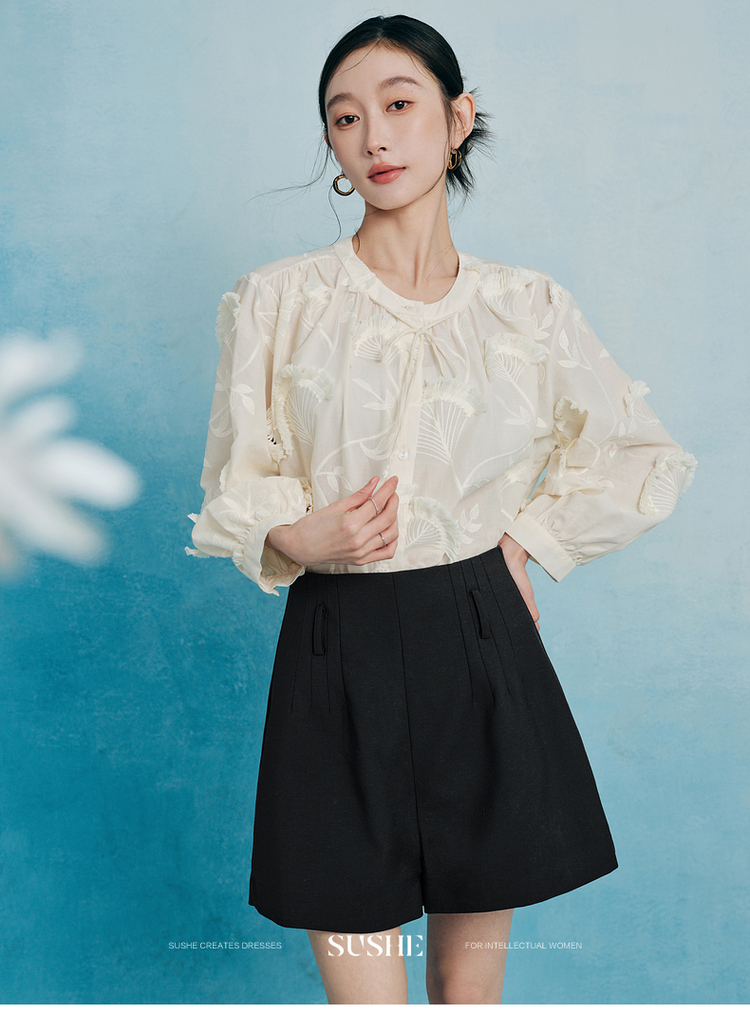 ASAYA2389 three-dimensional embroidery cotton French top niche high-end white fringed shirt