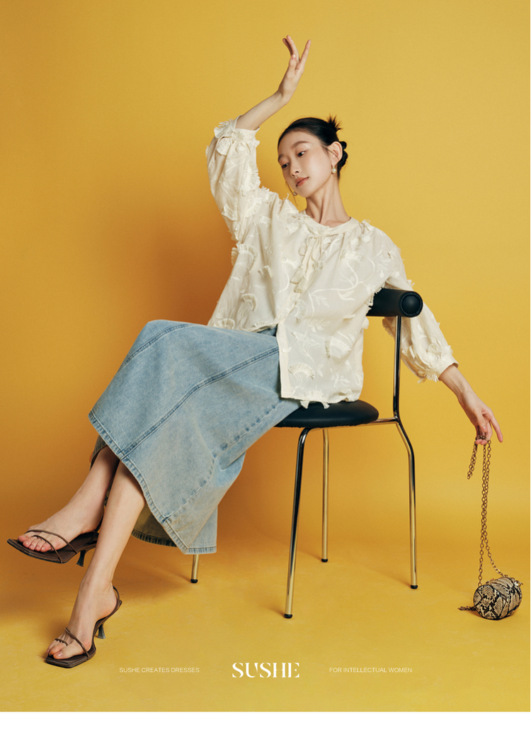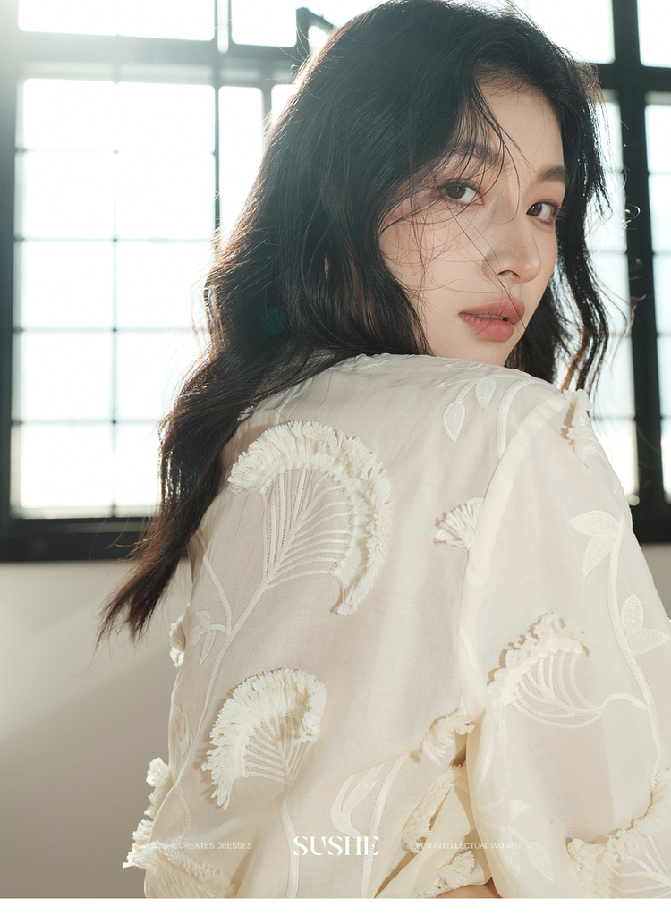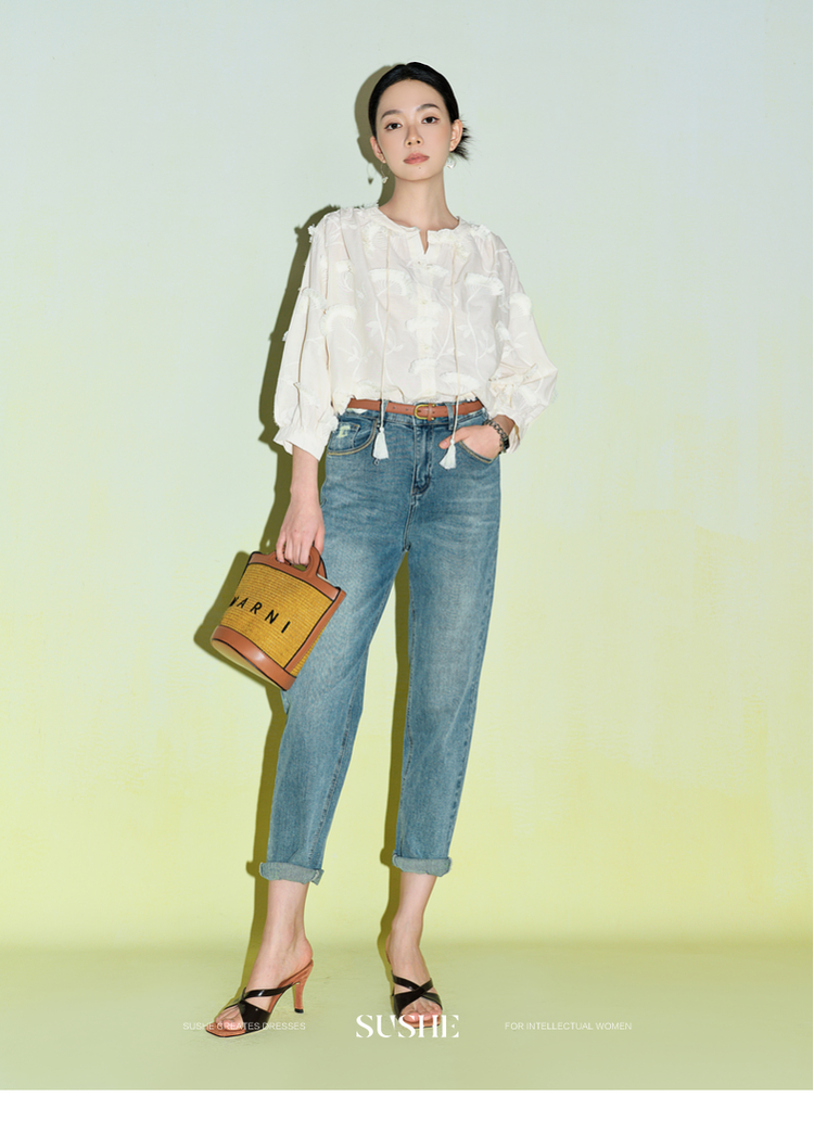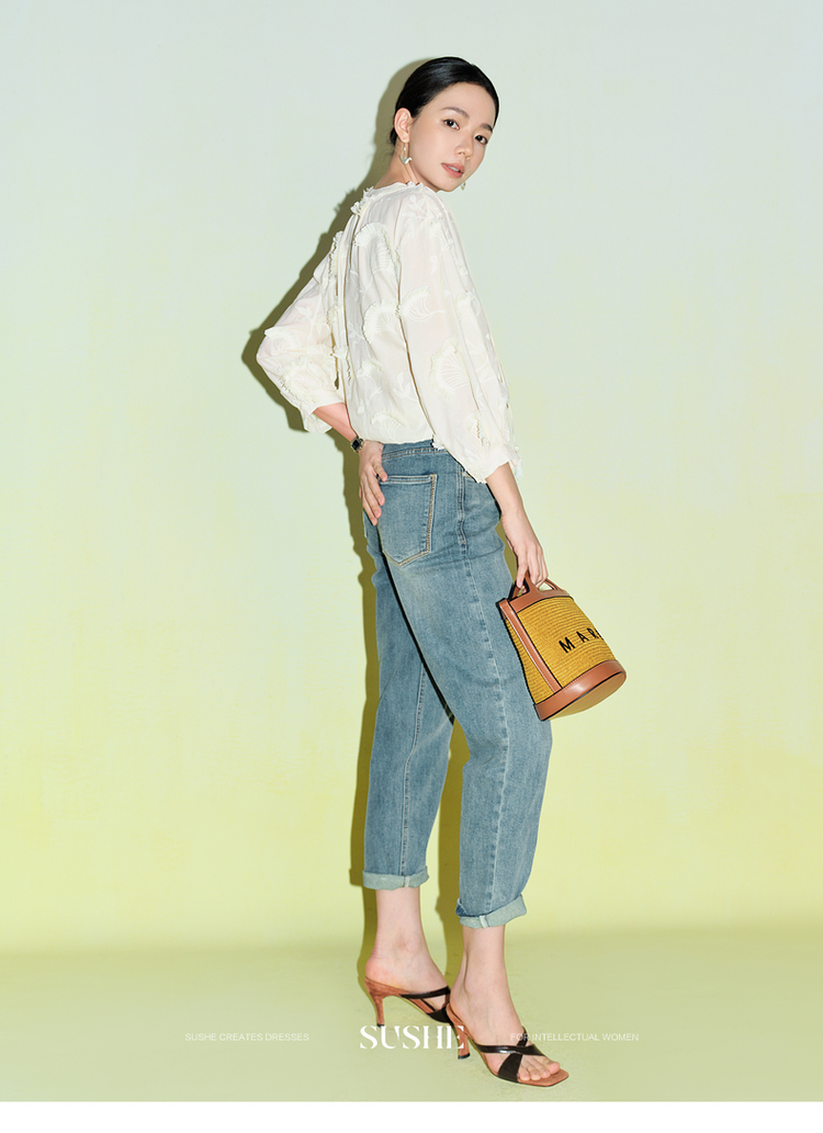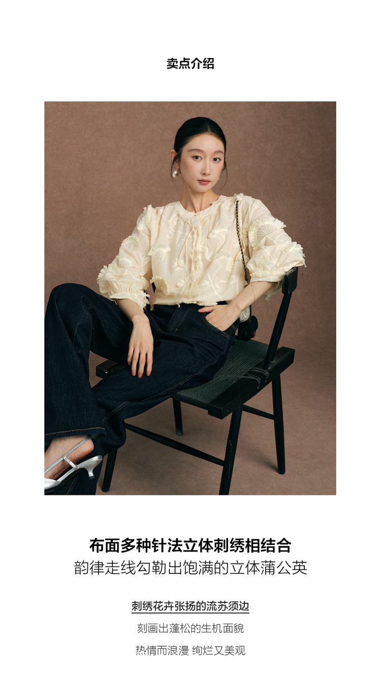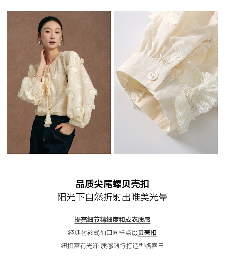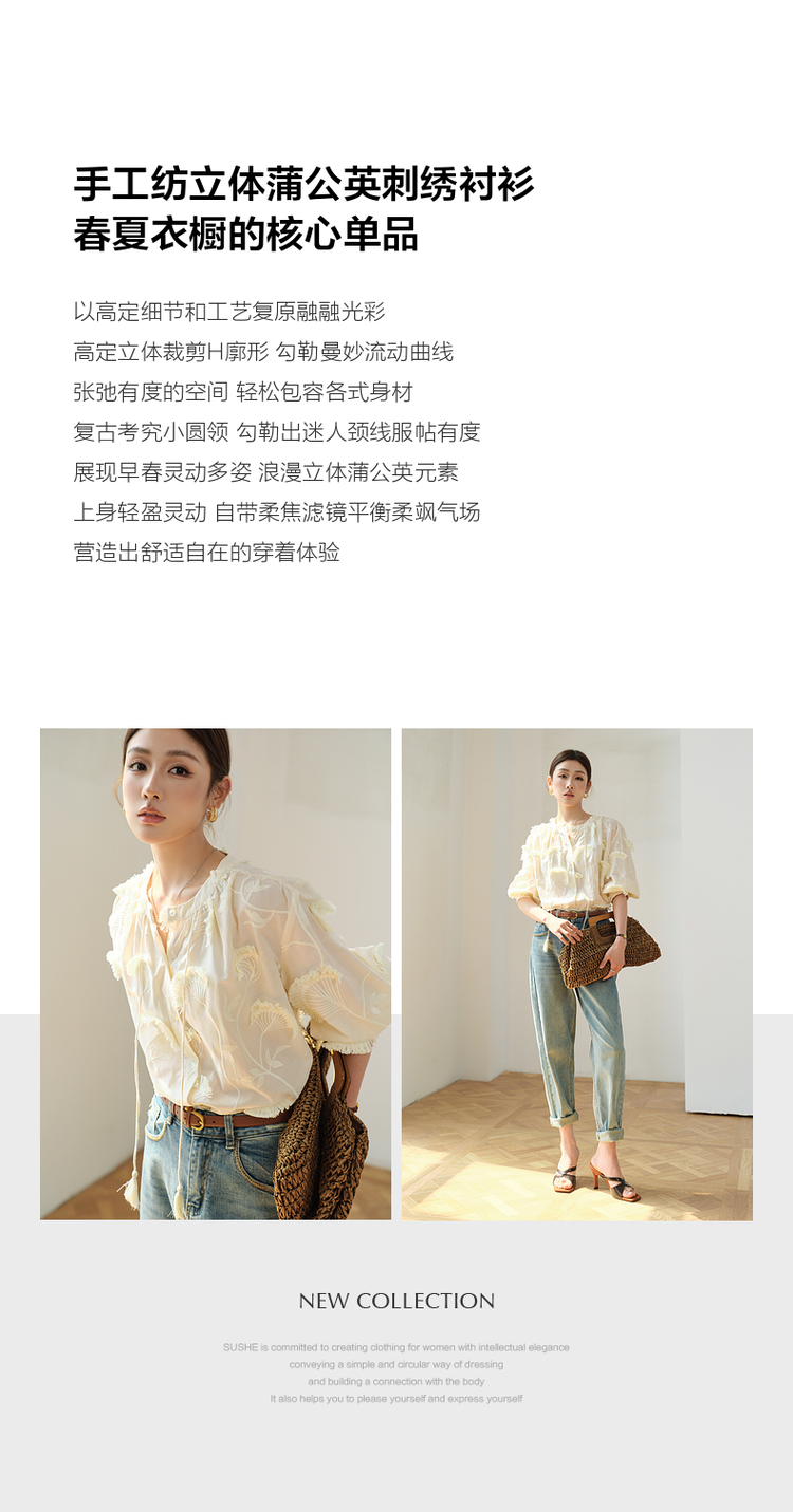 ASAYA2389 three-dimensional embroidery cotton French top niche high-end white fringed shirt