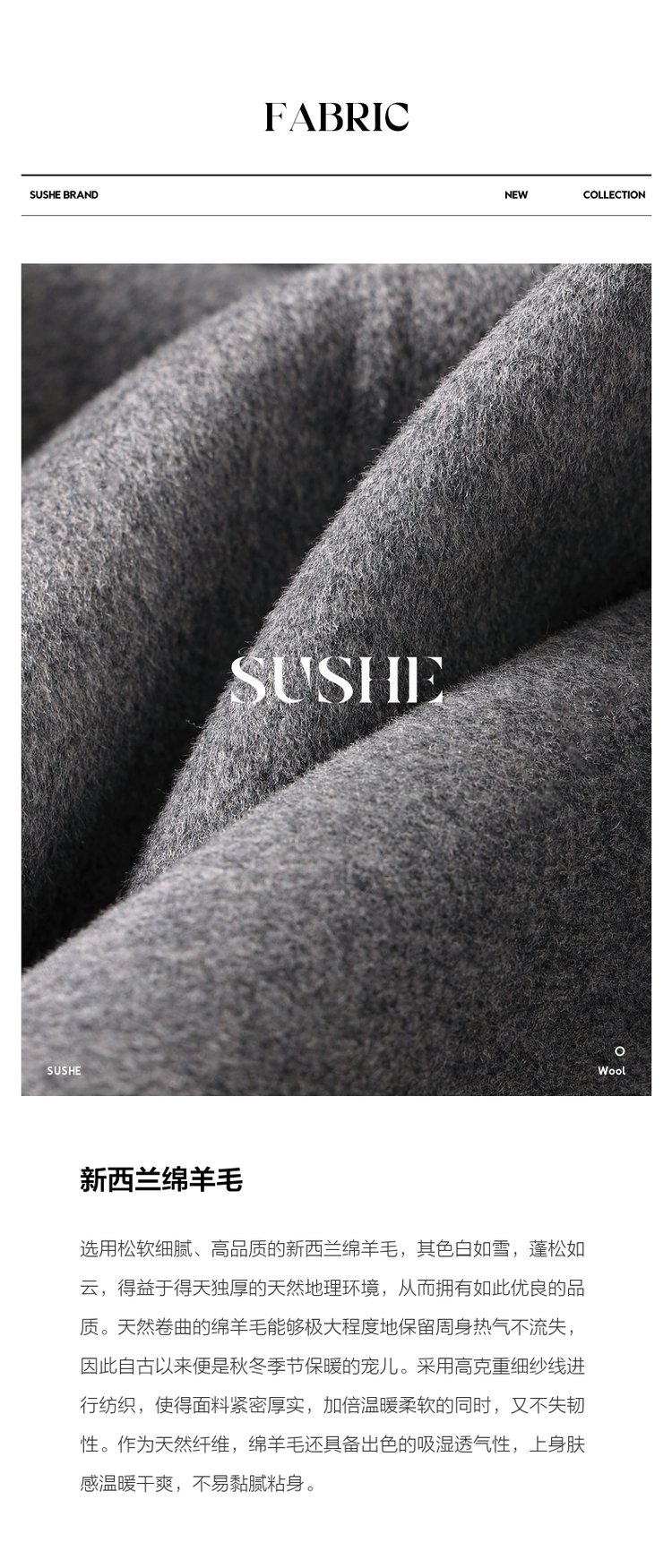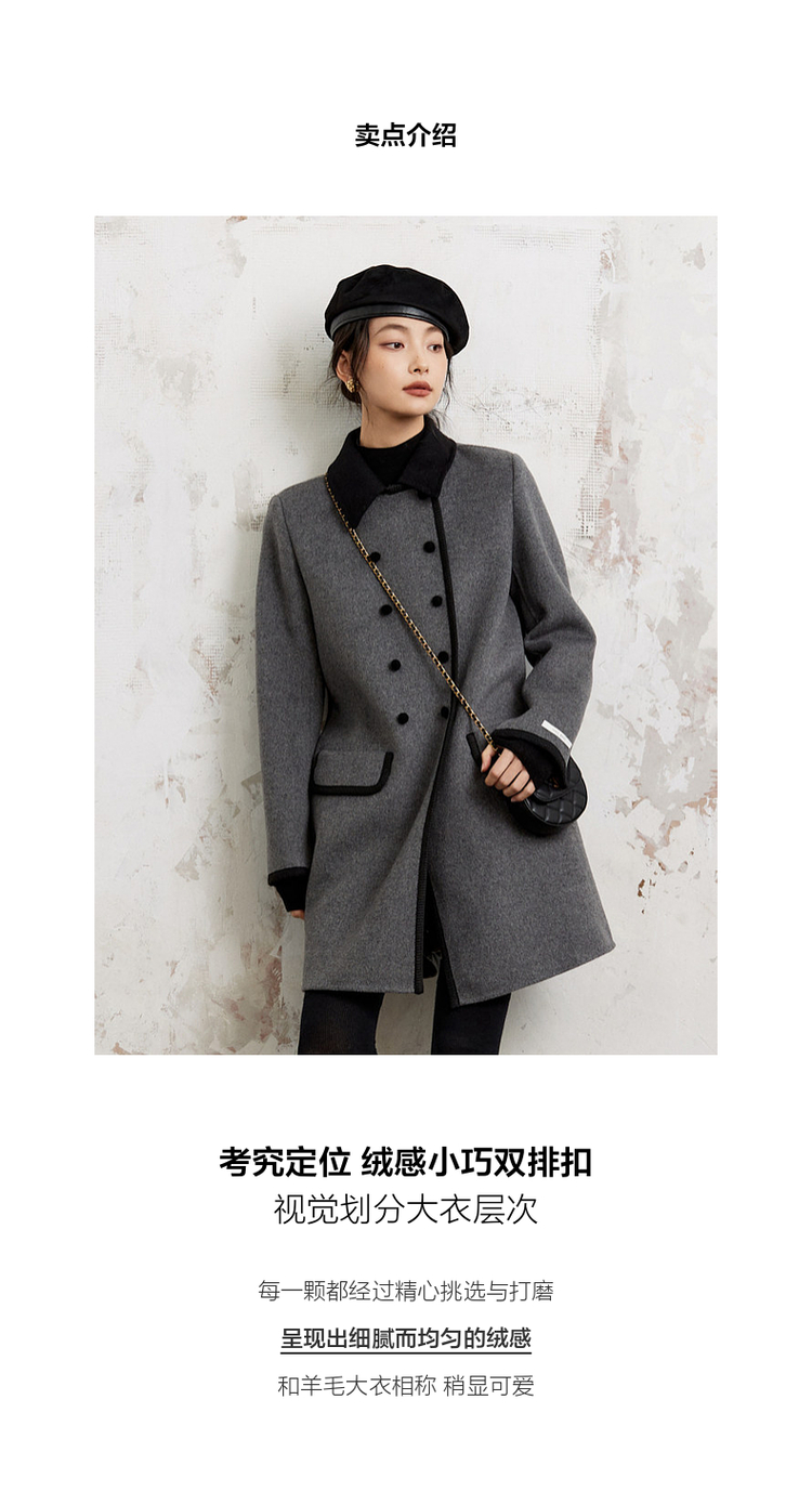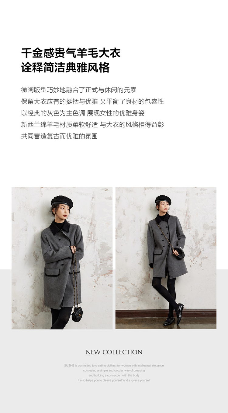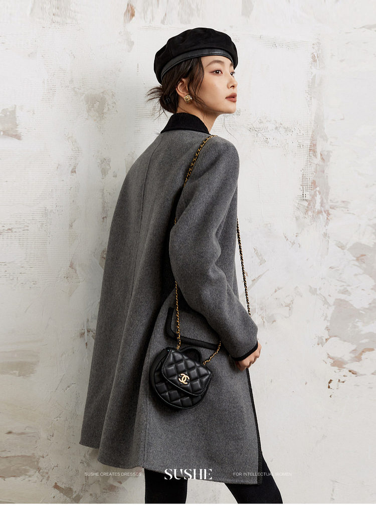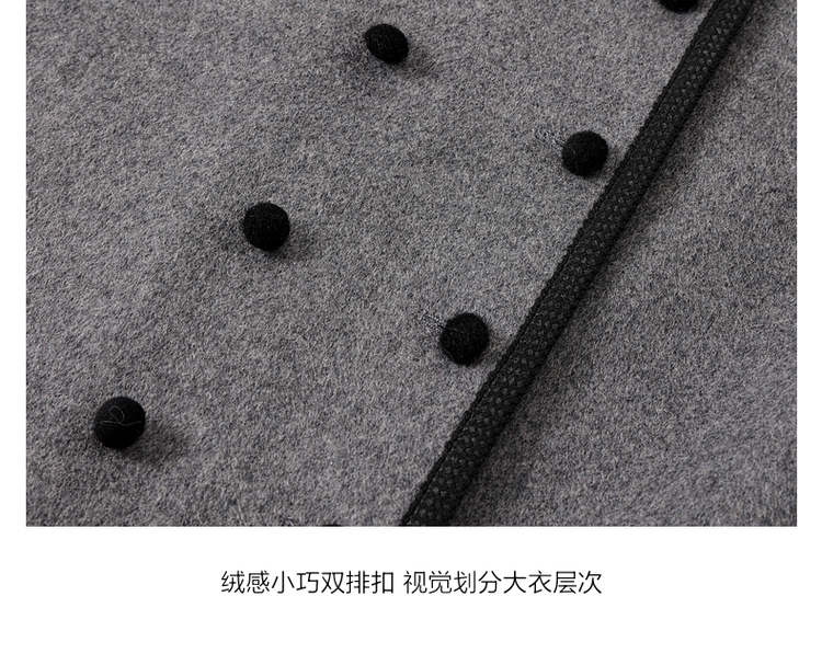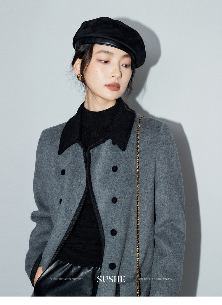 ASAYA2593 Sheep wool literary style contrasting double-breasted gray double-sided straight coat