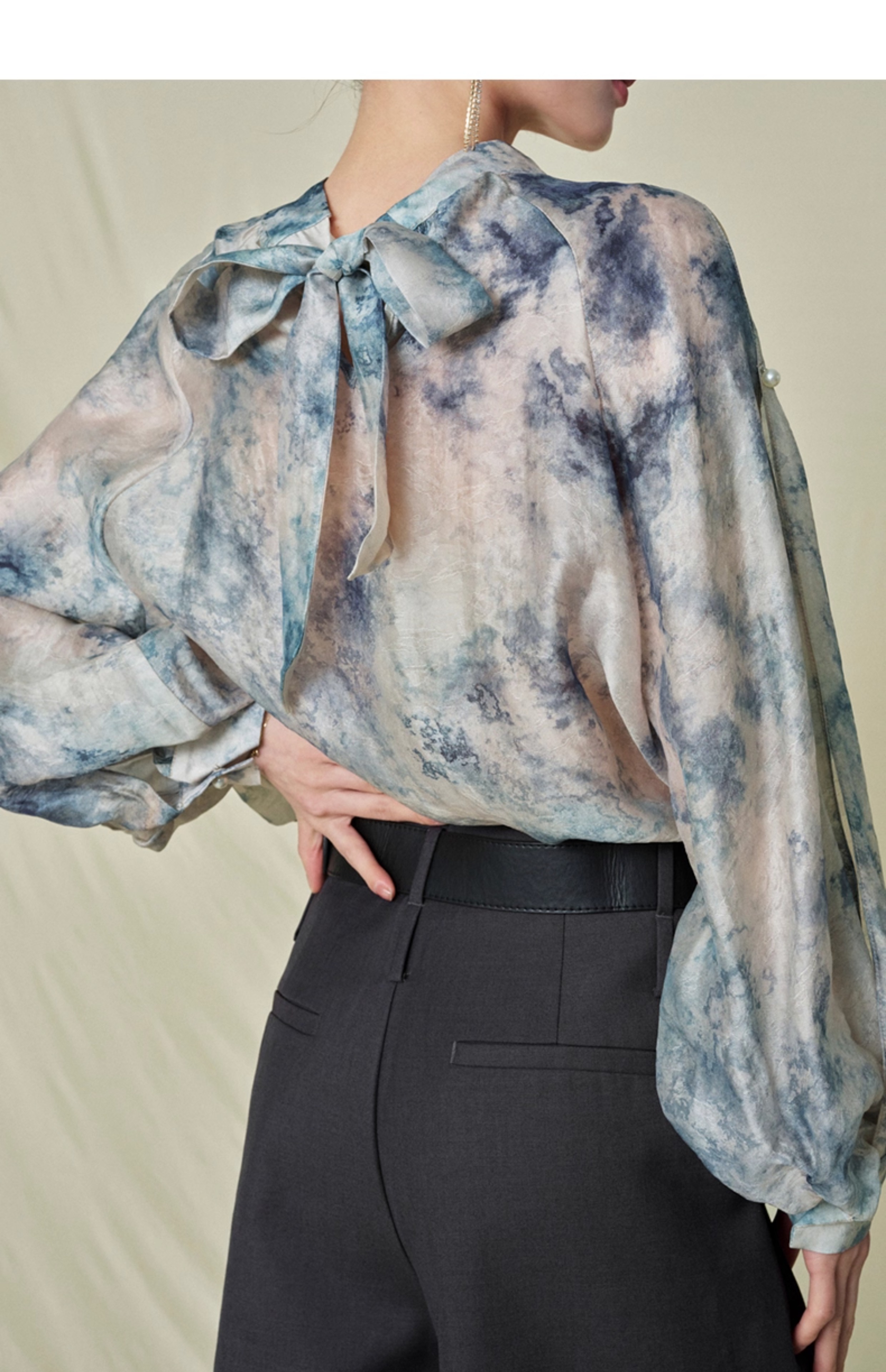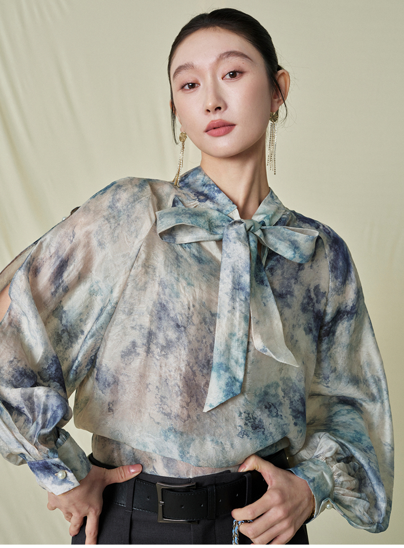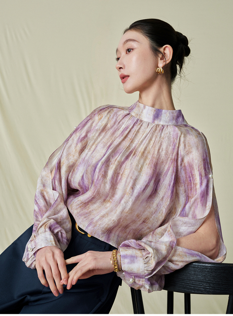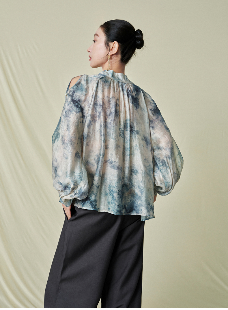 ASAYA4741 – Celestial Watercolor Sheer Blouse 🌌🎨