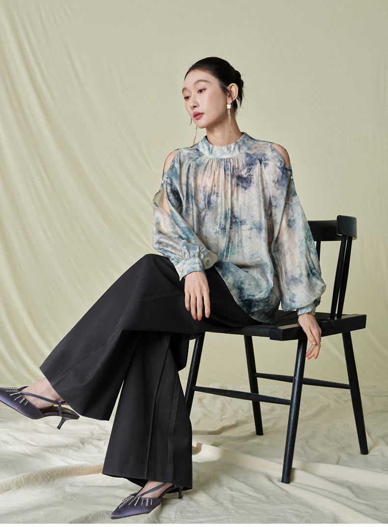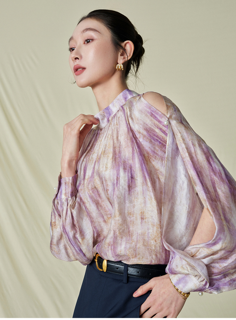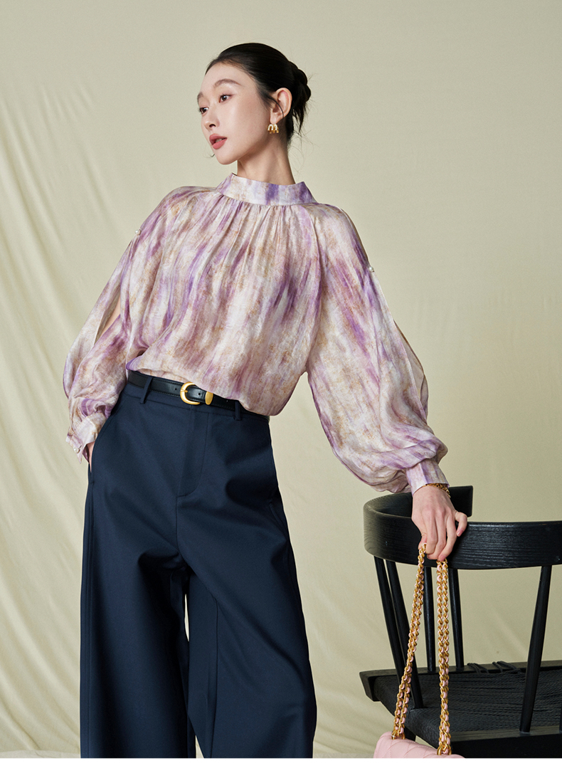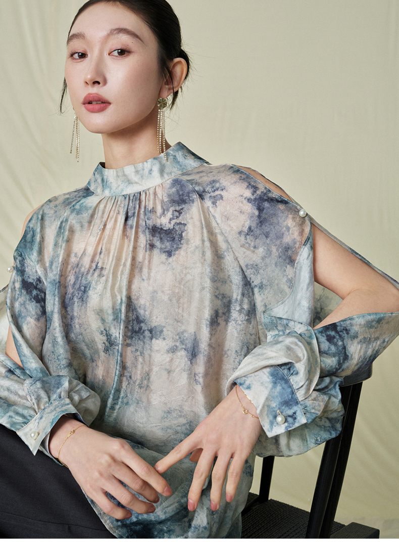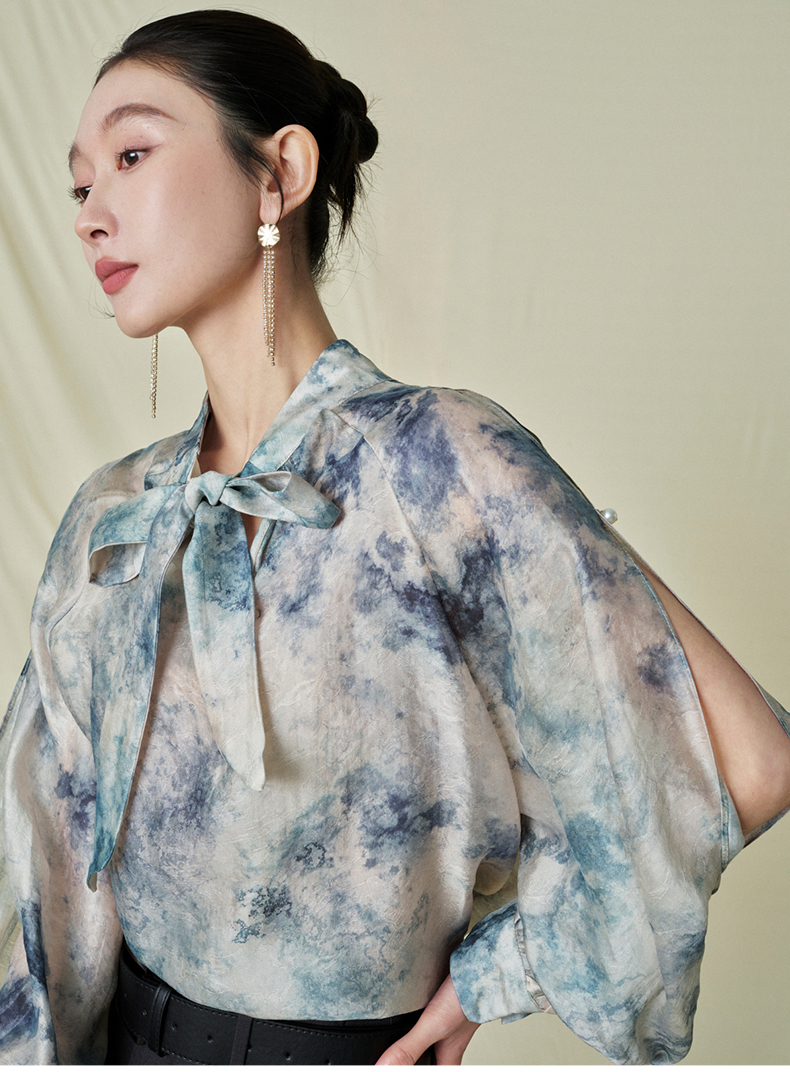ASAYA4741 – Celestial Watercolor Sheer Blouse 🌌🎨