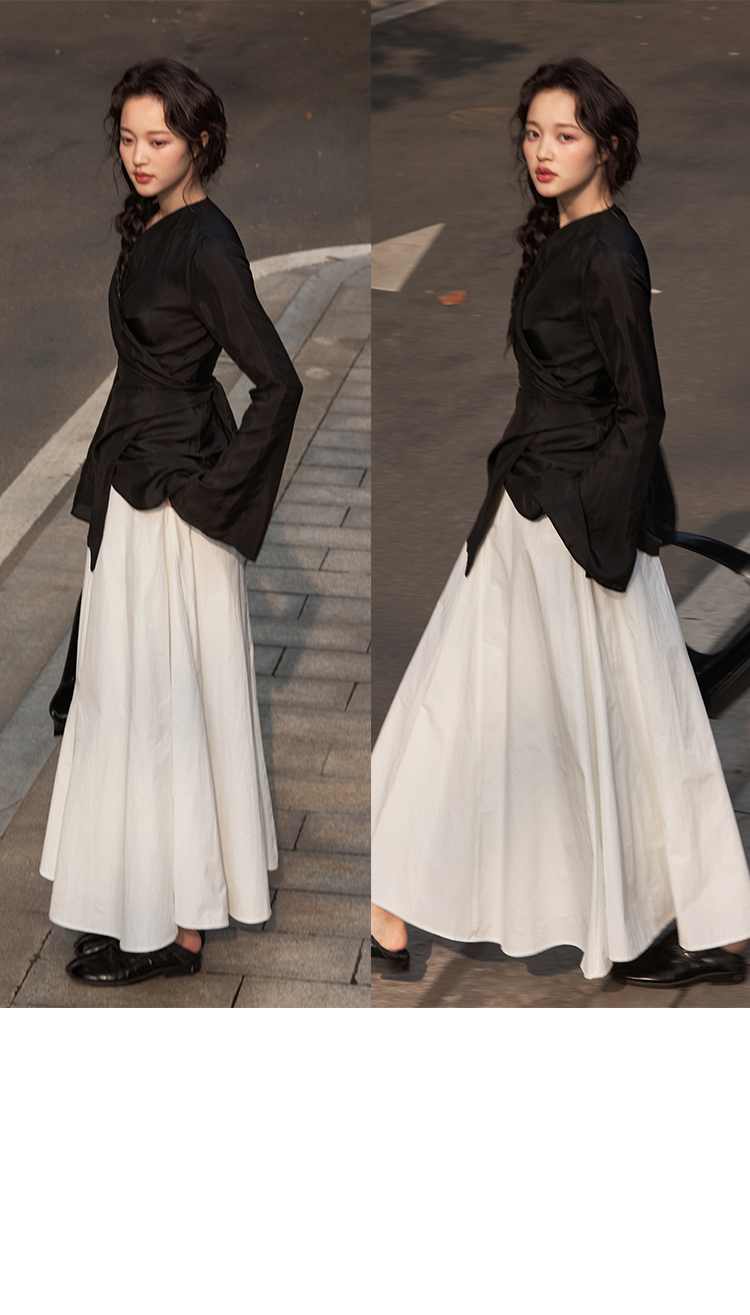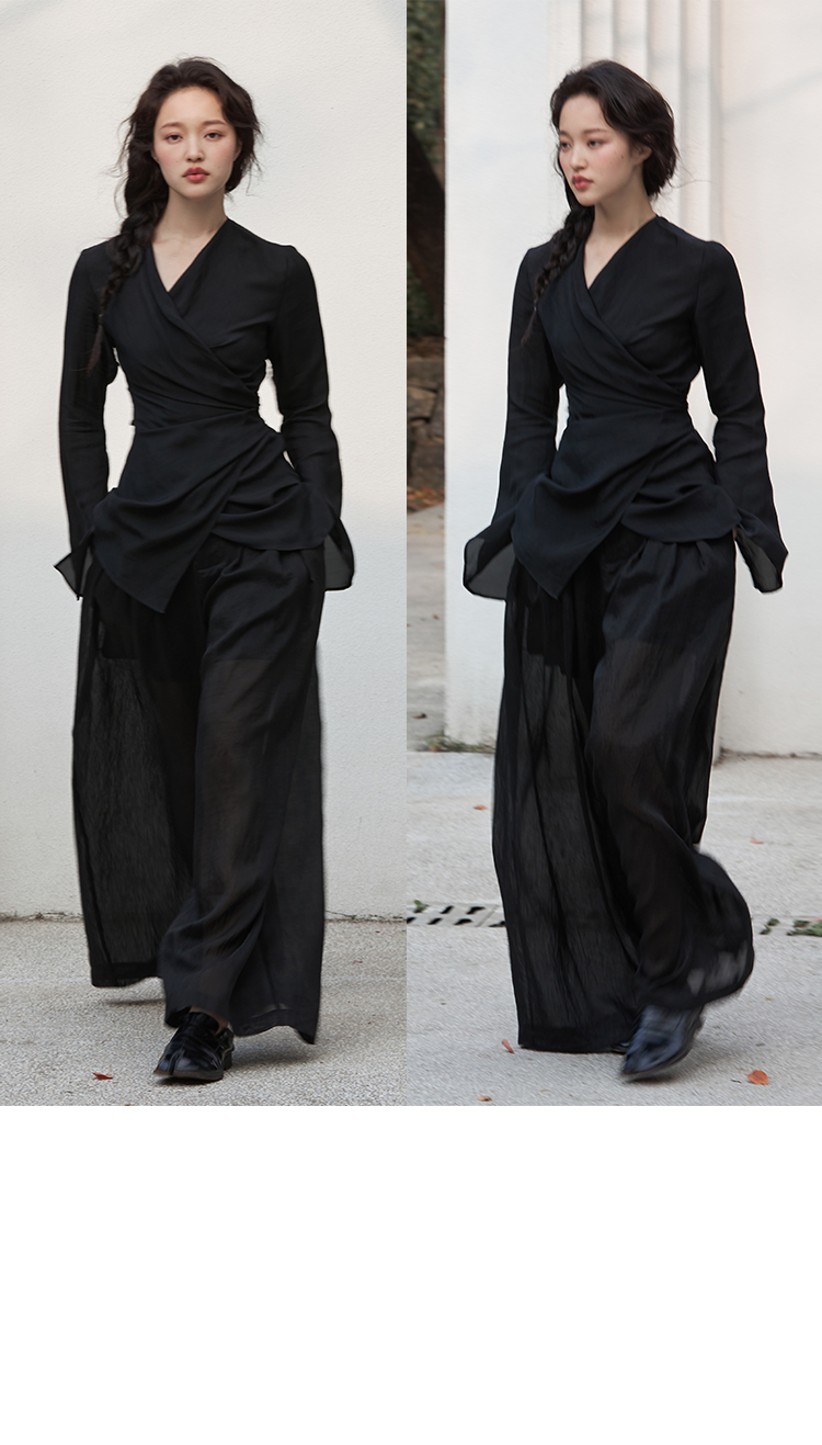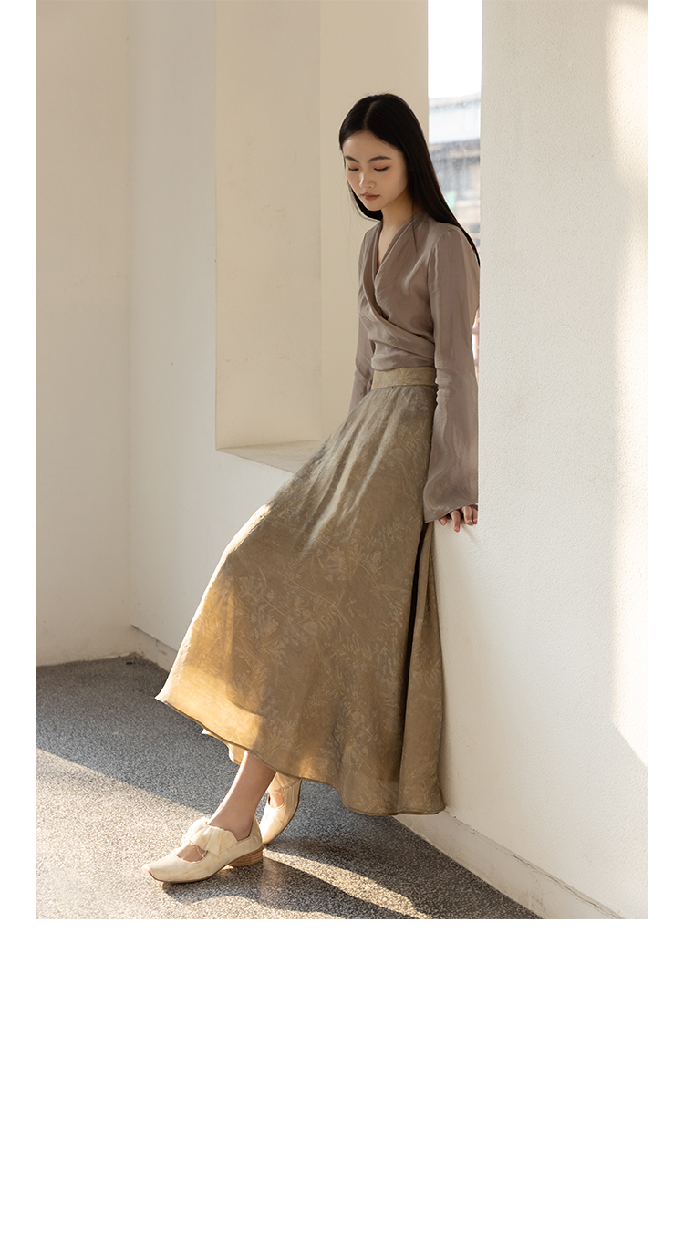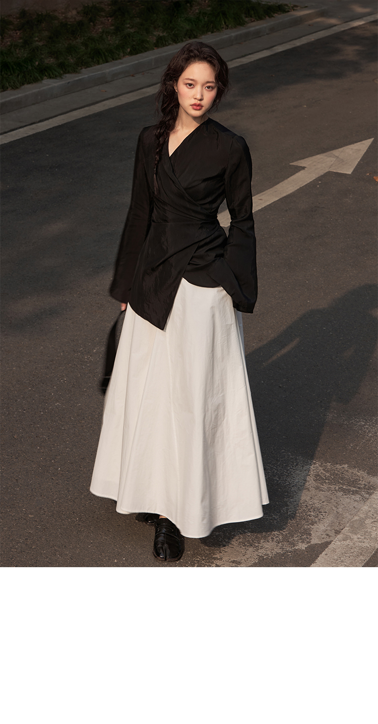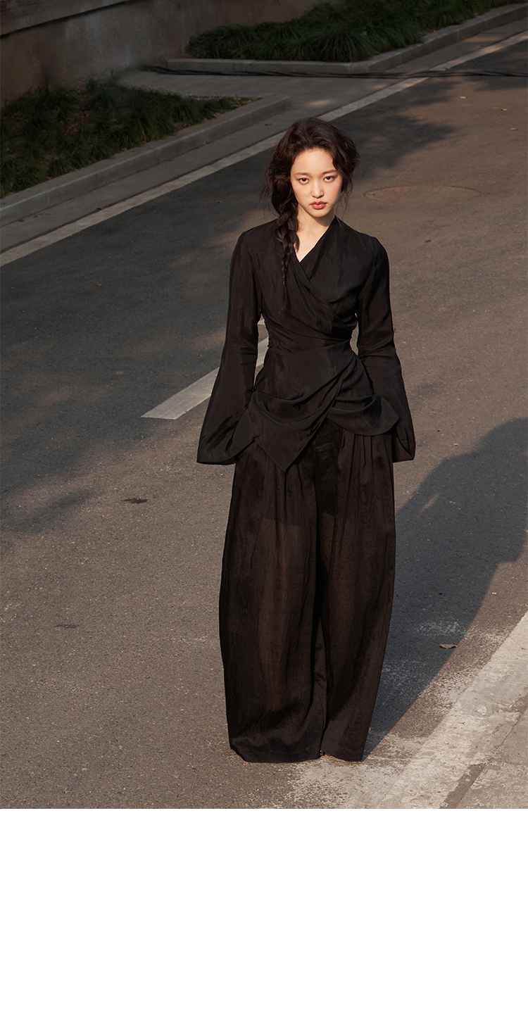 Asaya2159 : Silk fabric wrap-style slim v-neck trumpet sleeve shirt spring and summer elegant temperament long-sleeved top women