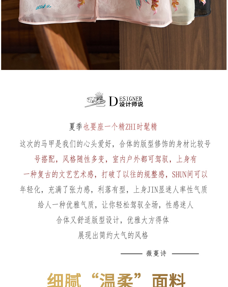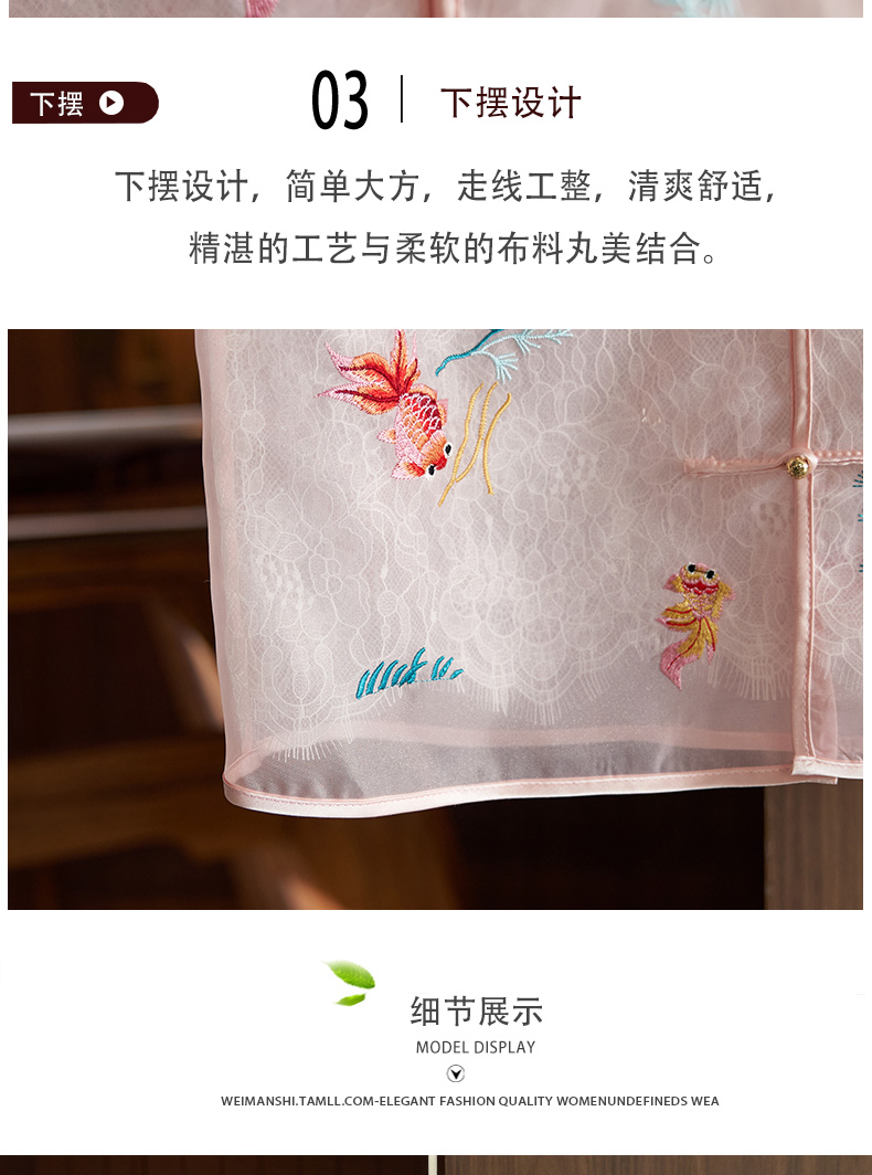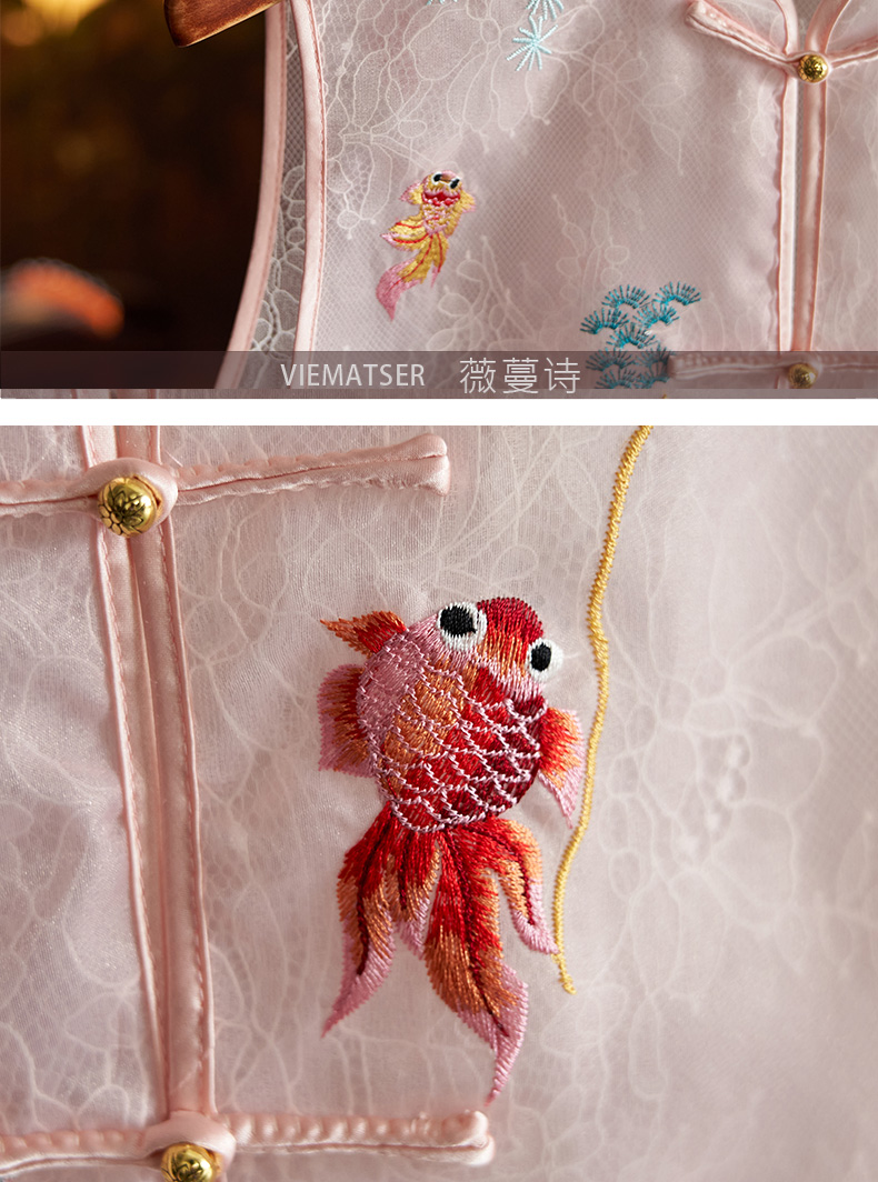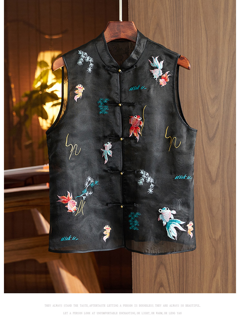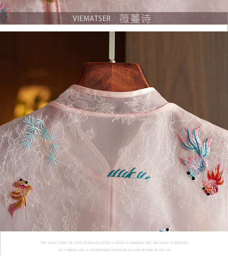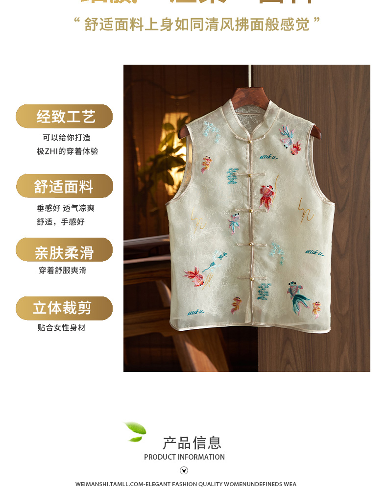 Asaya2090 : Goldfish embroidery light and transparent stand-up collar buckle lace stitching vest spring and summer new top