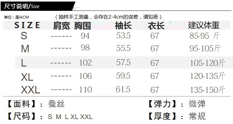 | Material composition | Mulberry silk 100% |