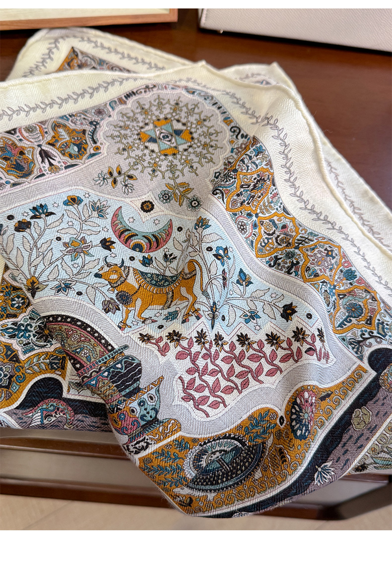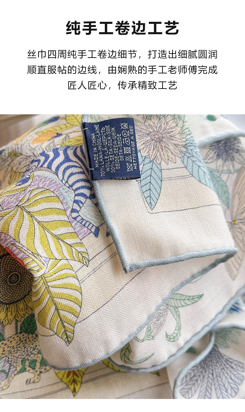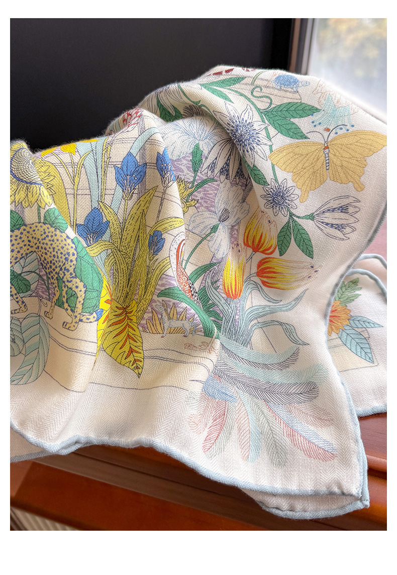 ASAYA4897 – Jardin Enchanté Silk Wool Scarf 🌸🕊️