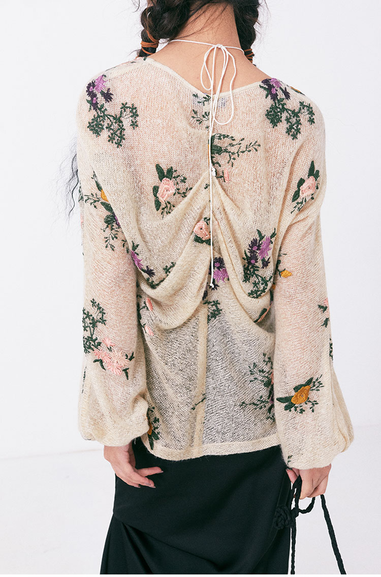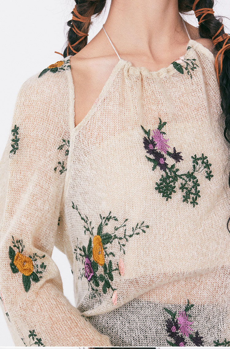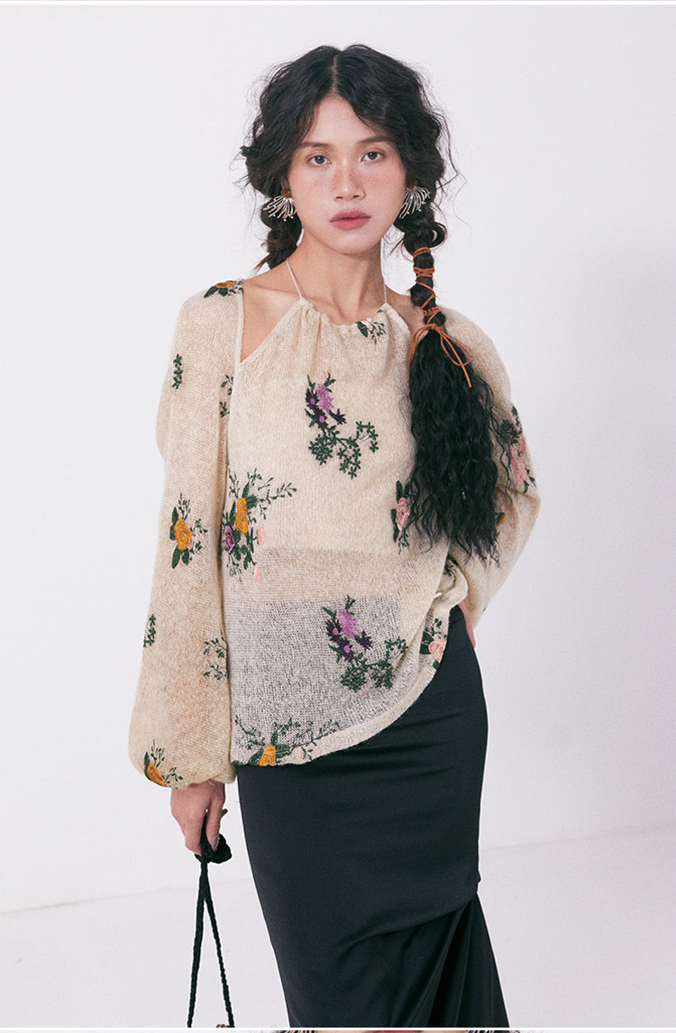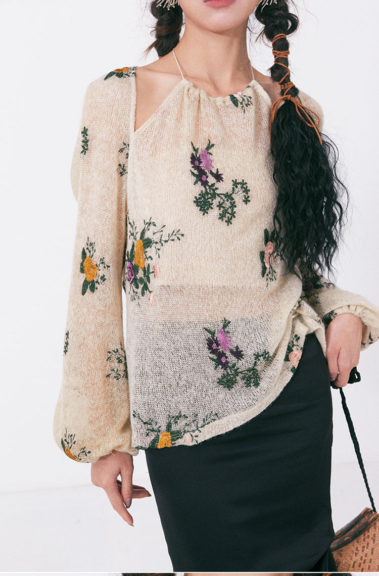 ASAYA1967 SISH seems to be a Chinese idyllic halterneck embroidered top with long sleeves, T-shirt and mohair-blend with a bandeau