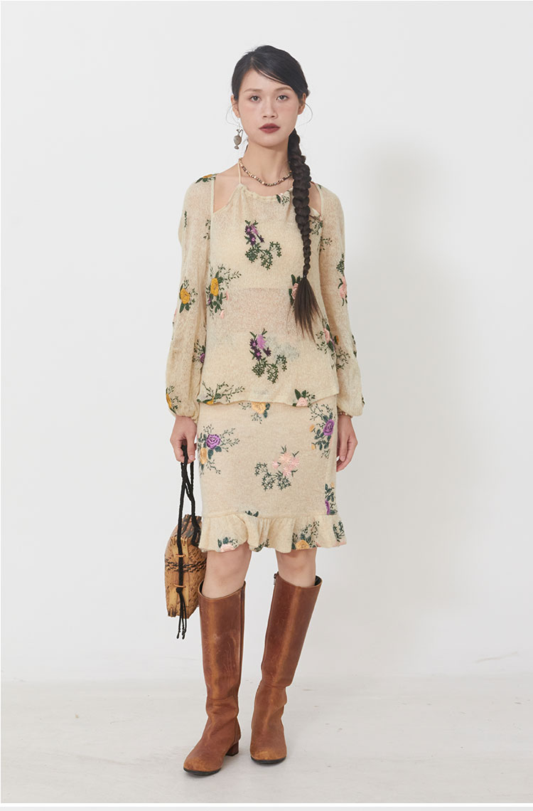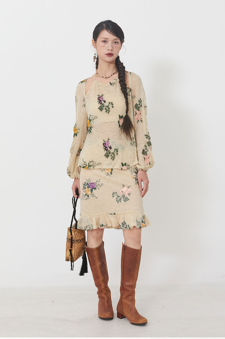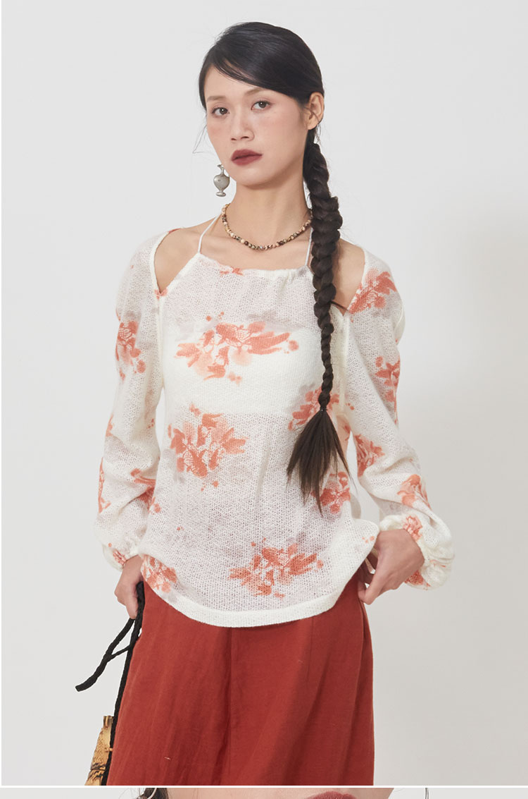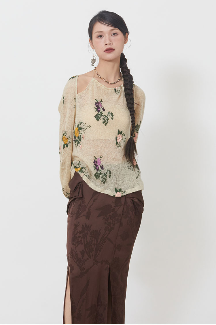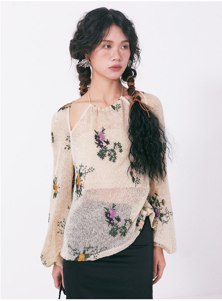 ASAYA1967 SISH seems to be a Chinese idyllic halterneck embroidered top with long sleeves, T-shirt and mohair-blend with a bandeau