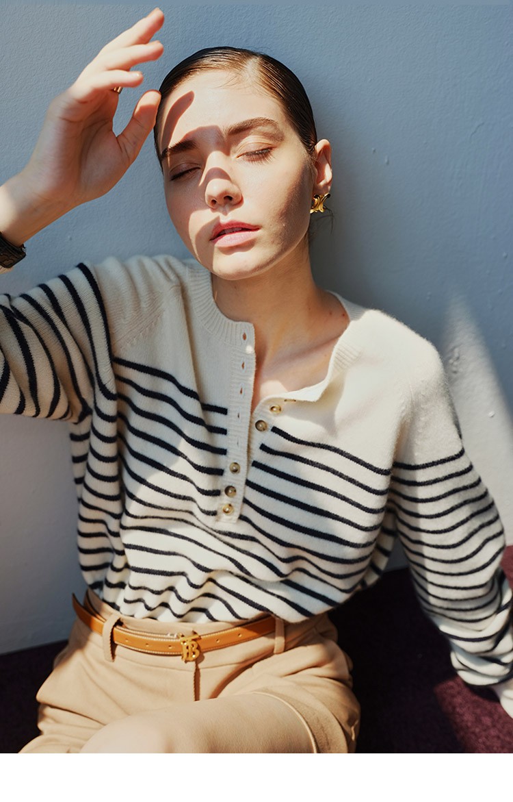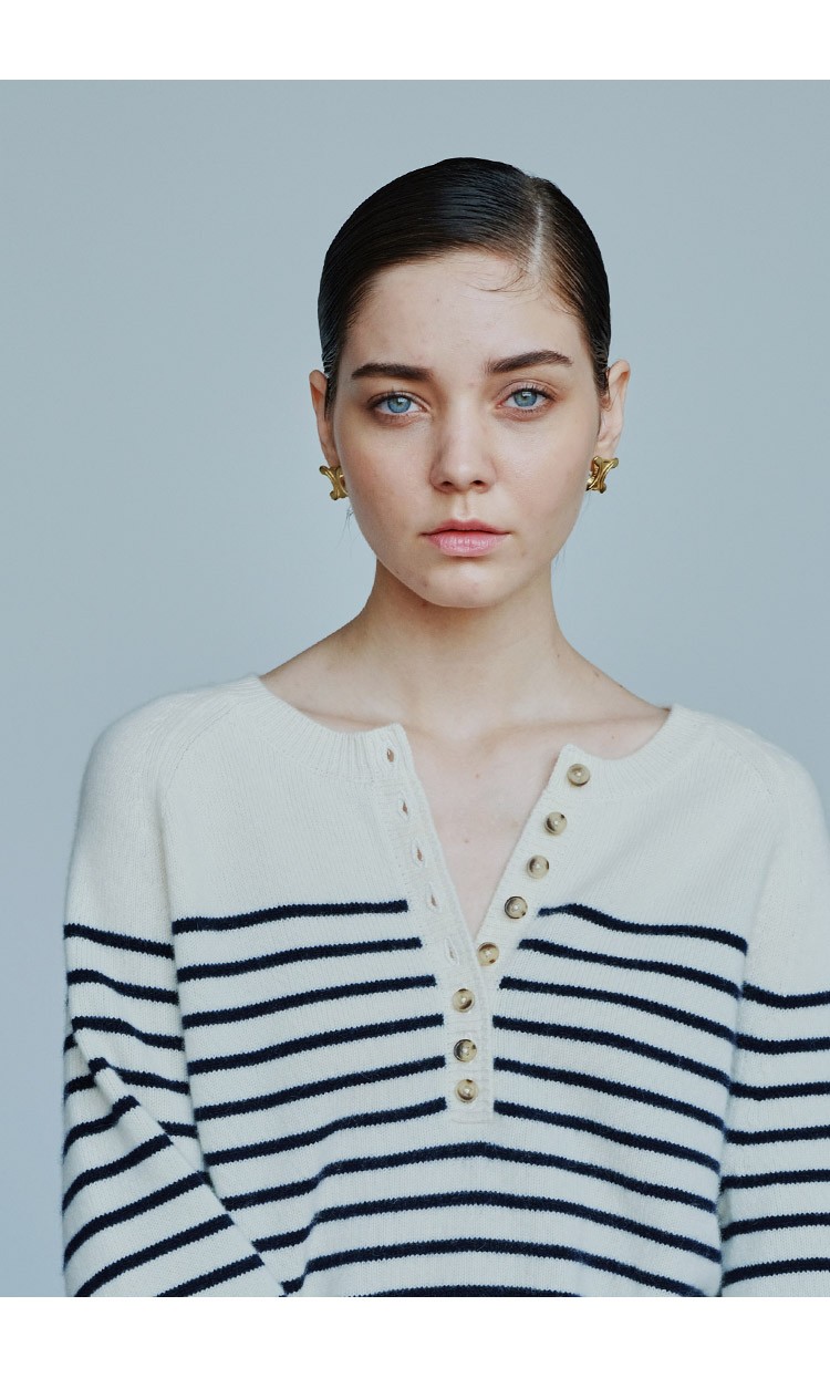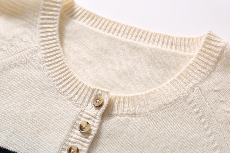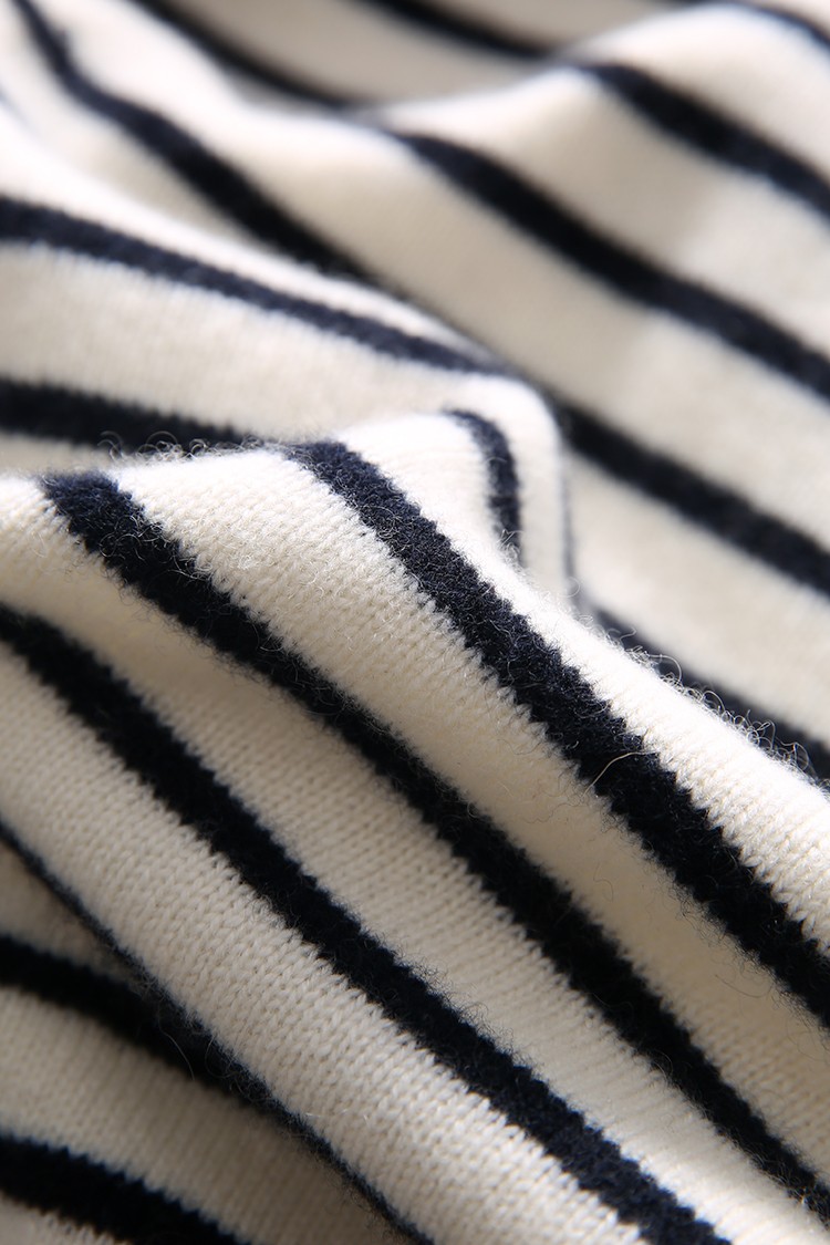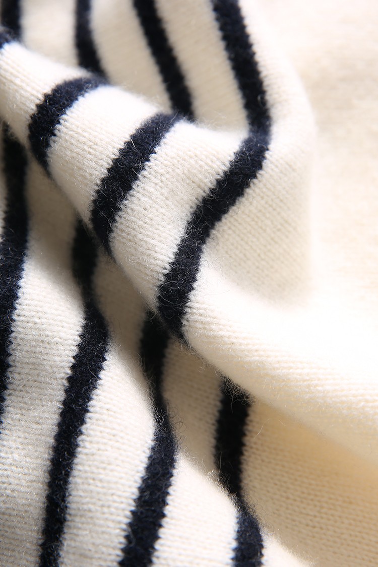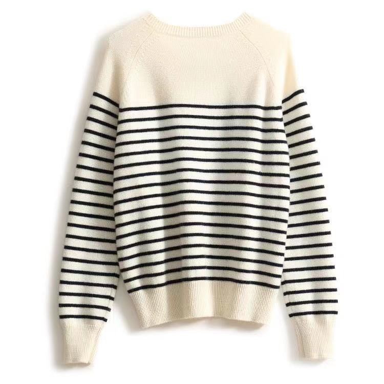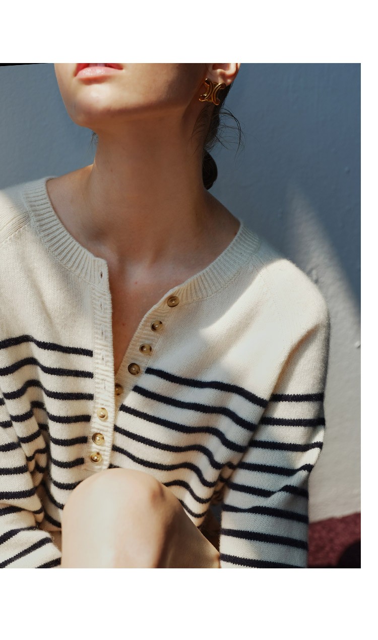 ASAYA2587 Loose French retro classic striped 100% wool sweater round neck button-down sweater