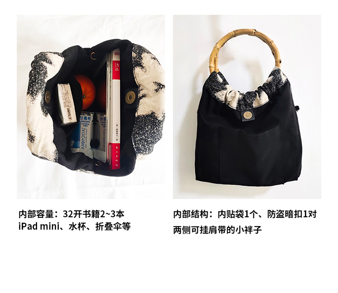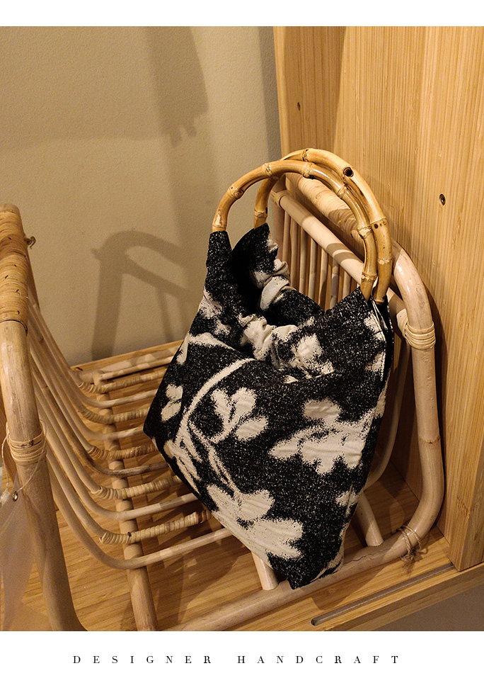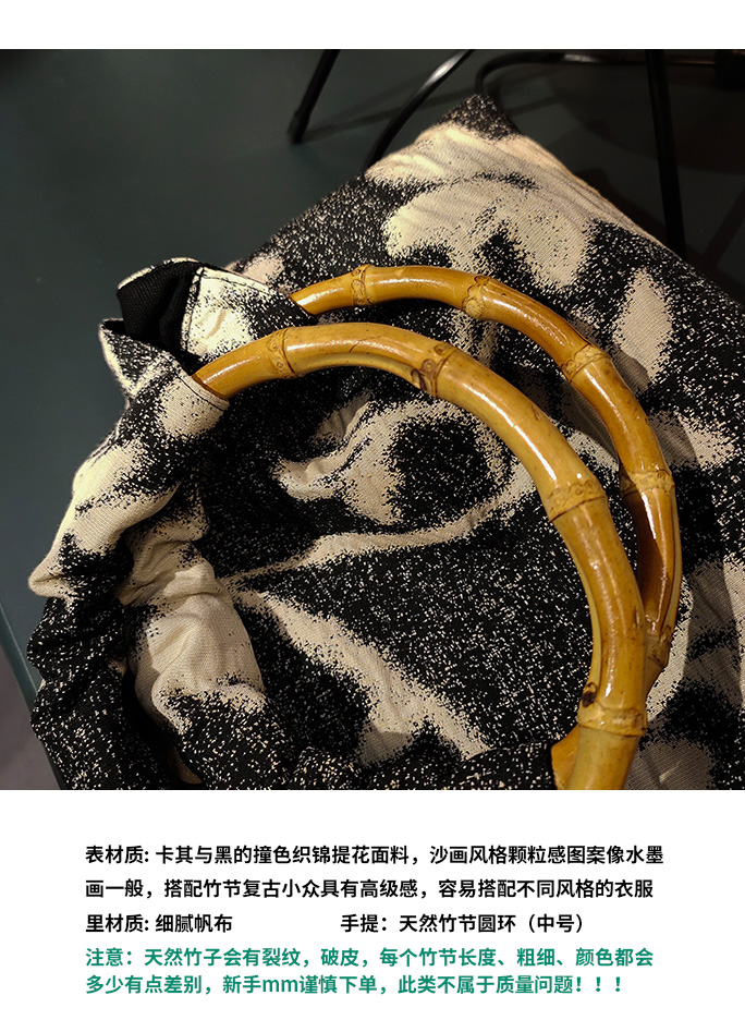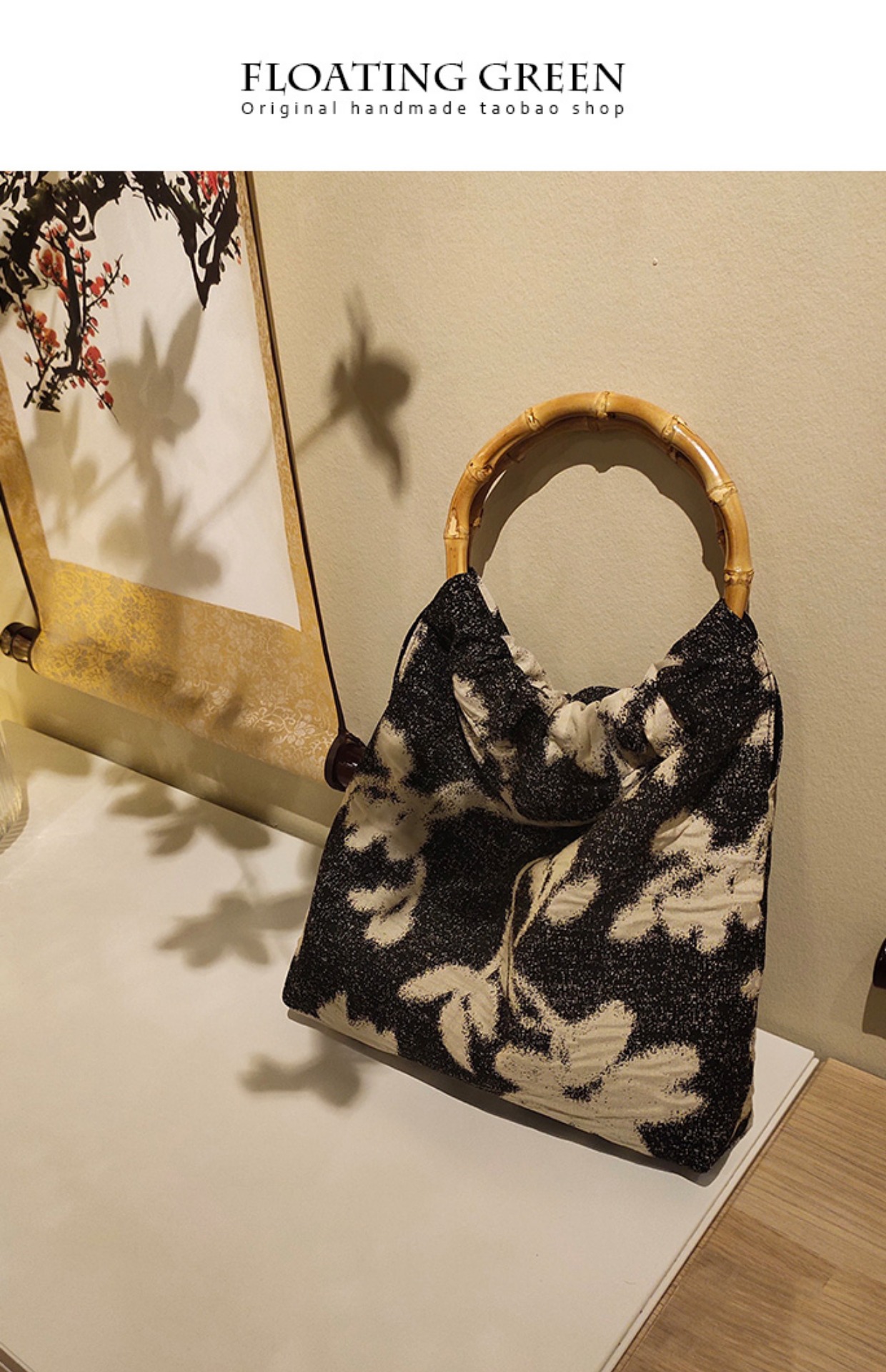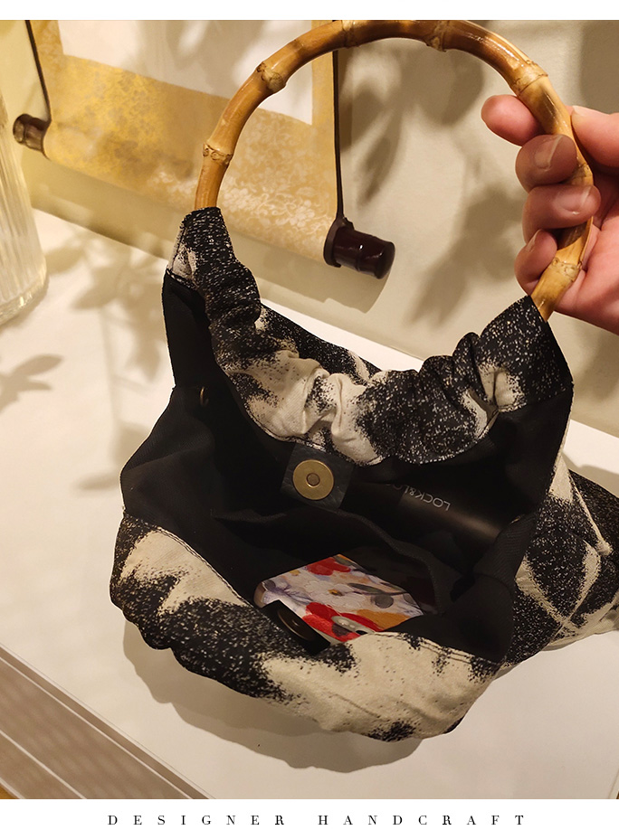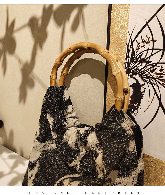 Asaya746 - Solitary items are not replenished Retro Art Ink Painting New Chinese Style Texture Contrast Jacquard Handheld Bamboo Bag