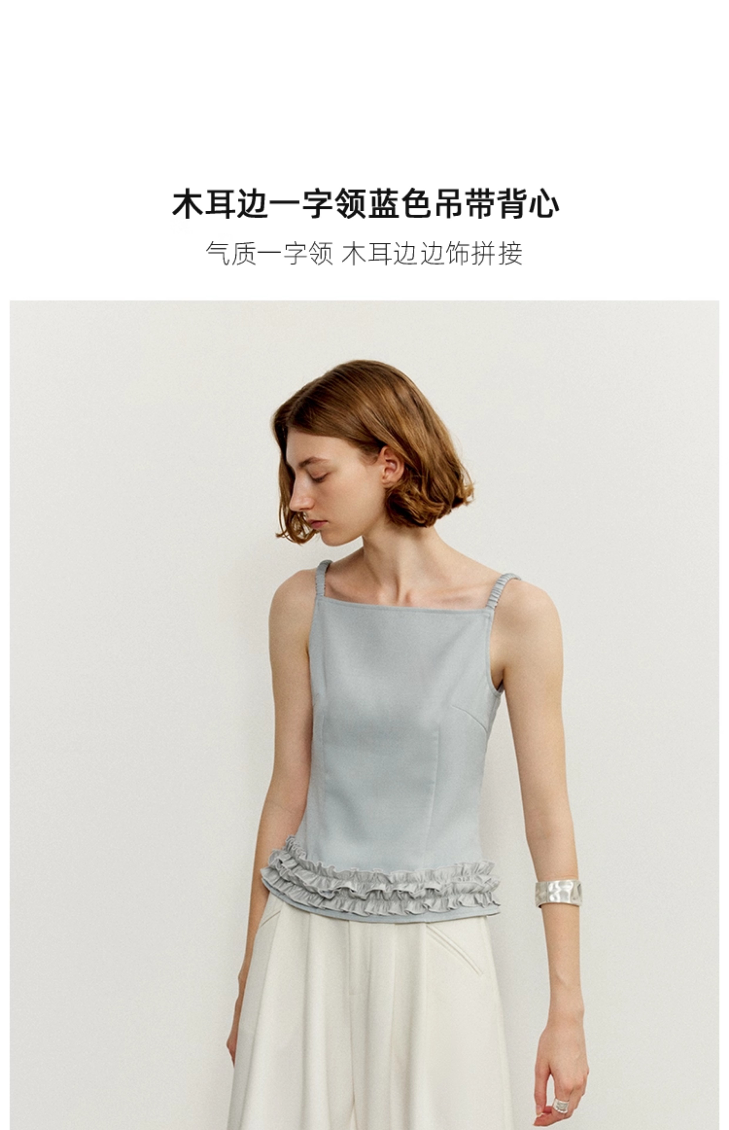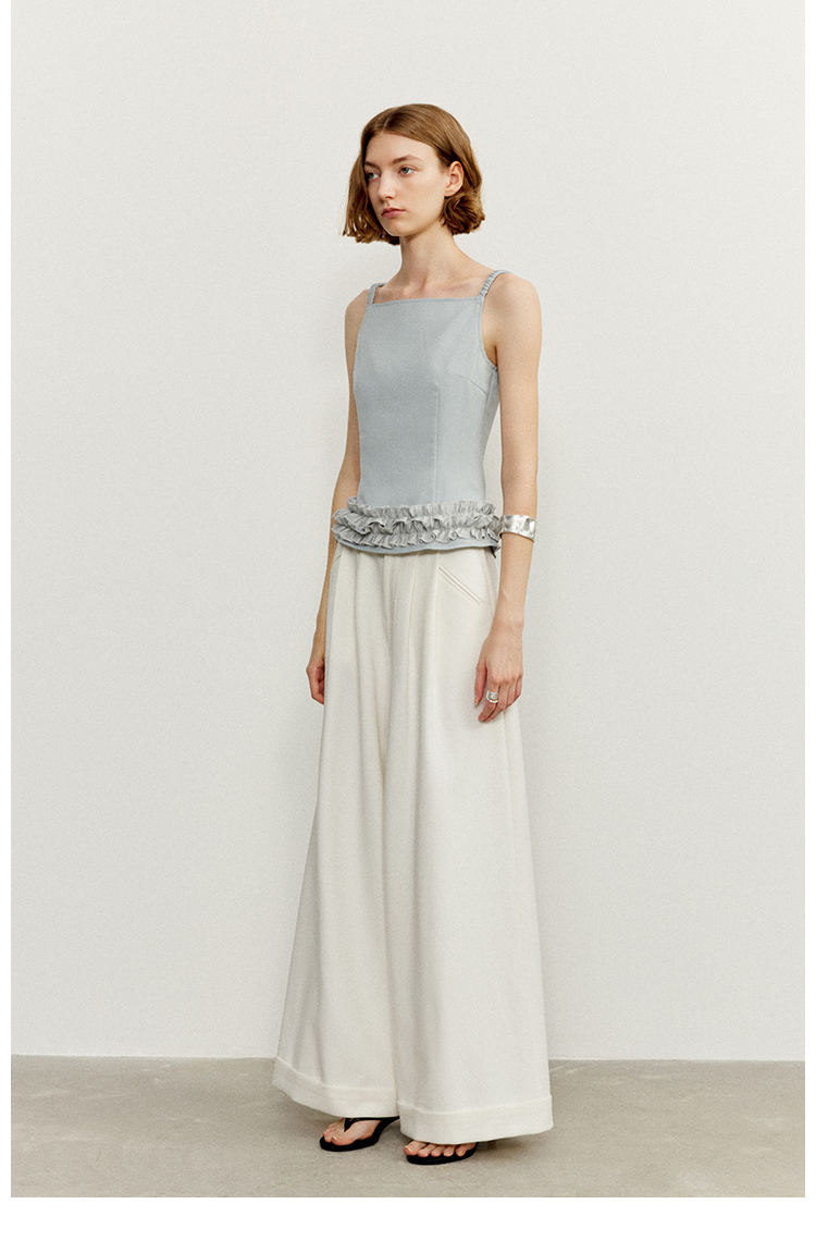 ASAYA4454 - Ruffle Hem Strappy Top in Mist Blue 🌫️🎀
