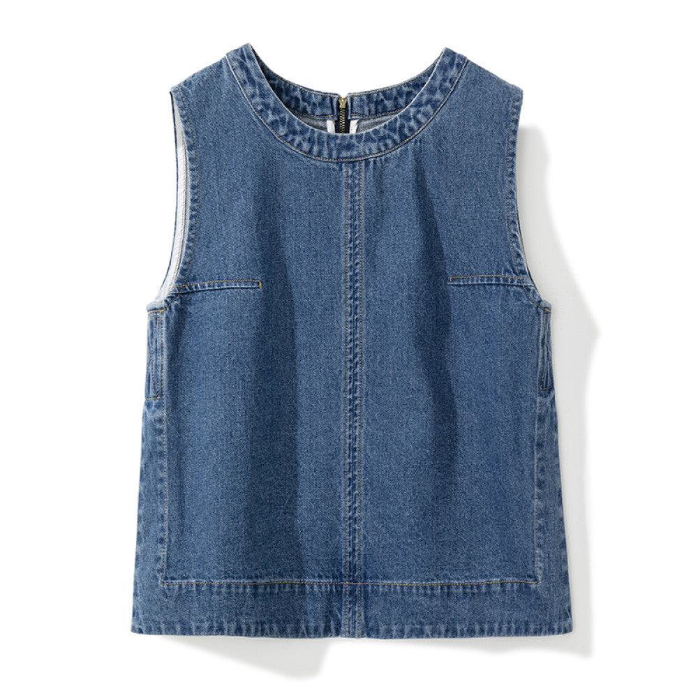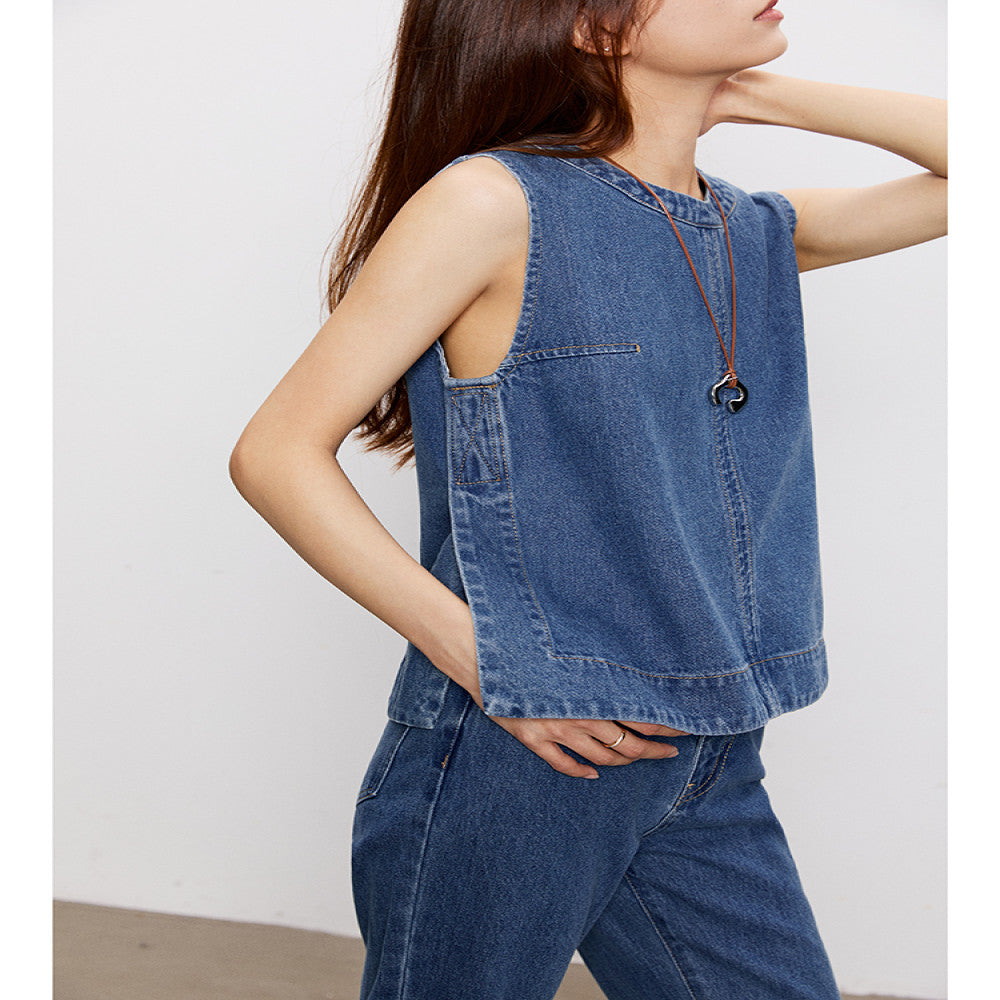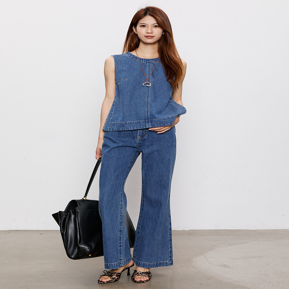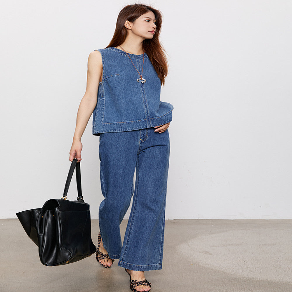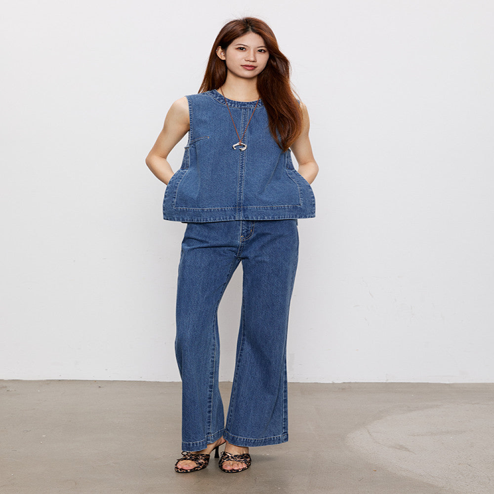 ASAYA3604 Cotton Denim Vest + Loose Flair Pants (Matching Set / Sold Seperately)