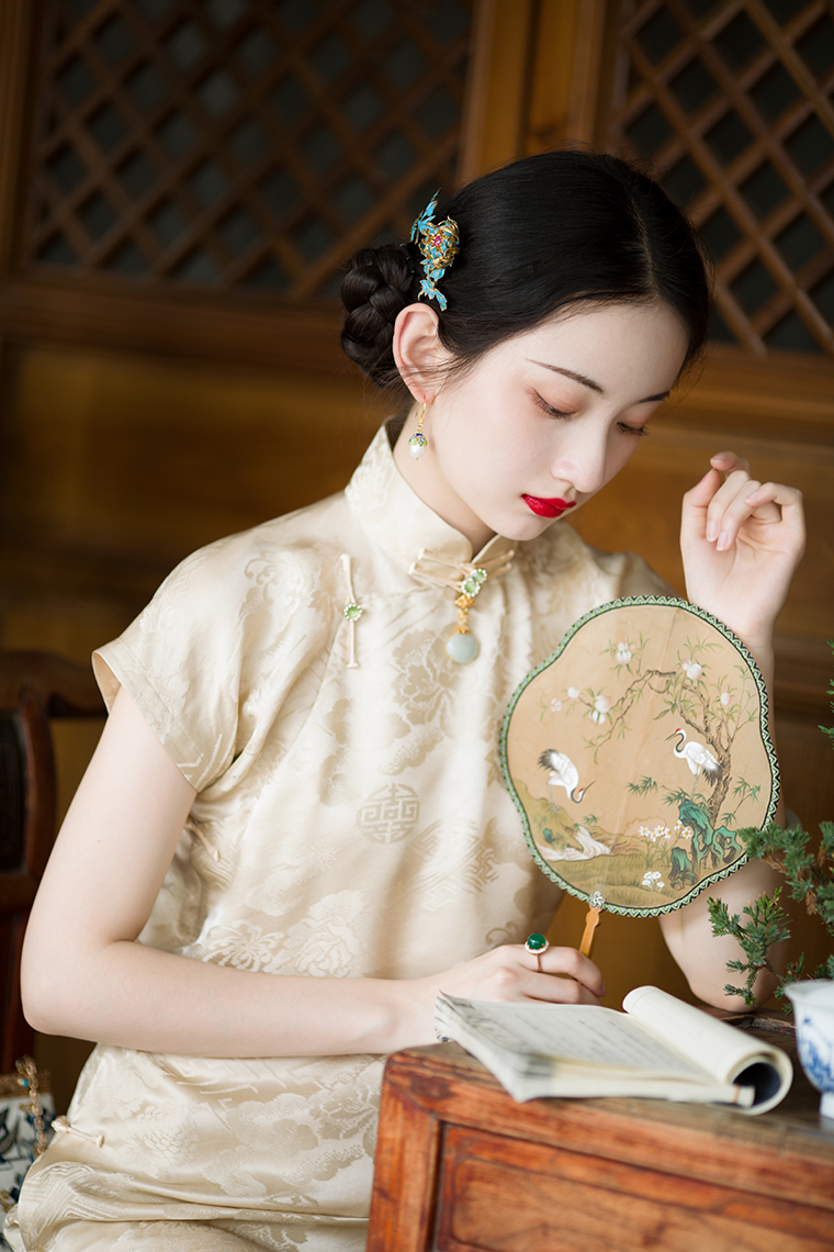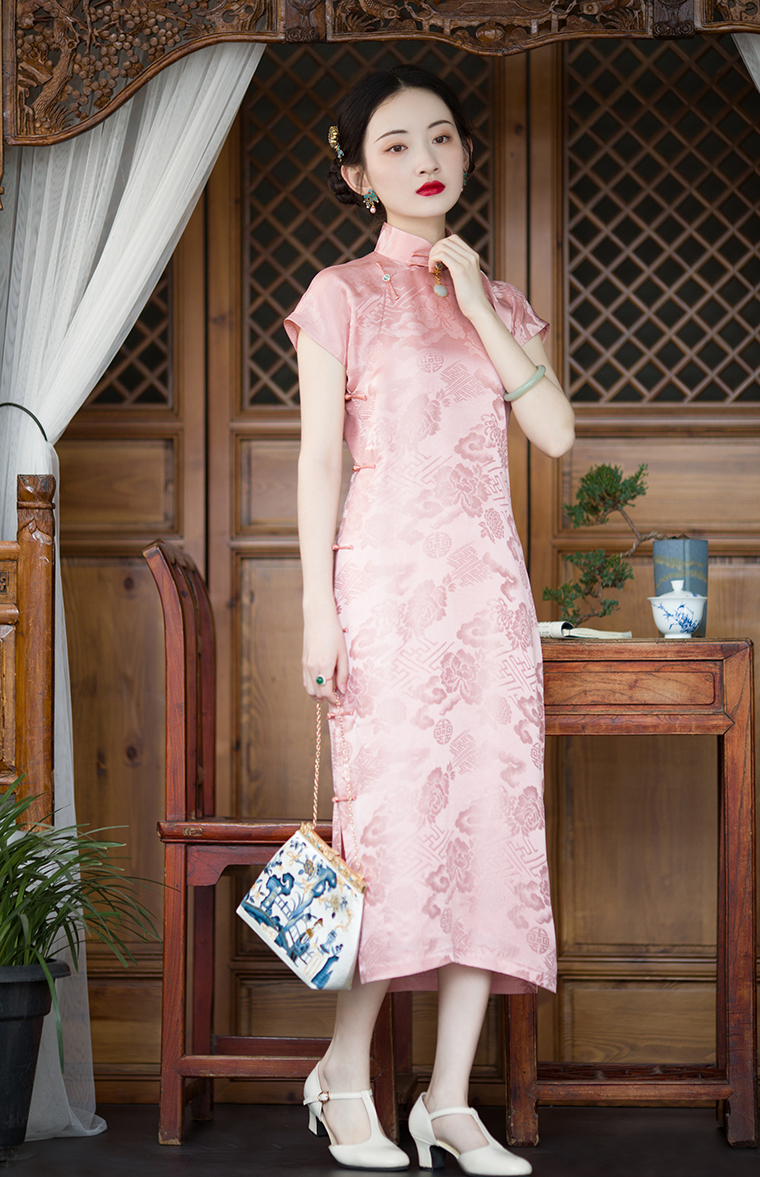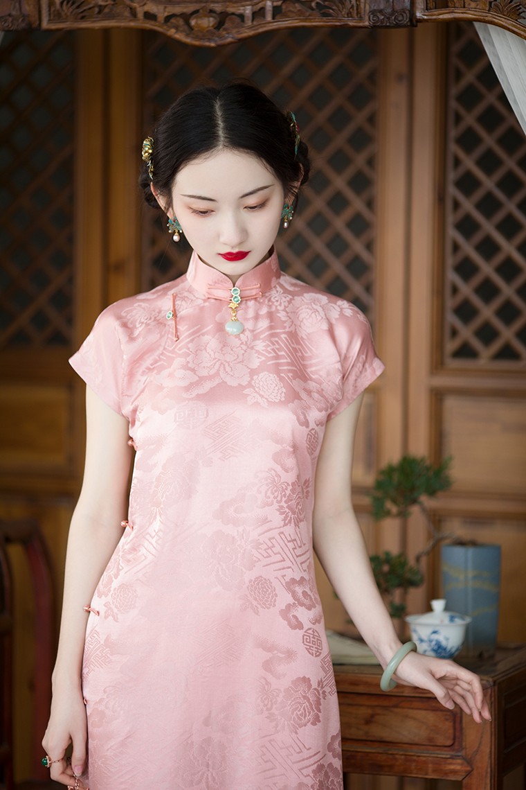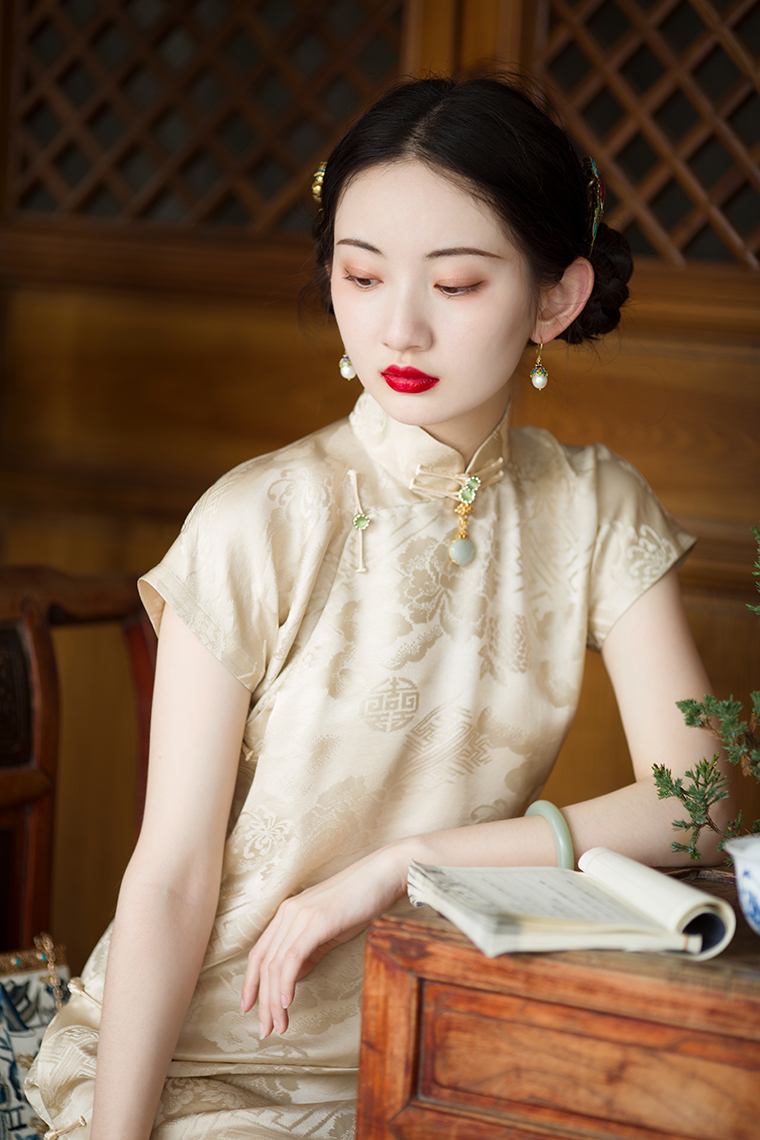 Asaya325 - Spring Charm One City Style Republic of China Style Silk Jacquard Stand up Collar Full Open Cheongsam Young Style Daily Original