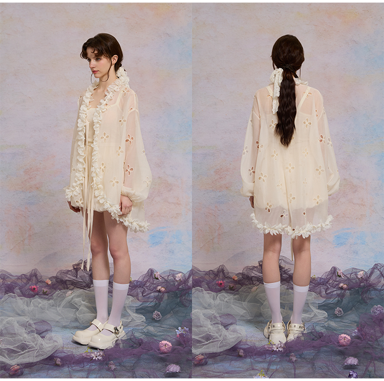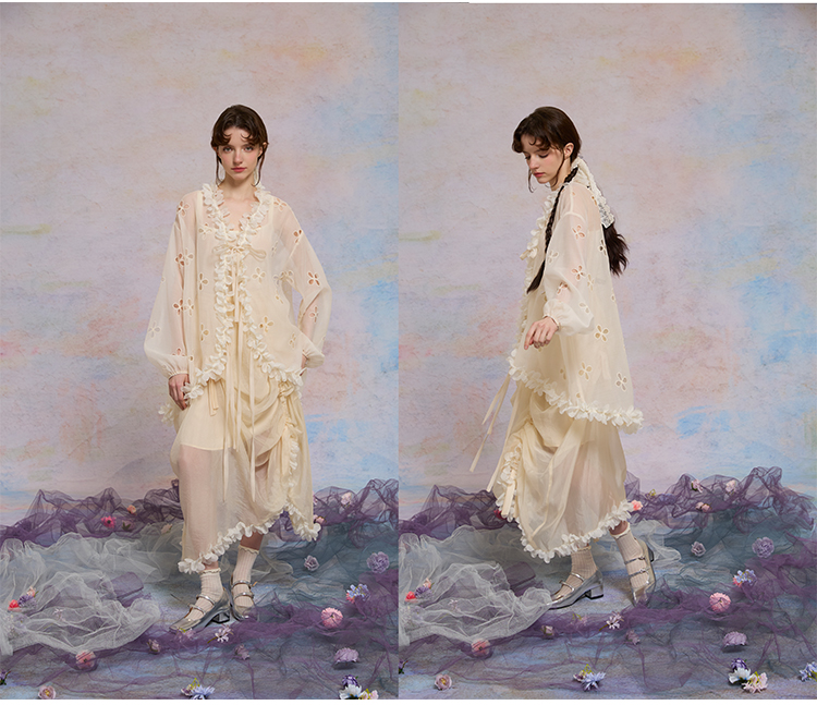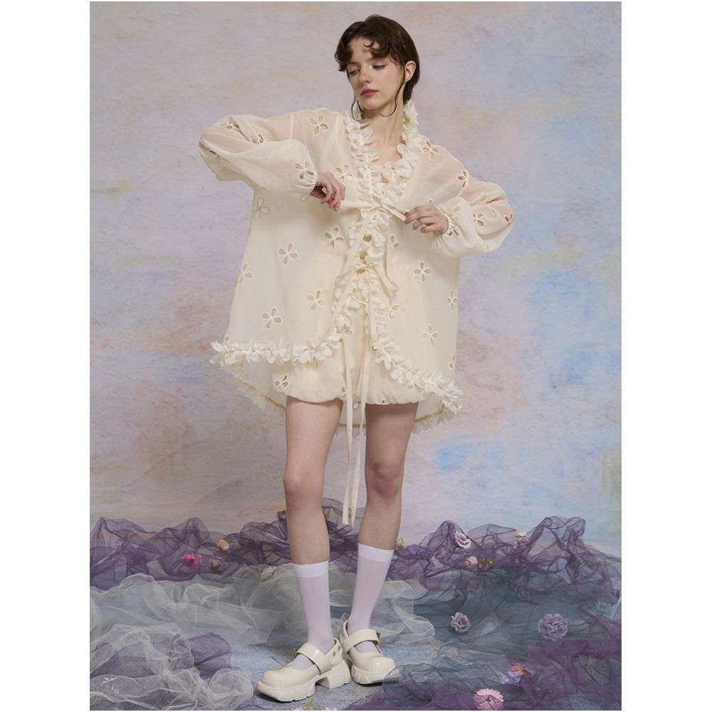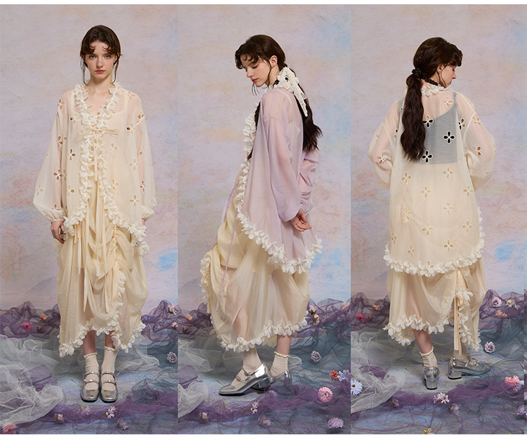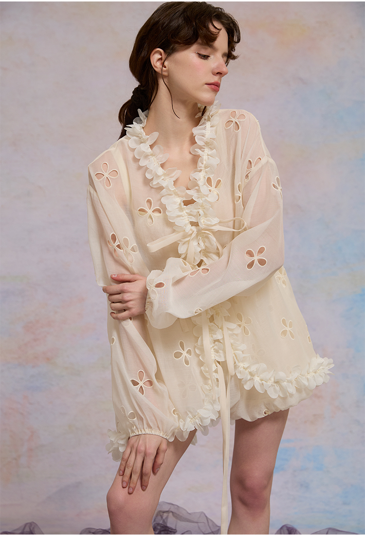 color classification | Apricot hollow flower top, smoke purple hollow flower bud pants, hollow flower bud pants pre-sale |