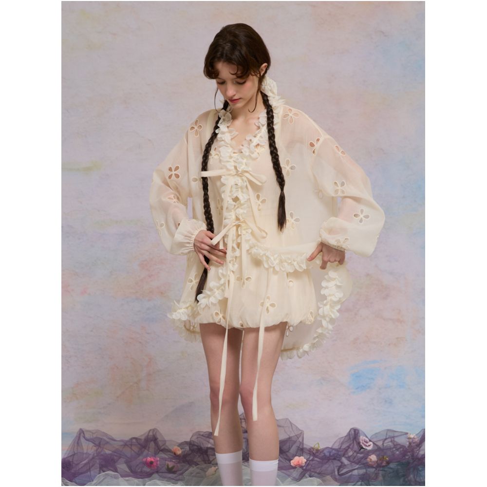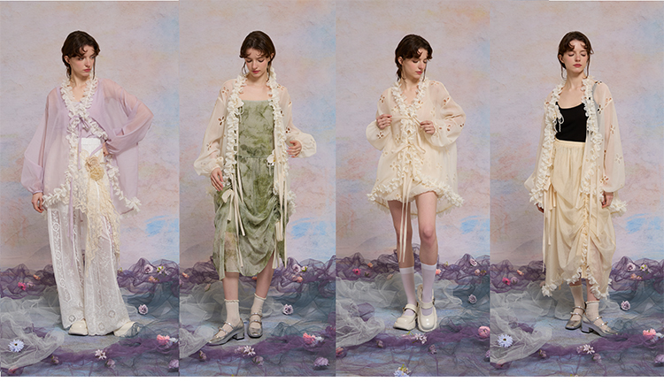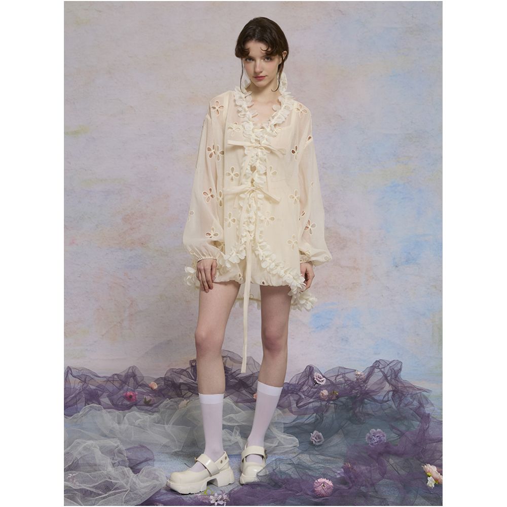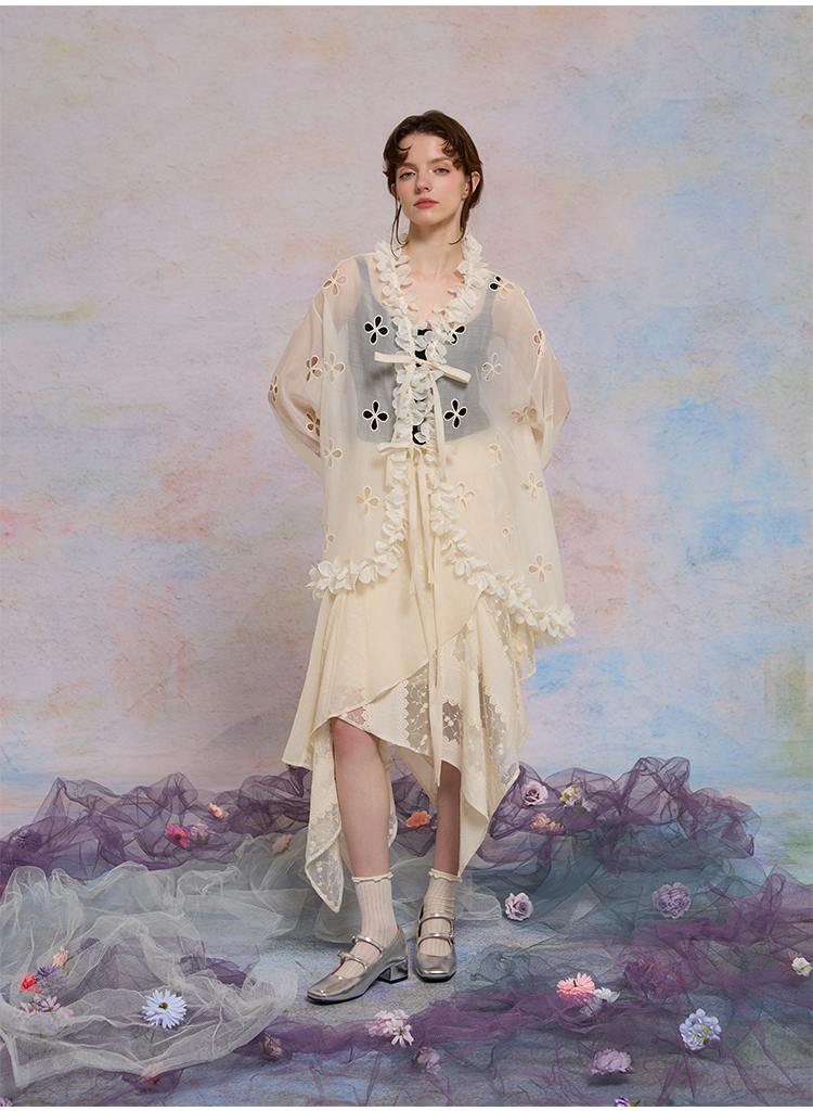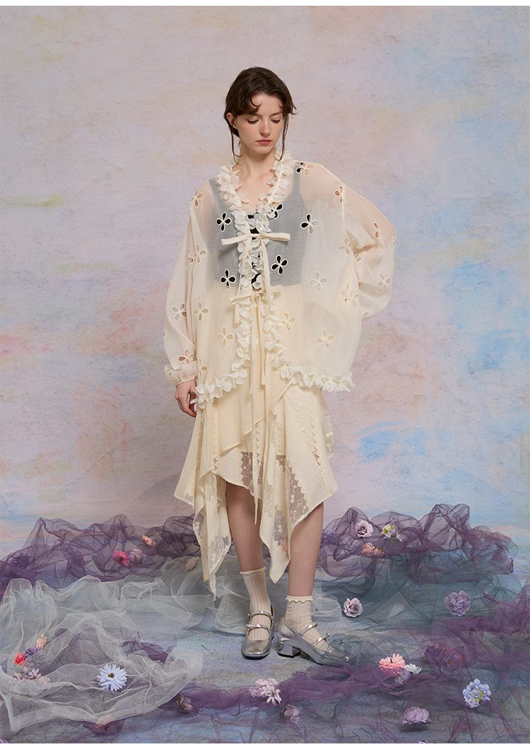 color classification | Apricot hollow flower top, smoke purple hollow flower bud pants, hollow flower bud pants pre-sale |