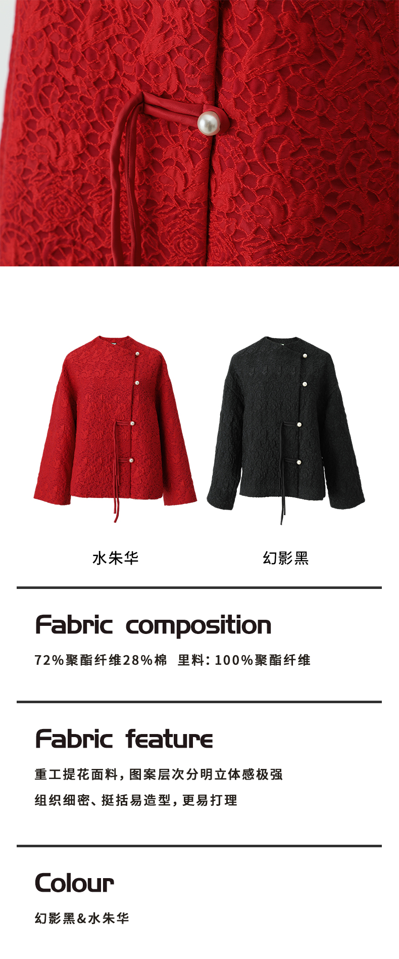 ASAYA2568 New Chinese style jacquard design slanted lapel loose buckle retro coat
