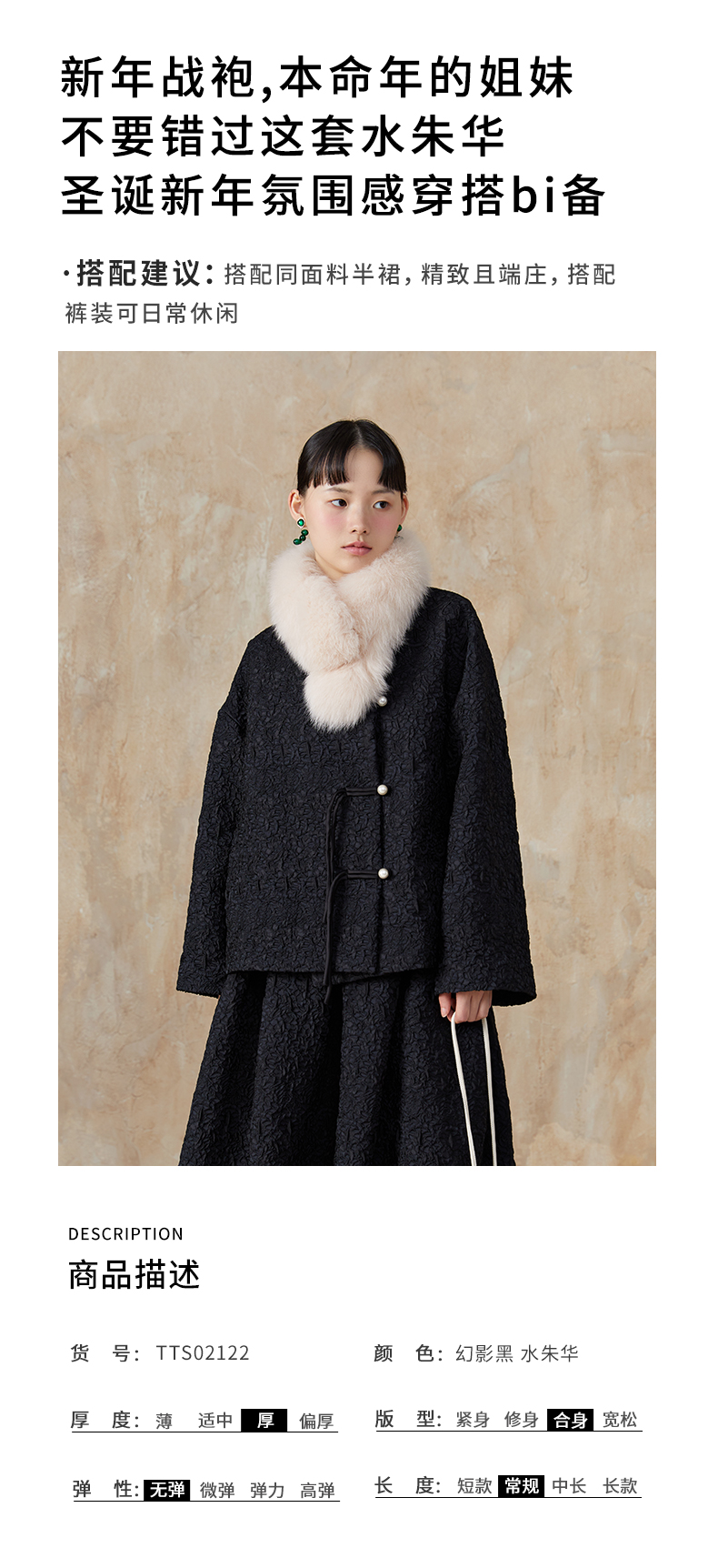 Color classification | Phantom black coat, algal bloom red coat, phantom black half skirt, algal bloom red half skirt, fur fur collar 36972-K01 fur collar 36036-WL1 |