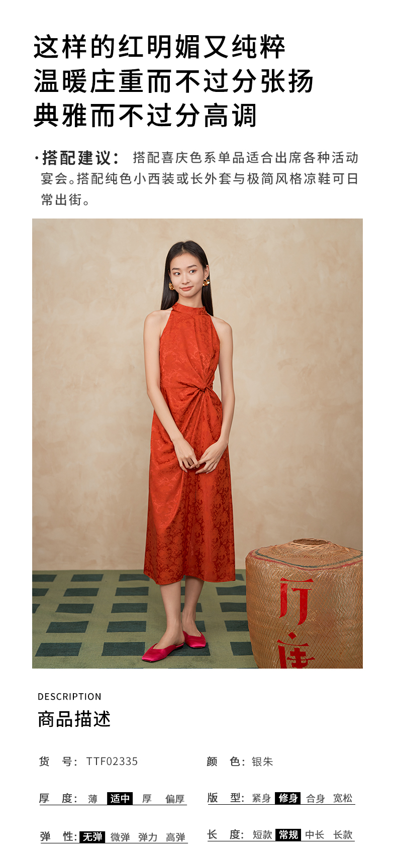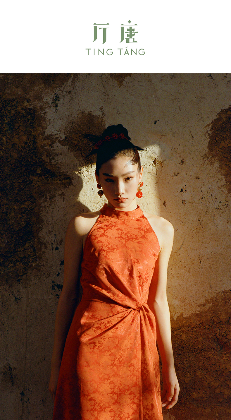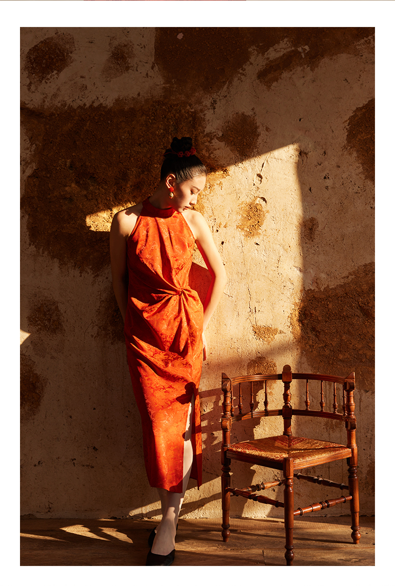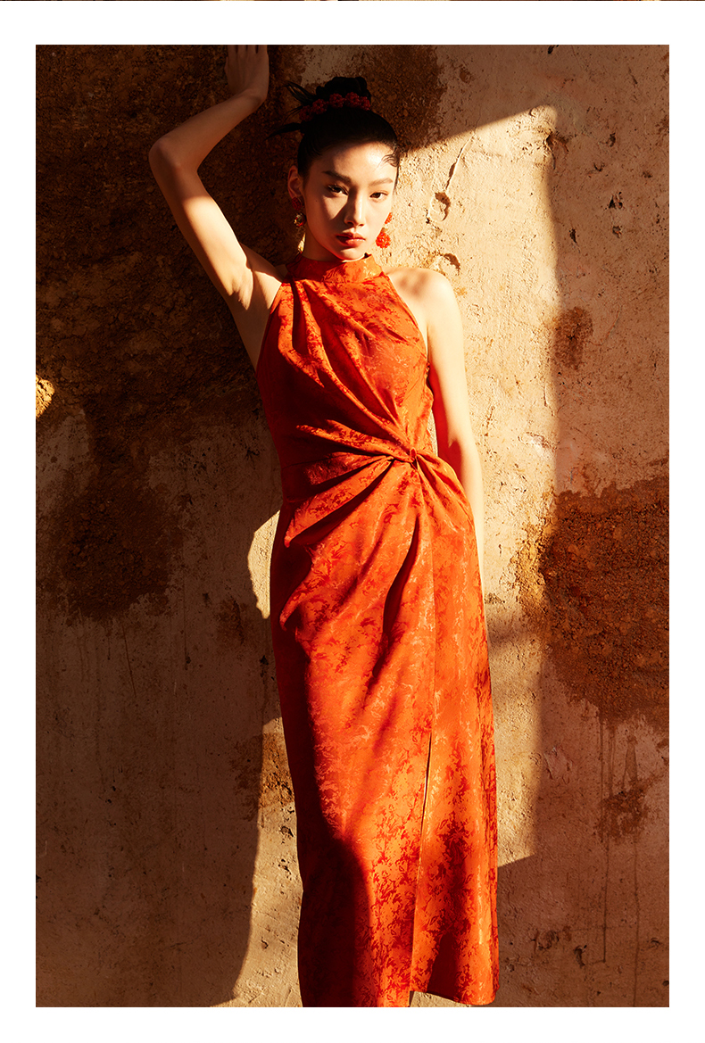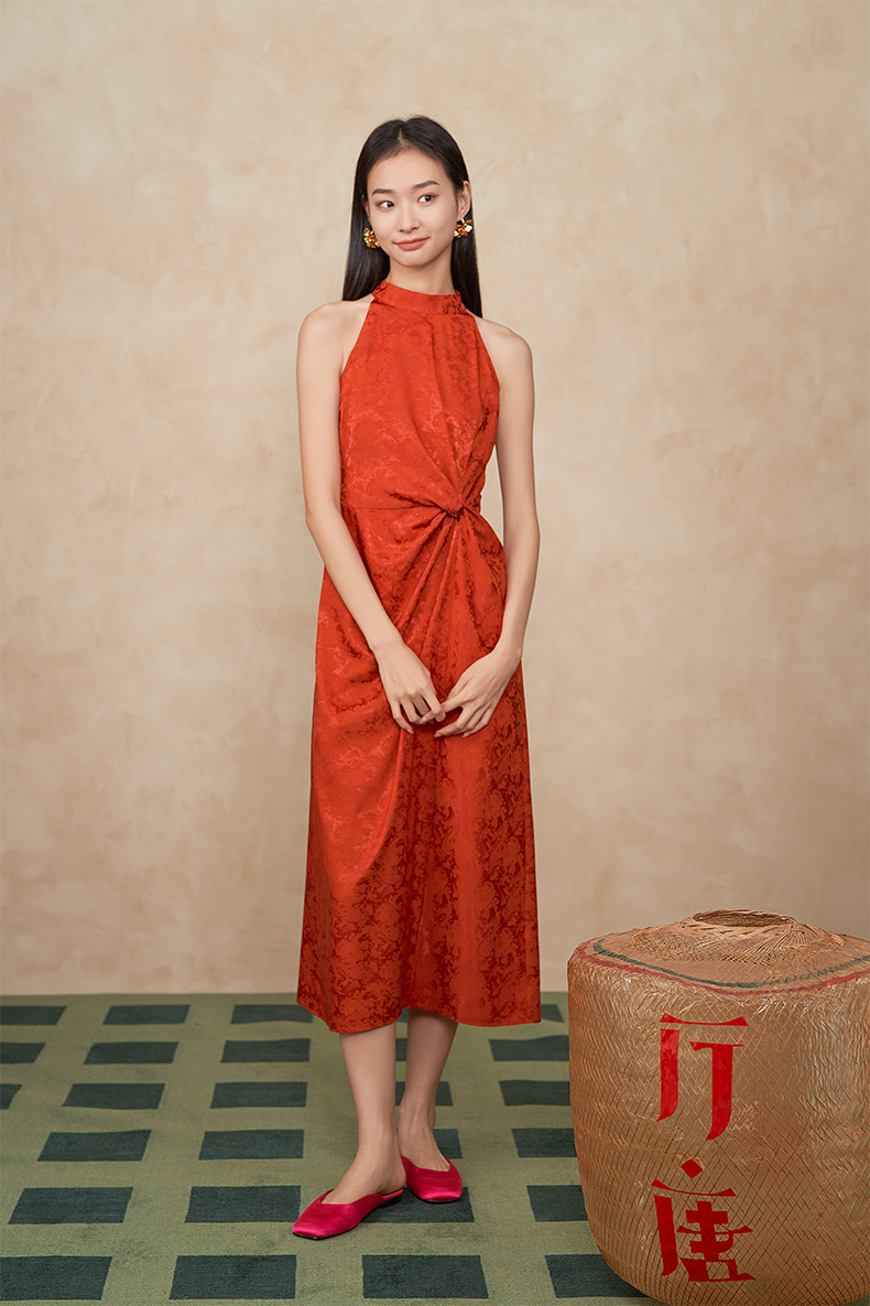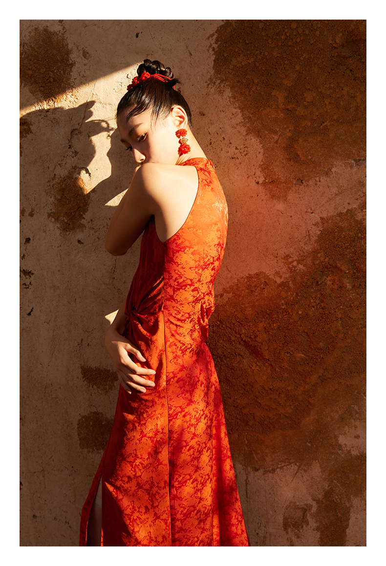ASAYA3410 Ting Tang "Button and Knot" New Chinese style red jacquard dress dress Halter neck strapless waist sleeveless long dress