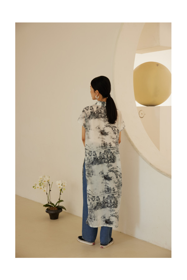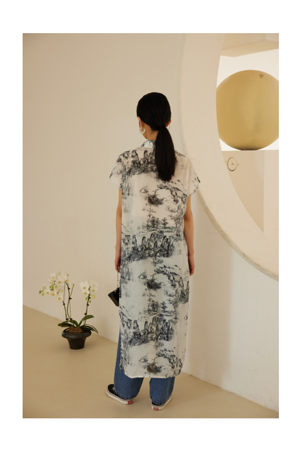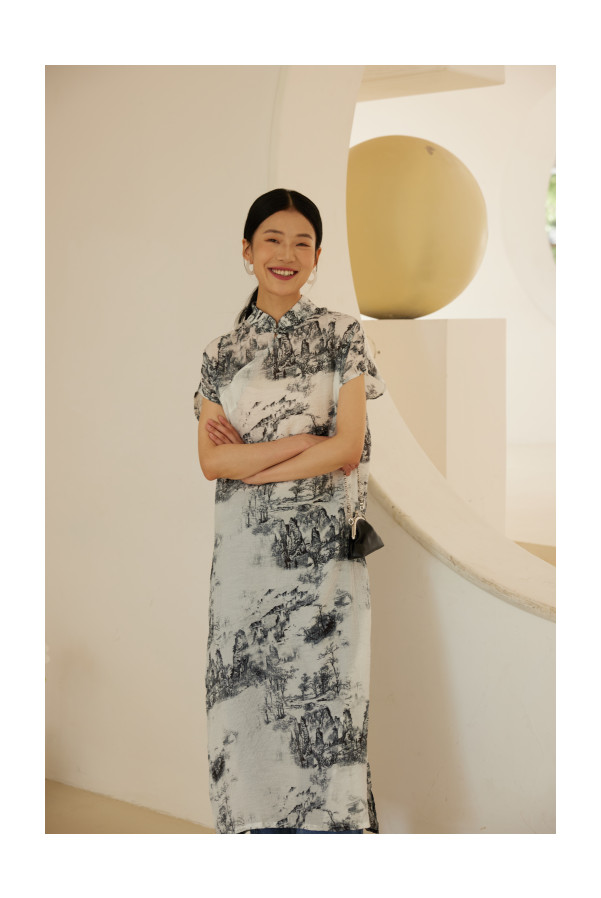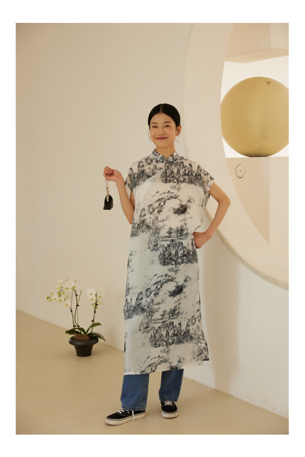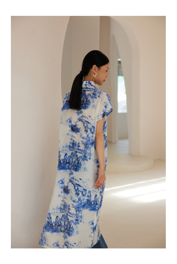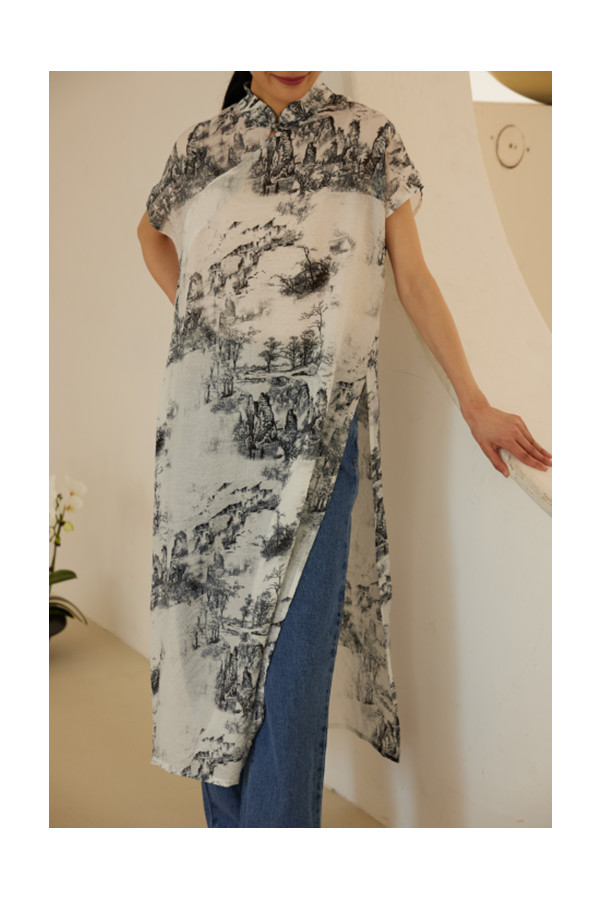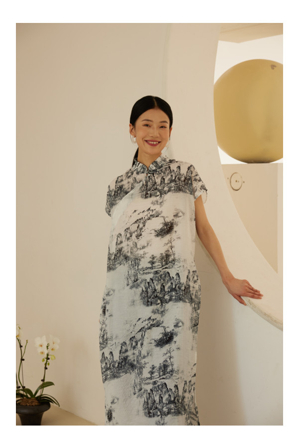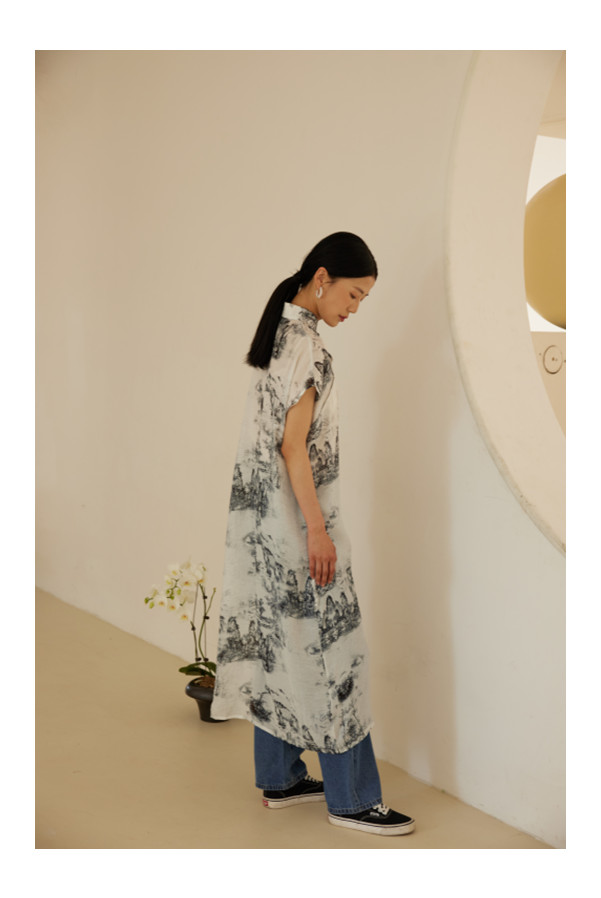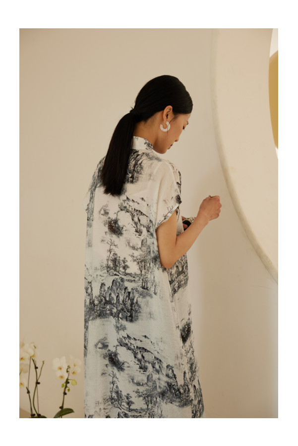 ASAYA3074 Summer retro national style young ink painting dress Zen tea dress