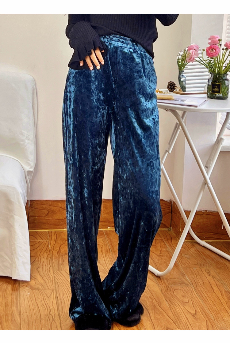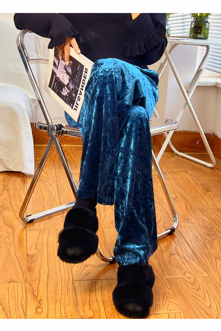 ASAYA4326 - Velvet Draped Wide-Leg Pants (มีสองสี 💙🤍)