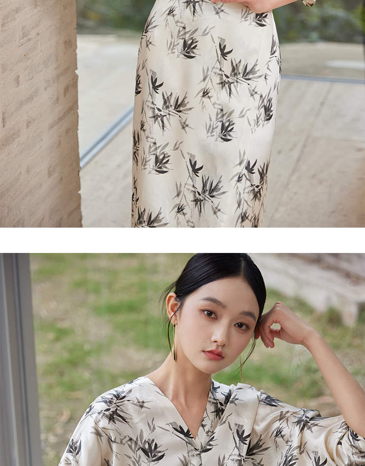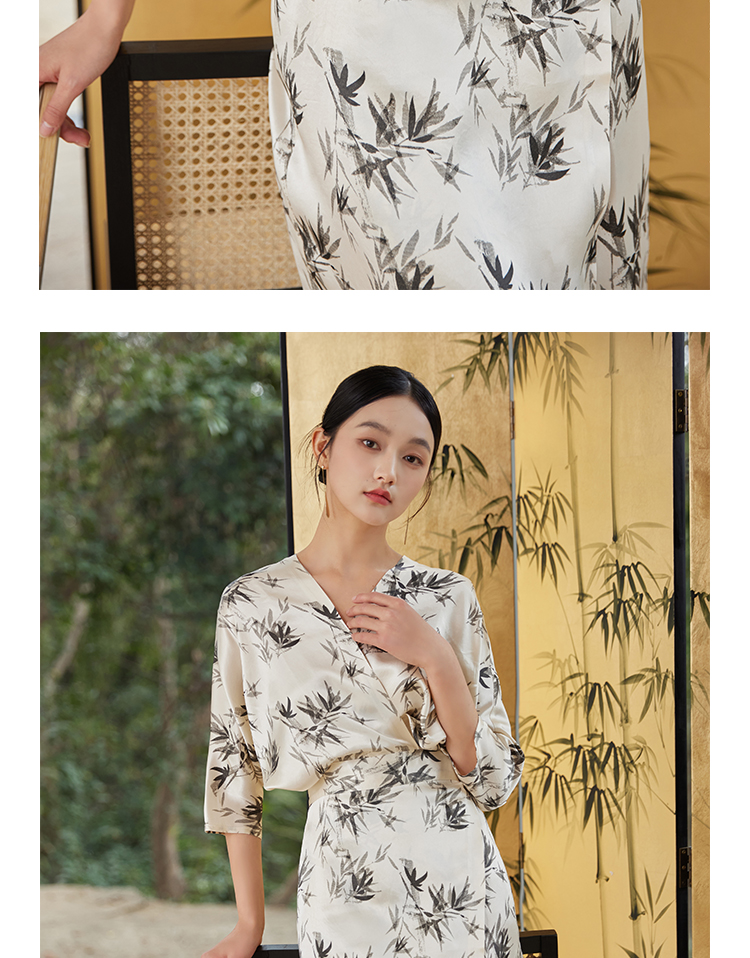 ASAYA3396 Qingzhu Dye Chinese style bamboo print long dress