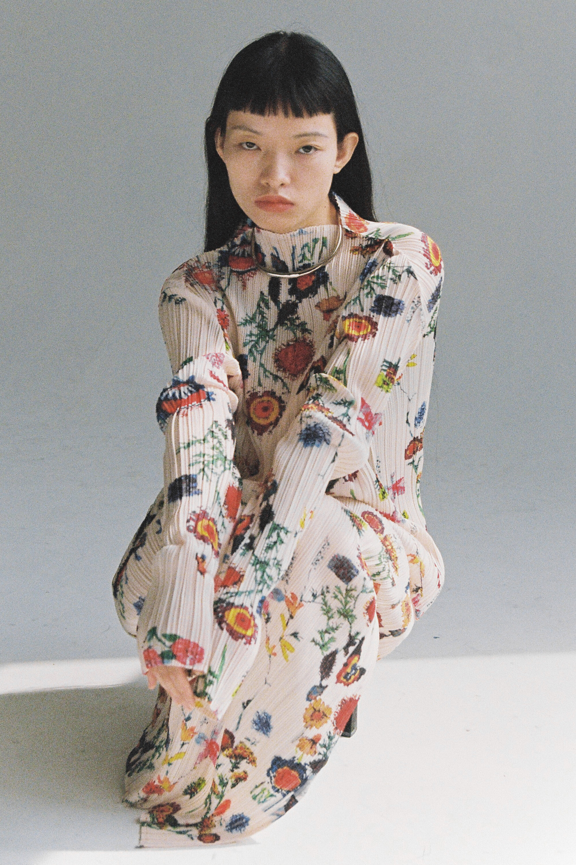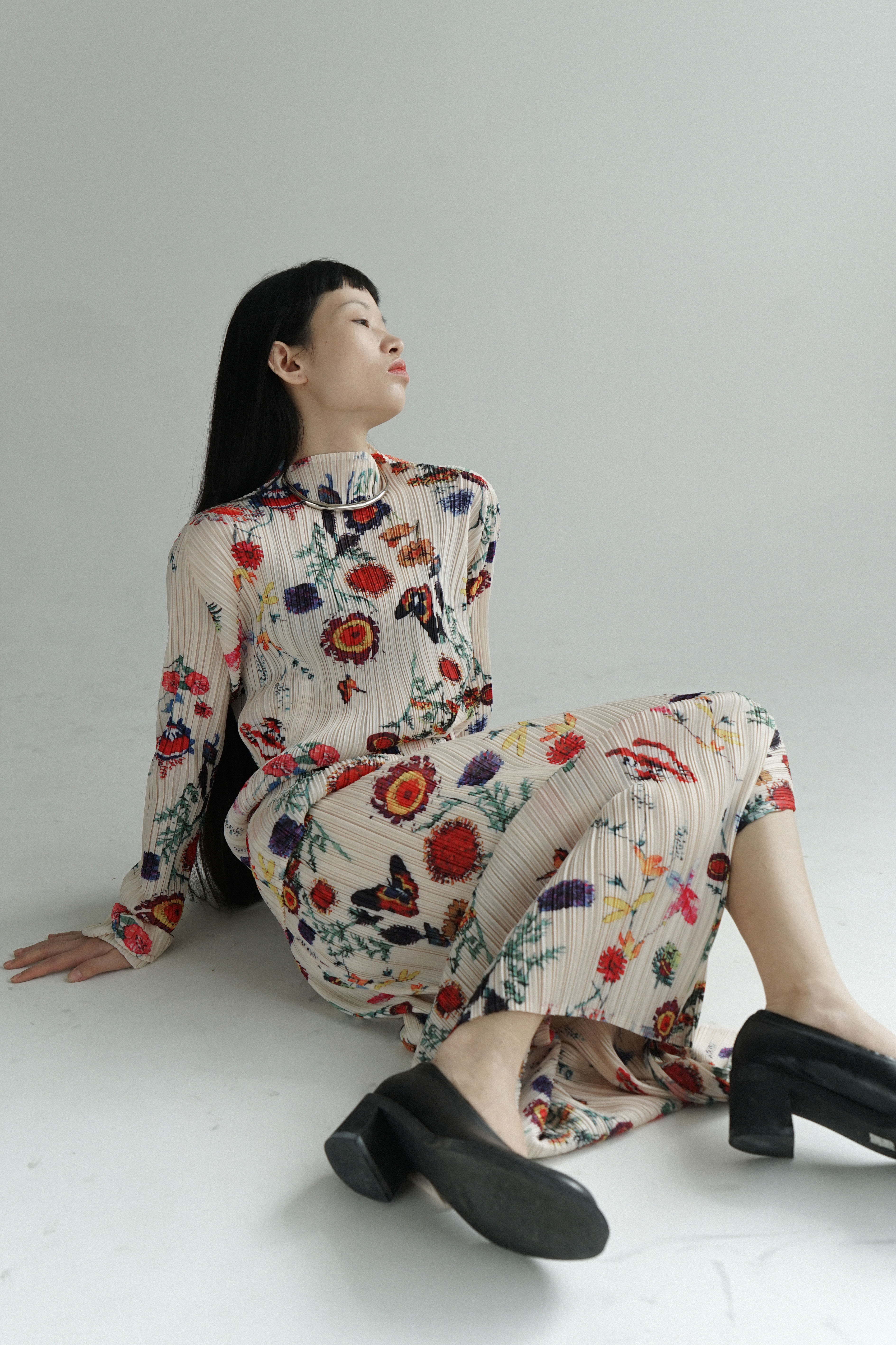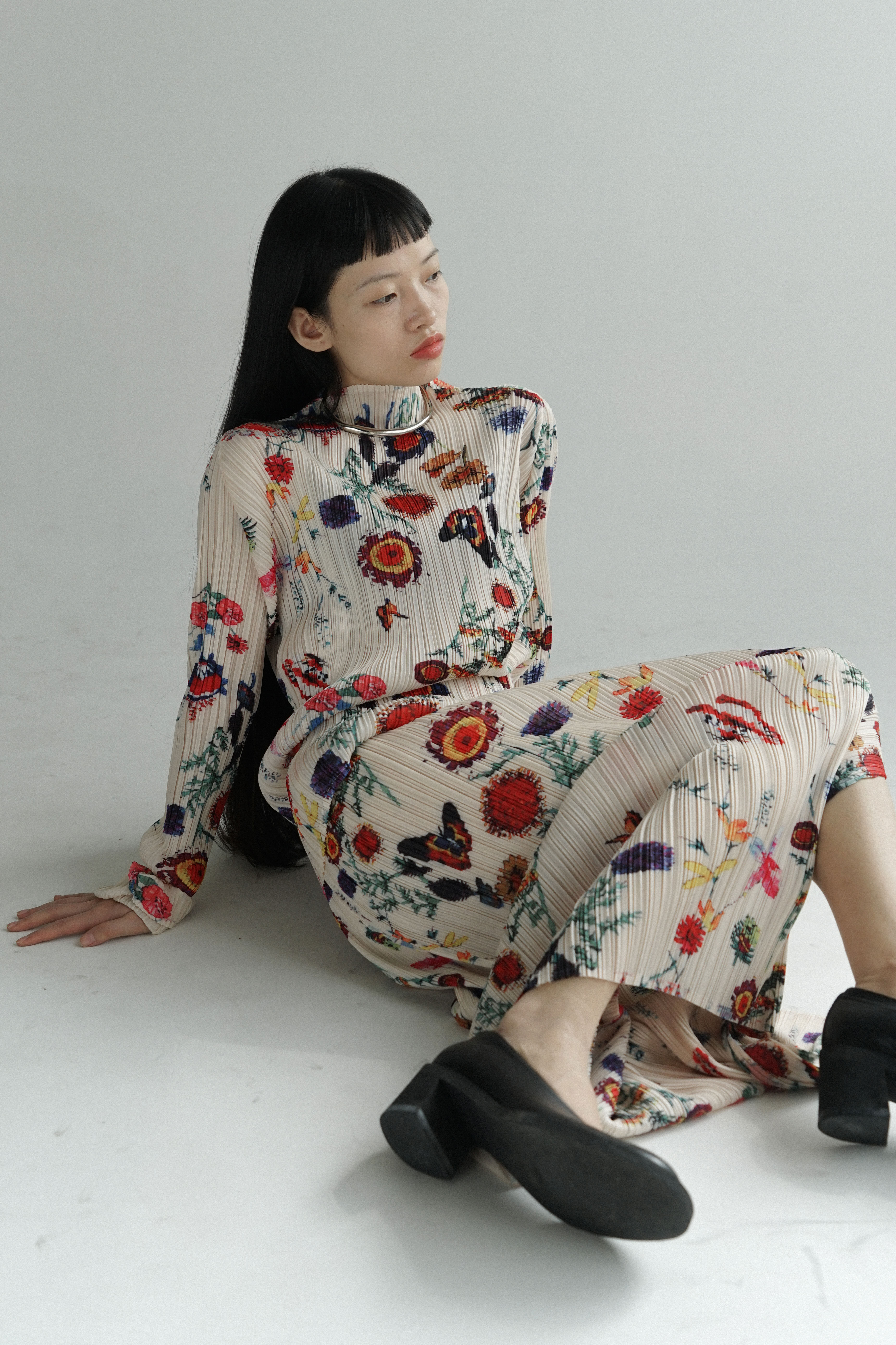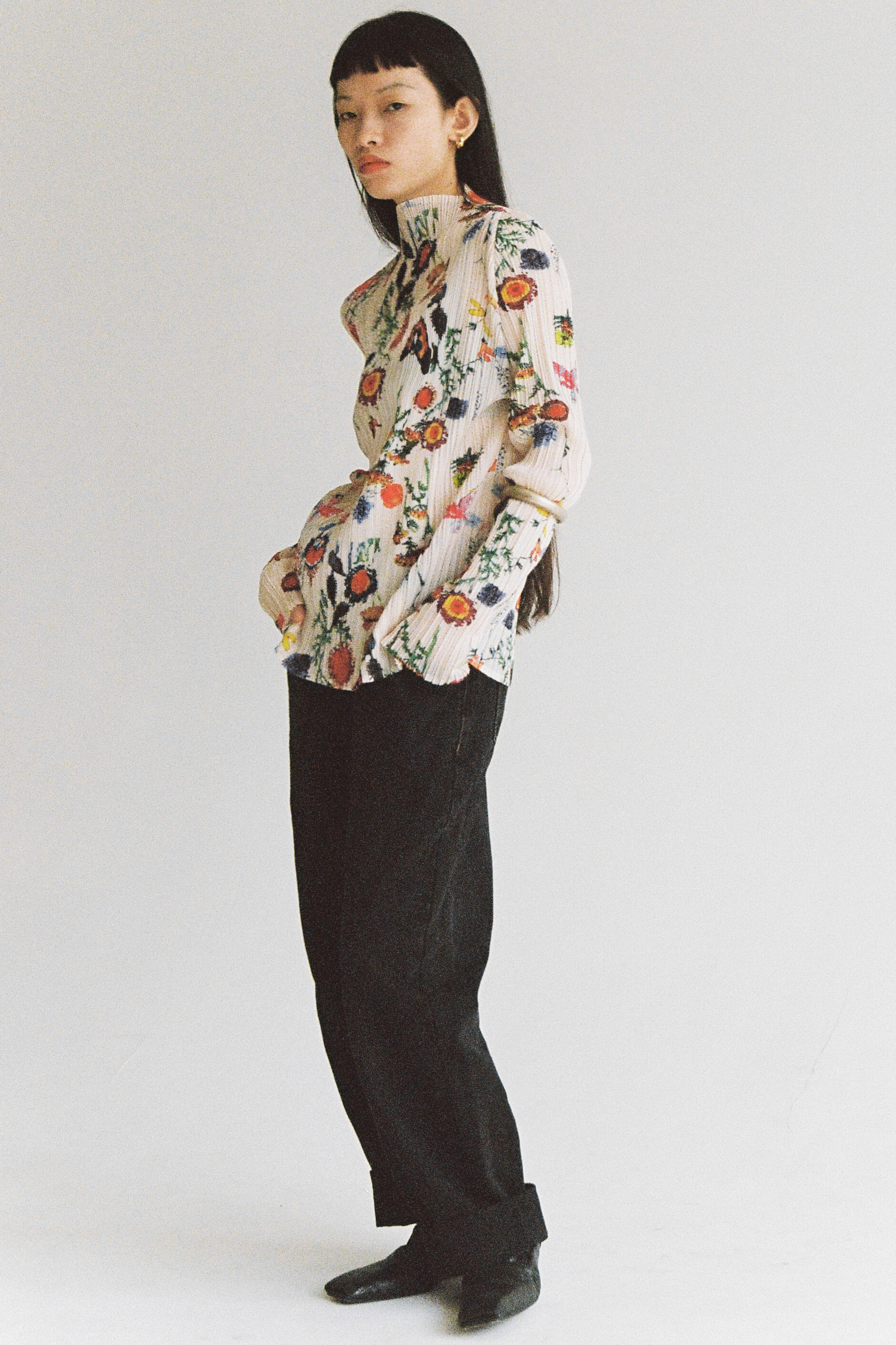 ASAYA1675 TLonely1 long sleeved base pleated print stand up collar long sleeved pullover floral long sleeved T shirt