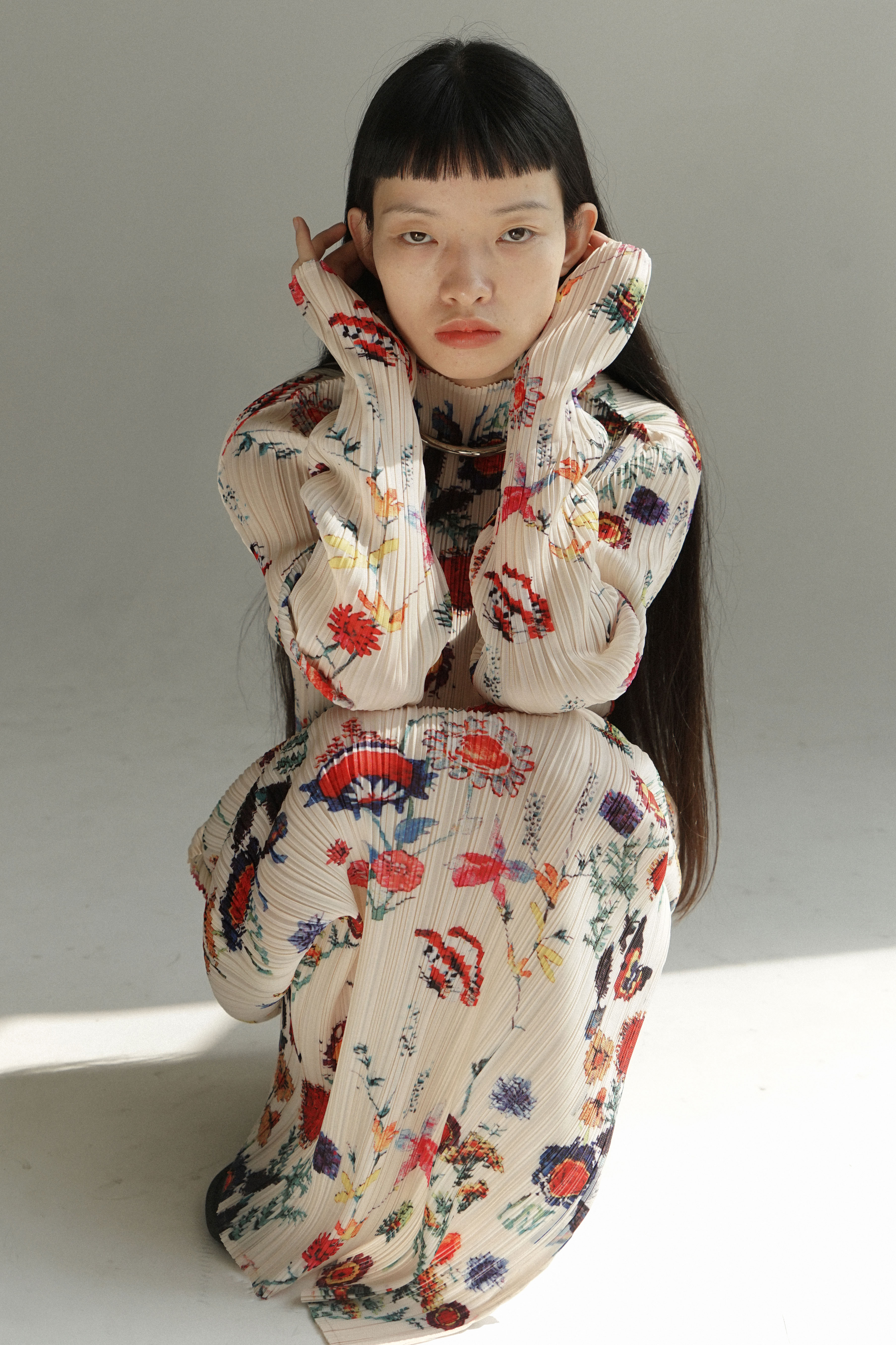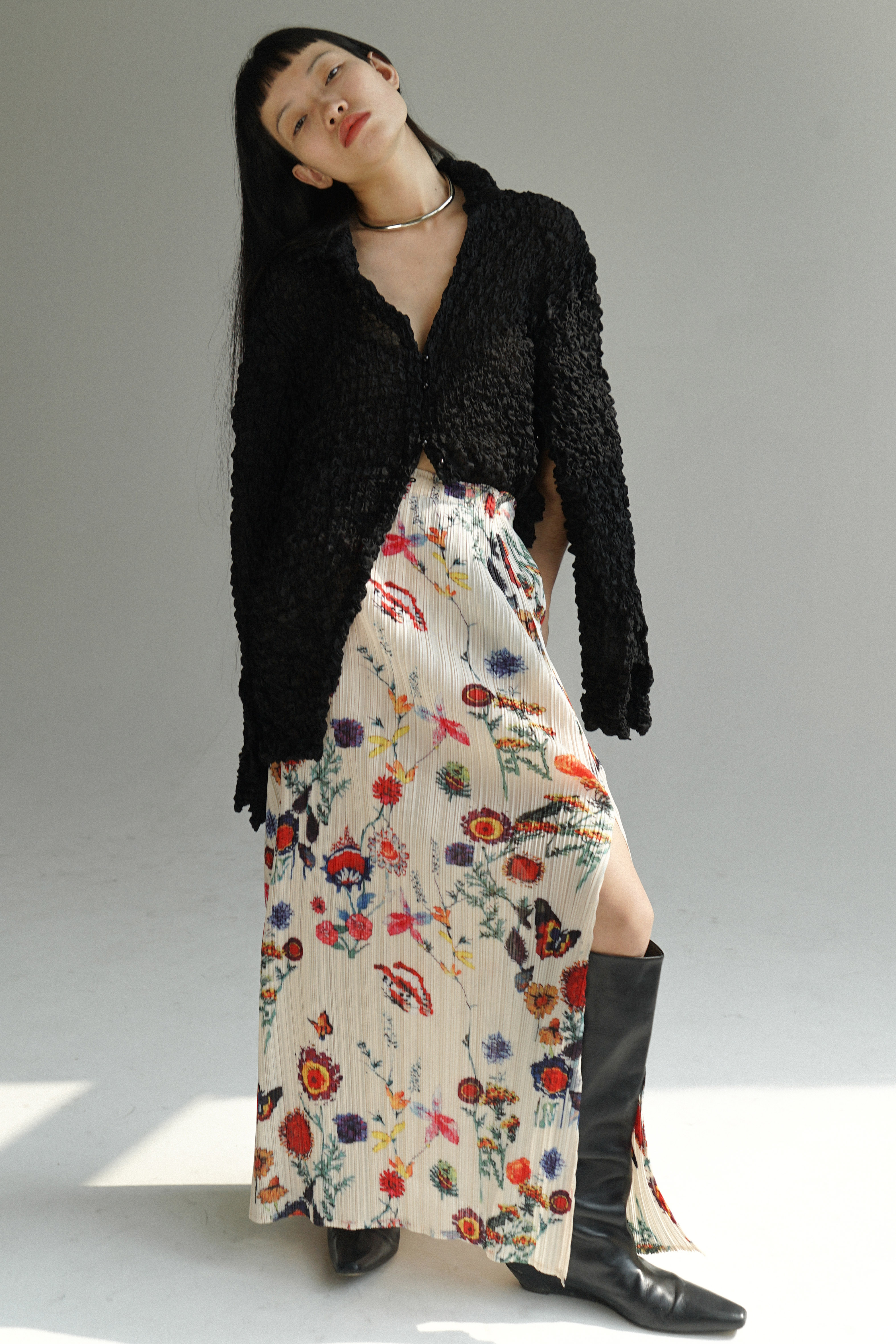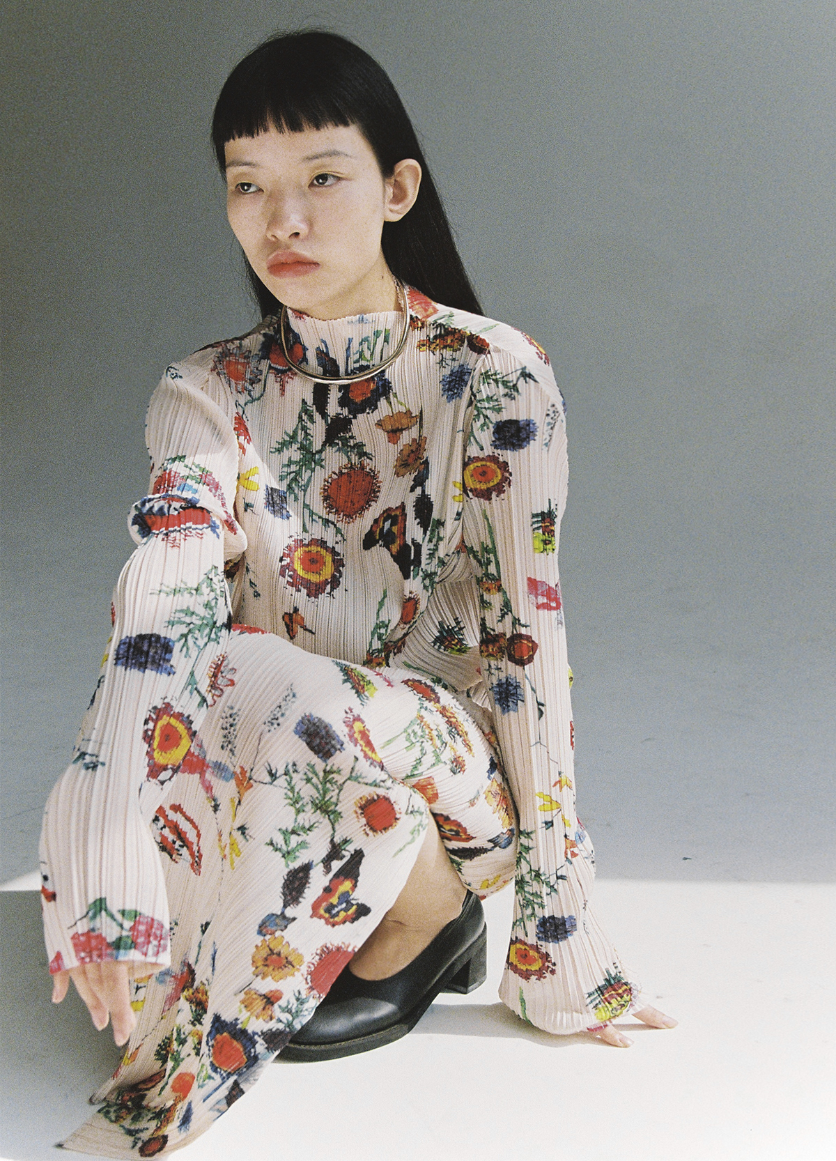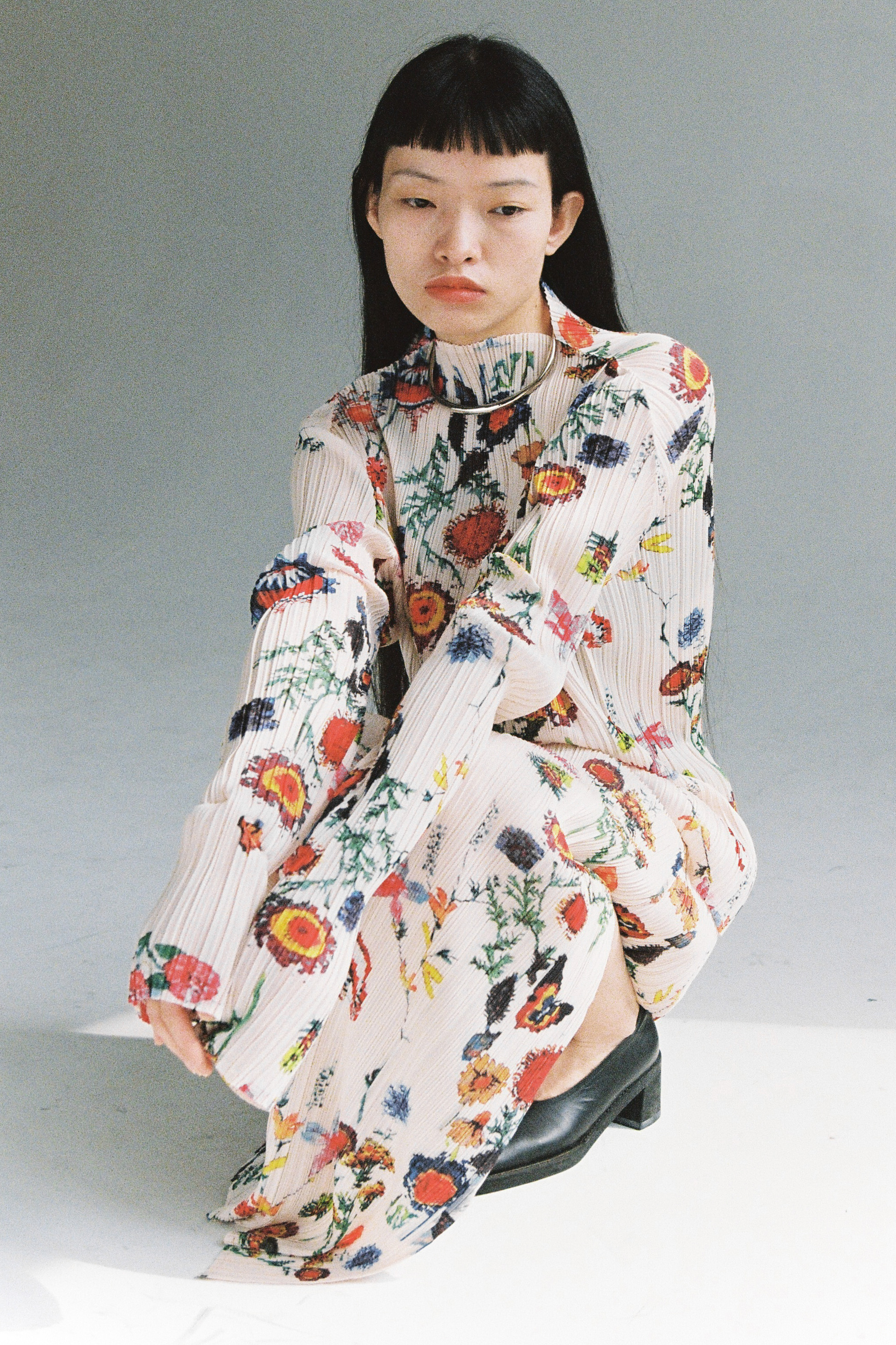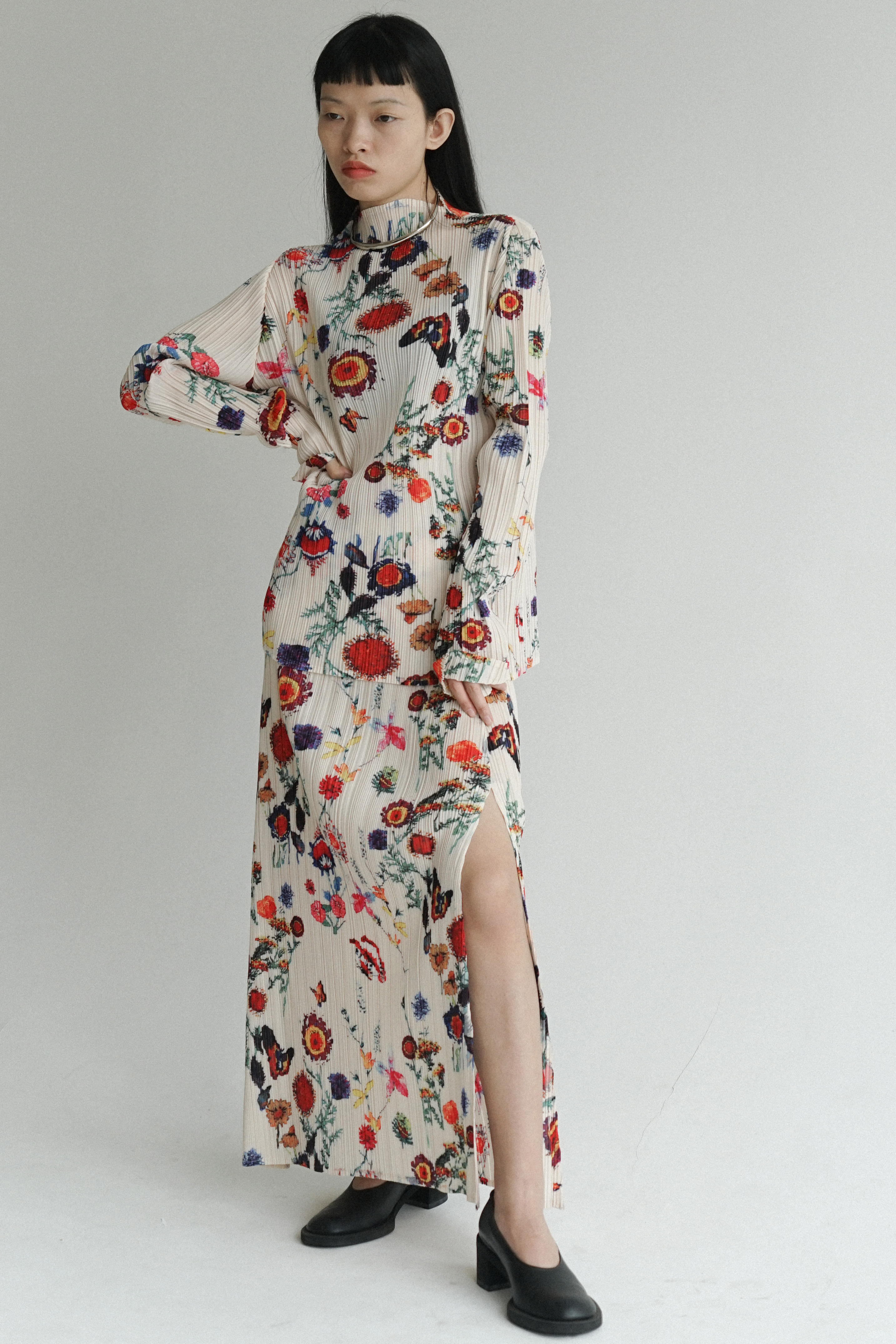 ASAYA1675 TLonely1 long sleeved base pleated print stand up collar long sleeved pullover floral long sleeved T shirt