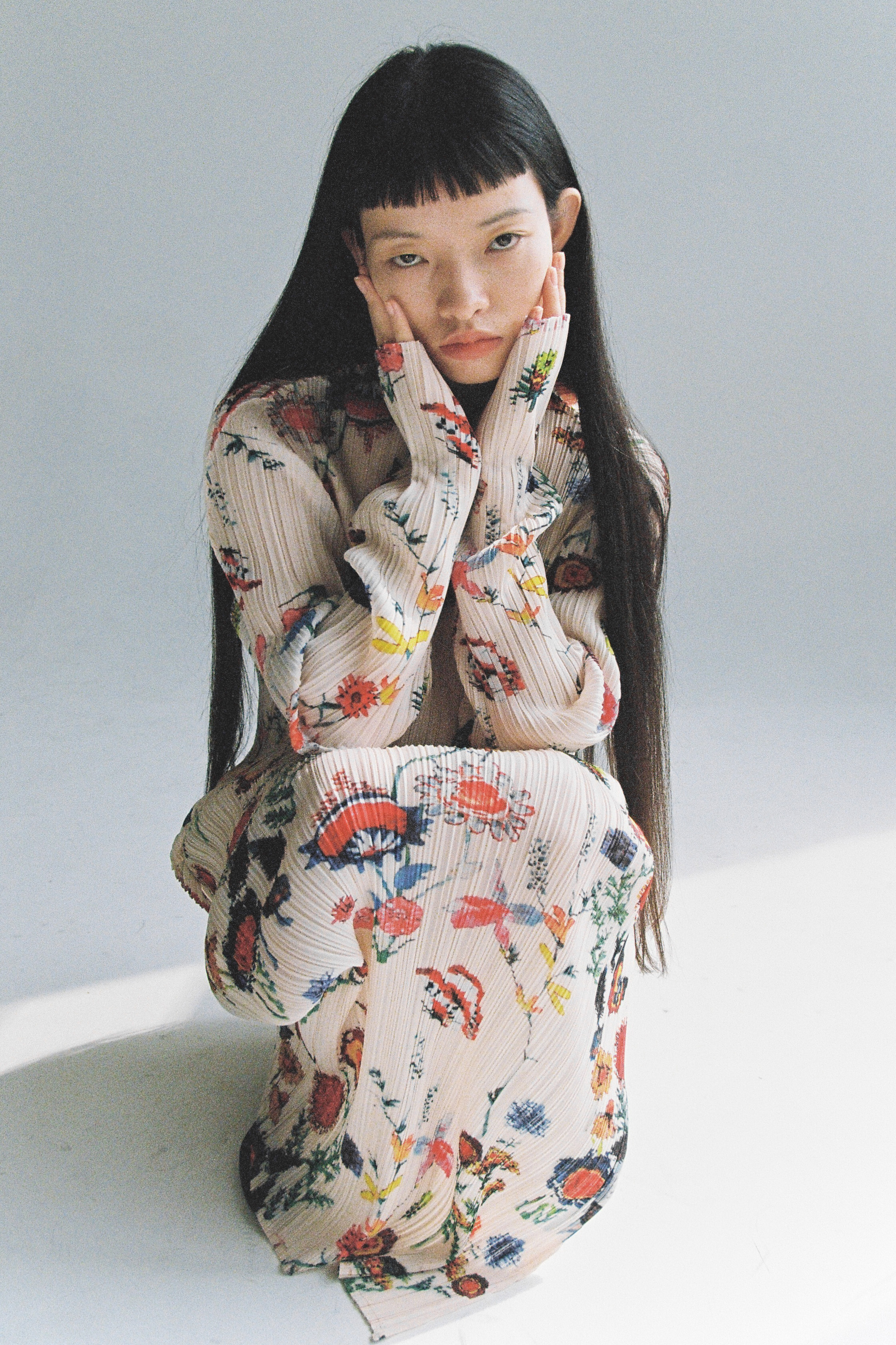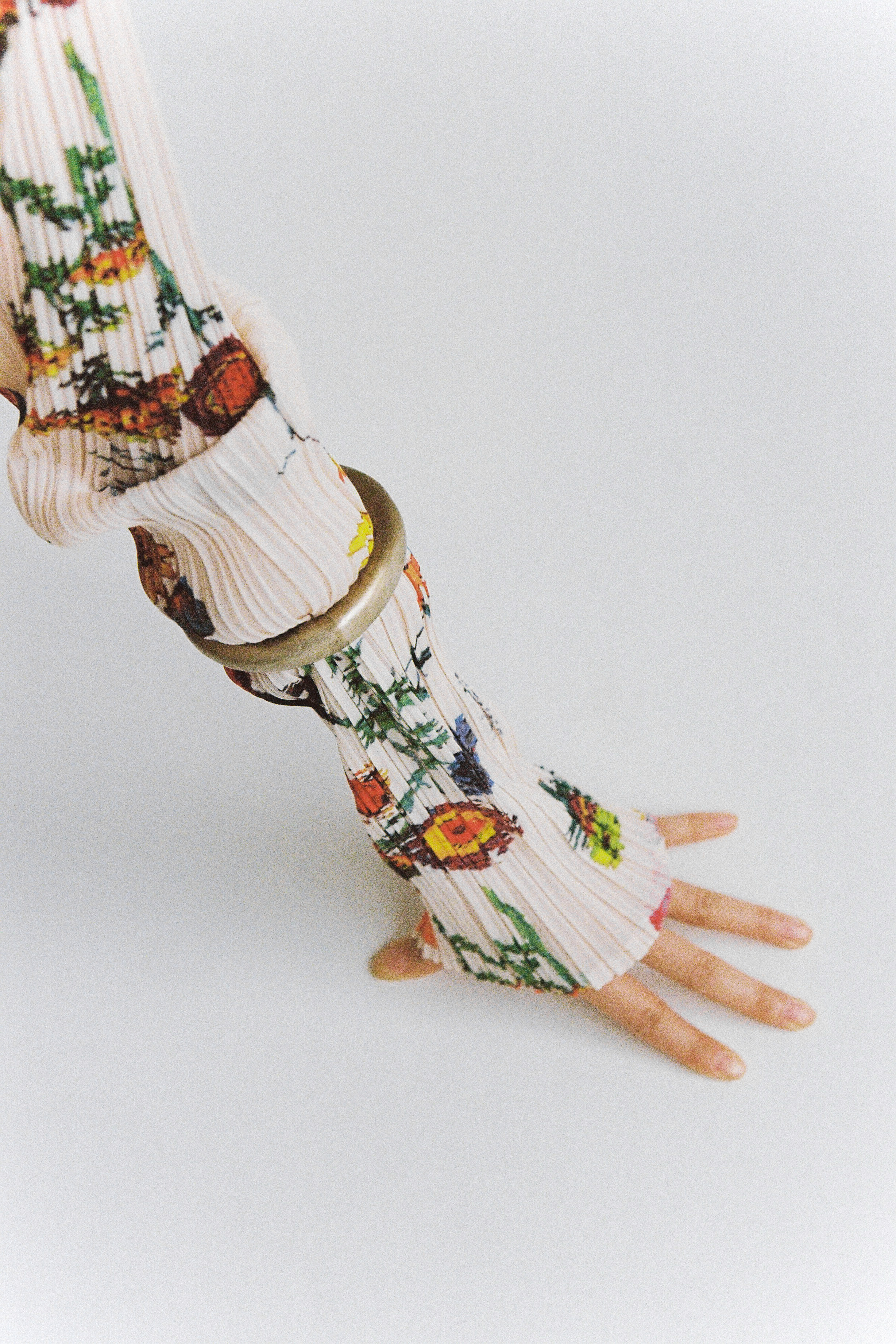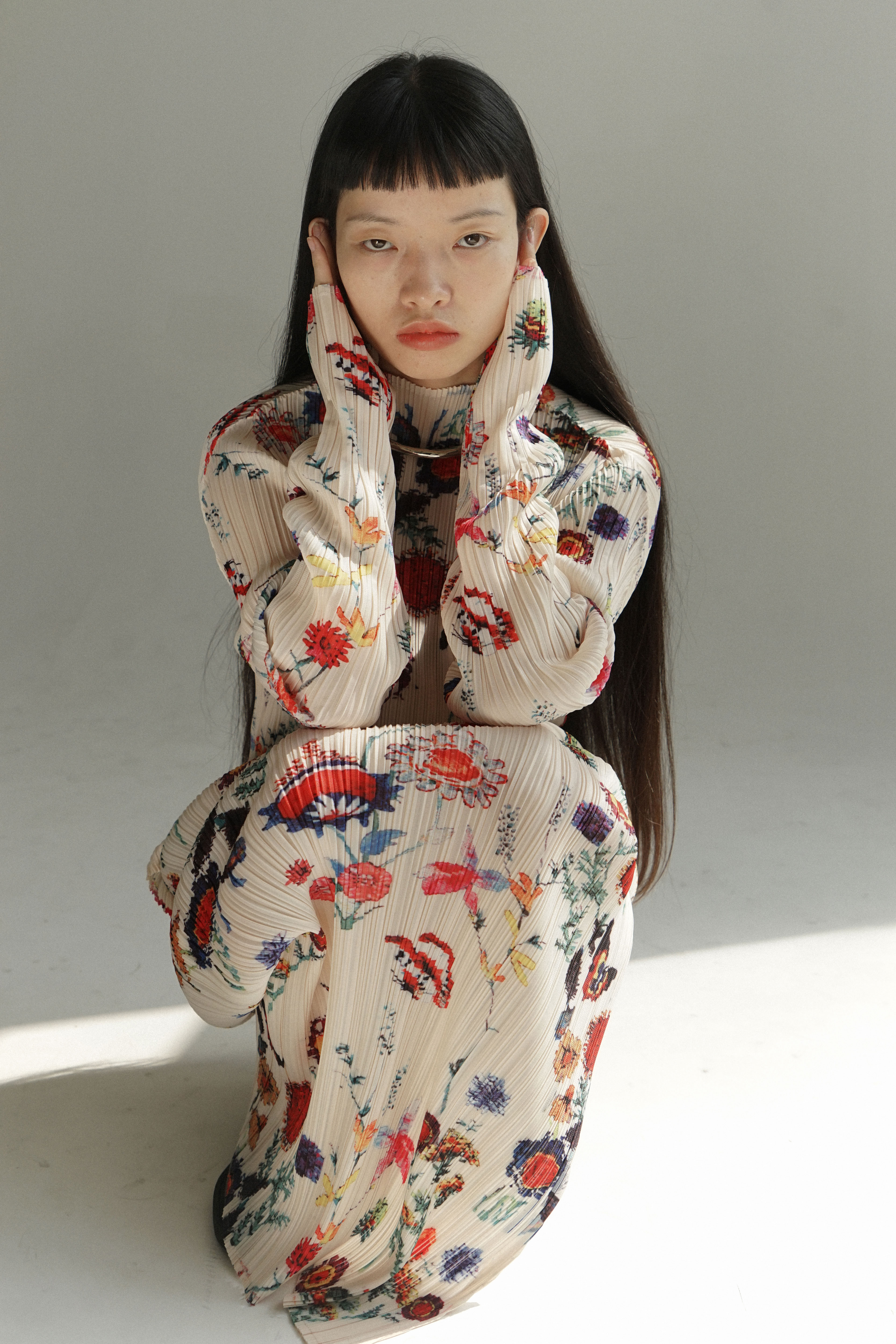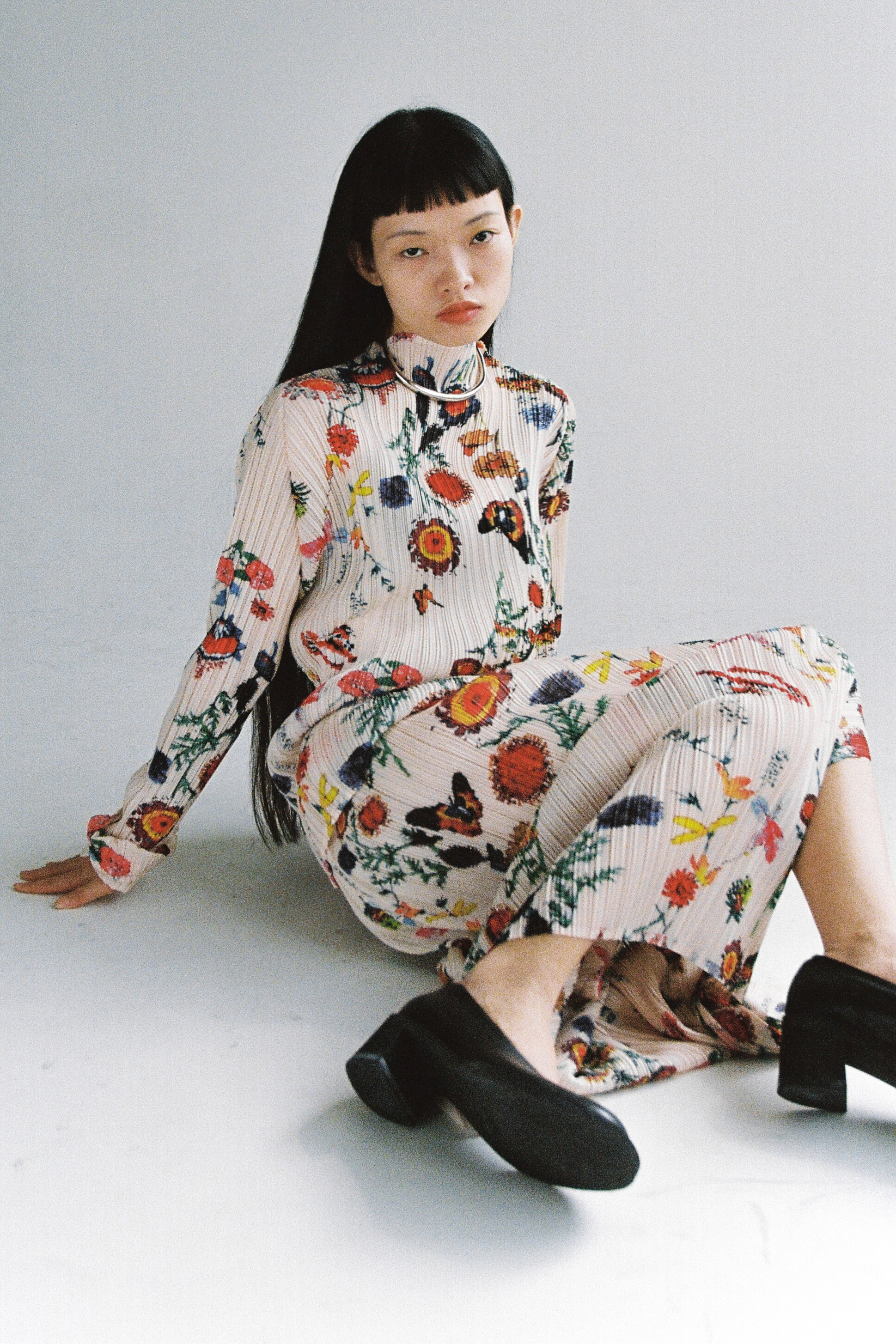 ASAYA1675 TLonely1 long sleeved base pleated print stand up collar long sleeved pullover floral long sleeved T shirt