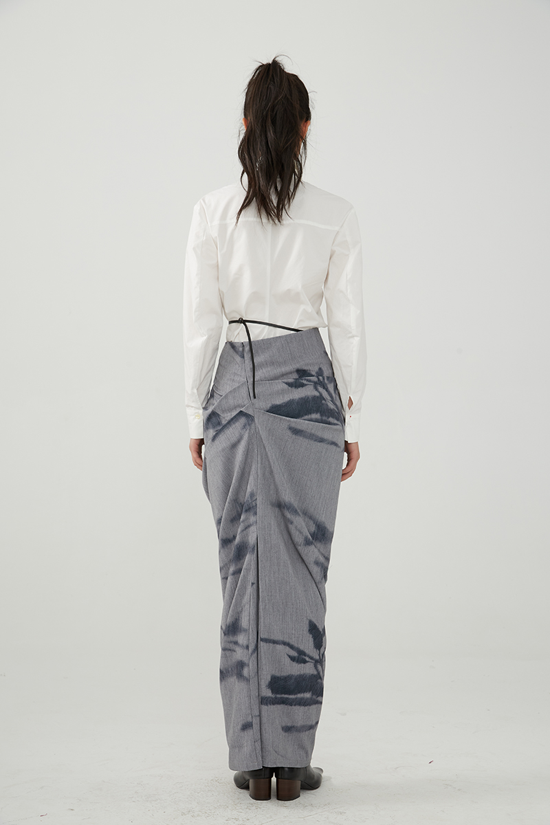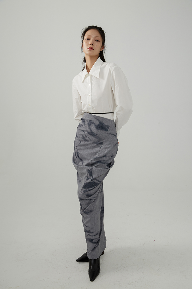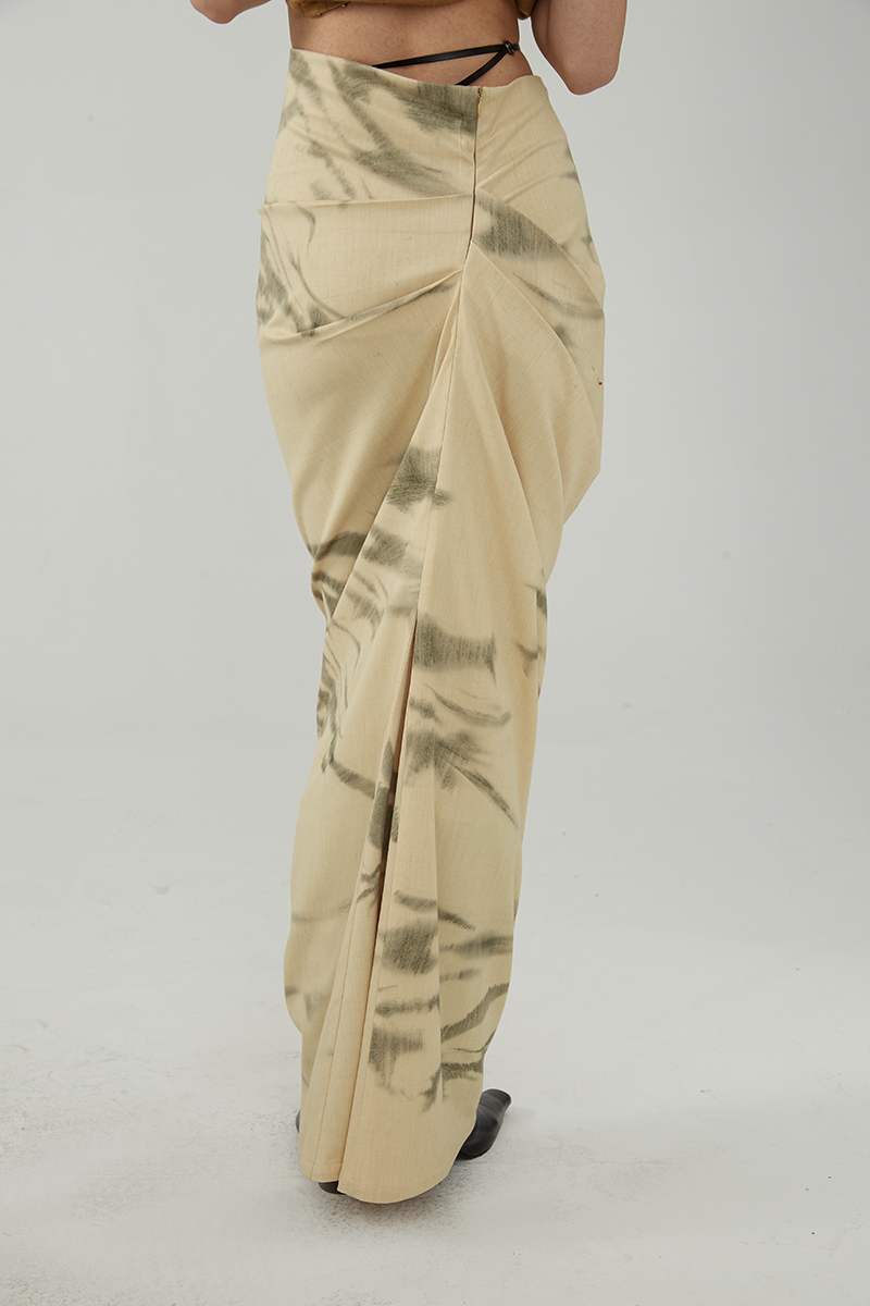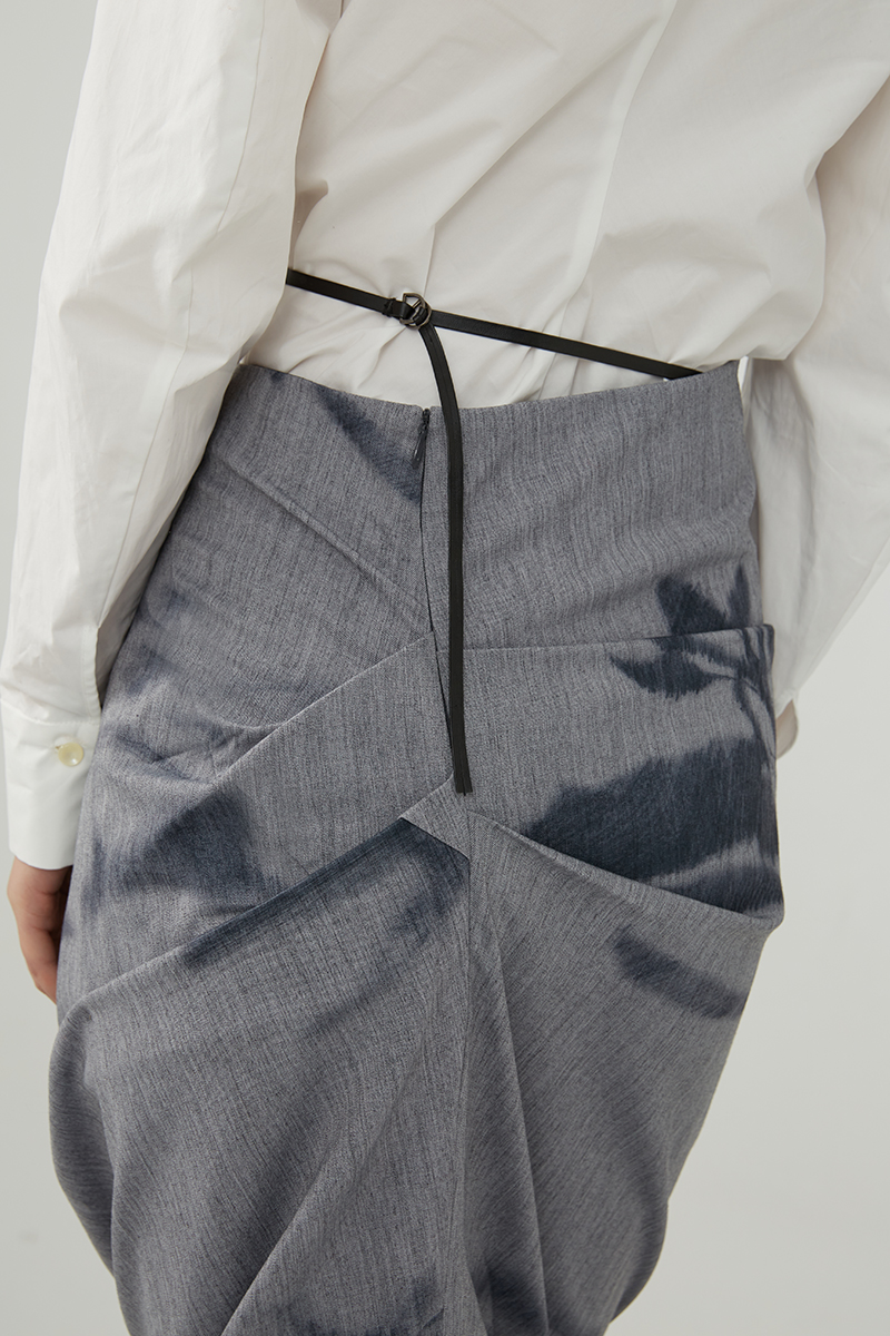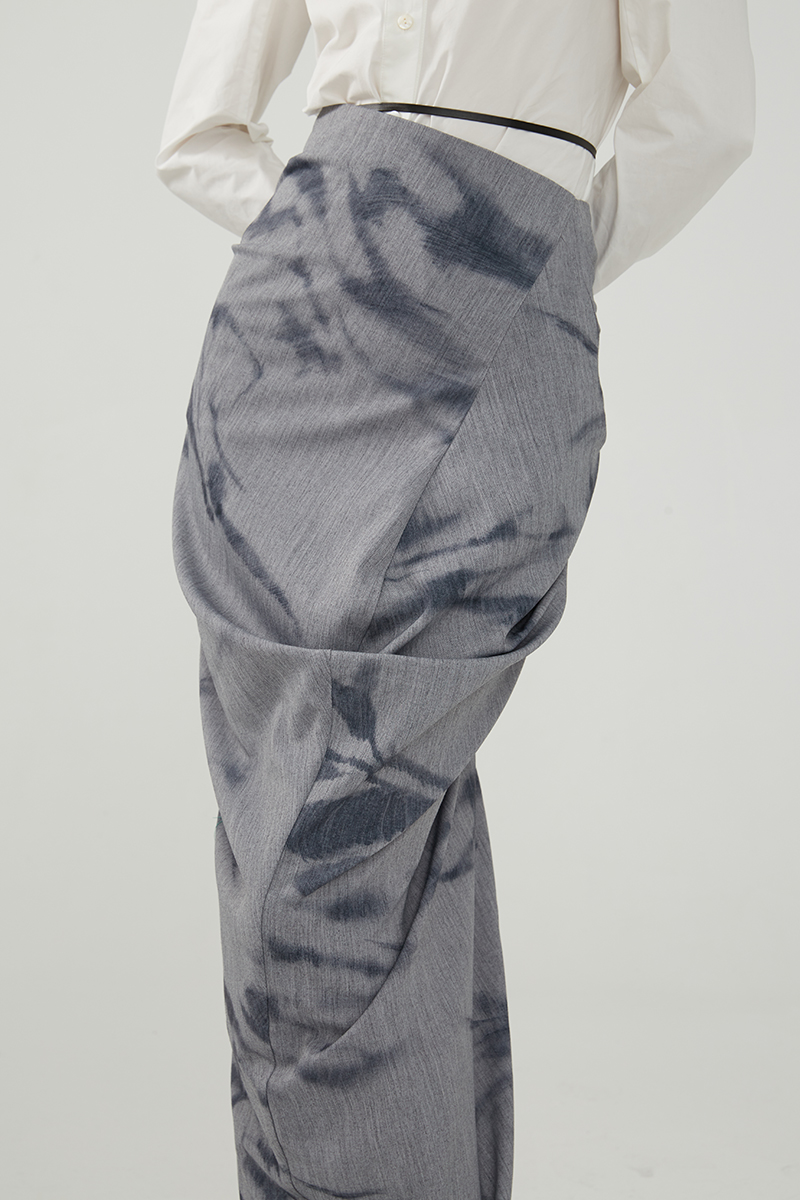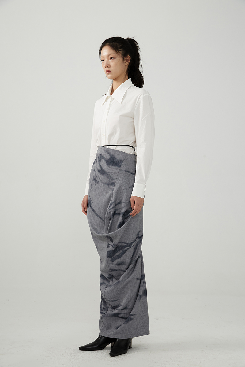 Asaya491 - TMSstudio wrinkled print niche tight fitting autumn high waist slimming bag hip high end design personalized half body long skirt