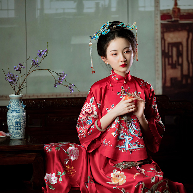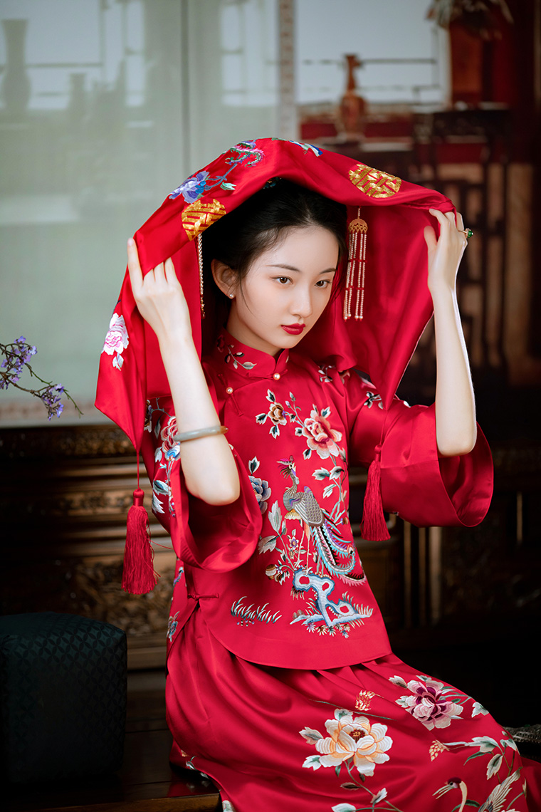 Asaya1584 Tongxin Yi Machine Embroidery Edition One City Style Republican Style Wedding Dress Chinese Embroidery Bridal Dress Female