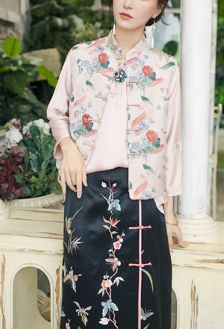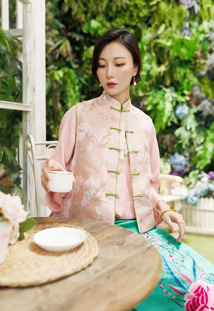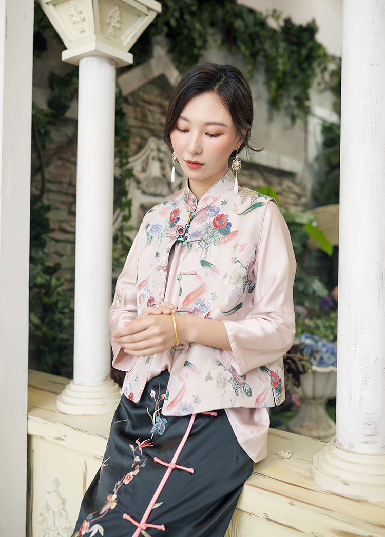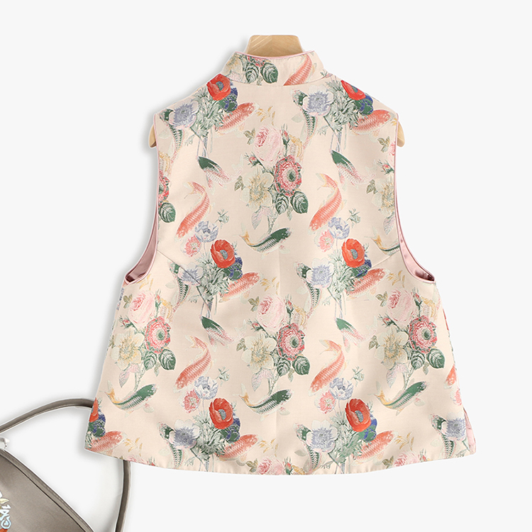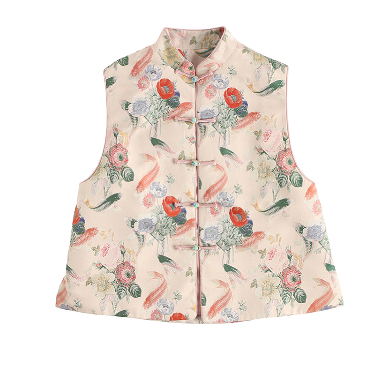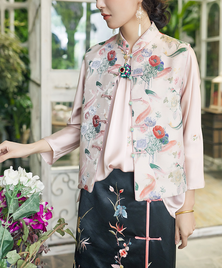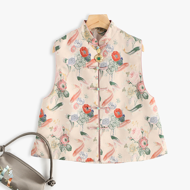 Asaya282 - New Chinese style magnolia slimming stand collar jade buckle vest for spring and autumn wear