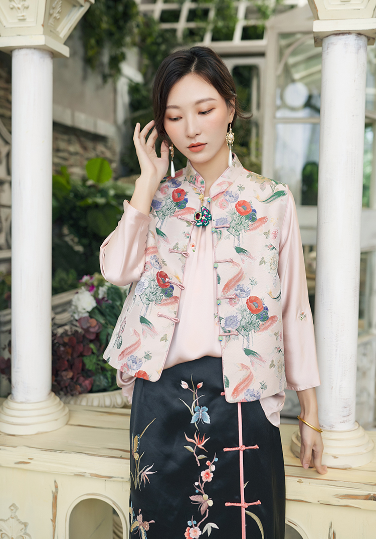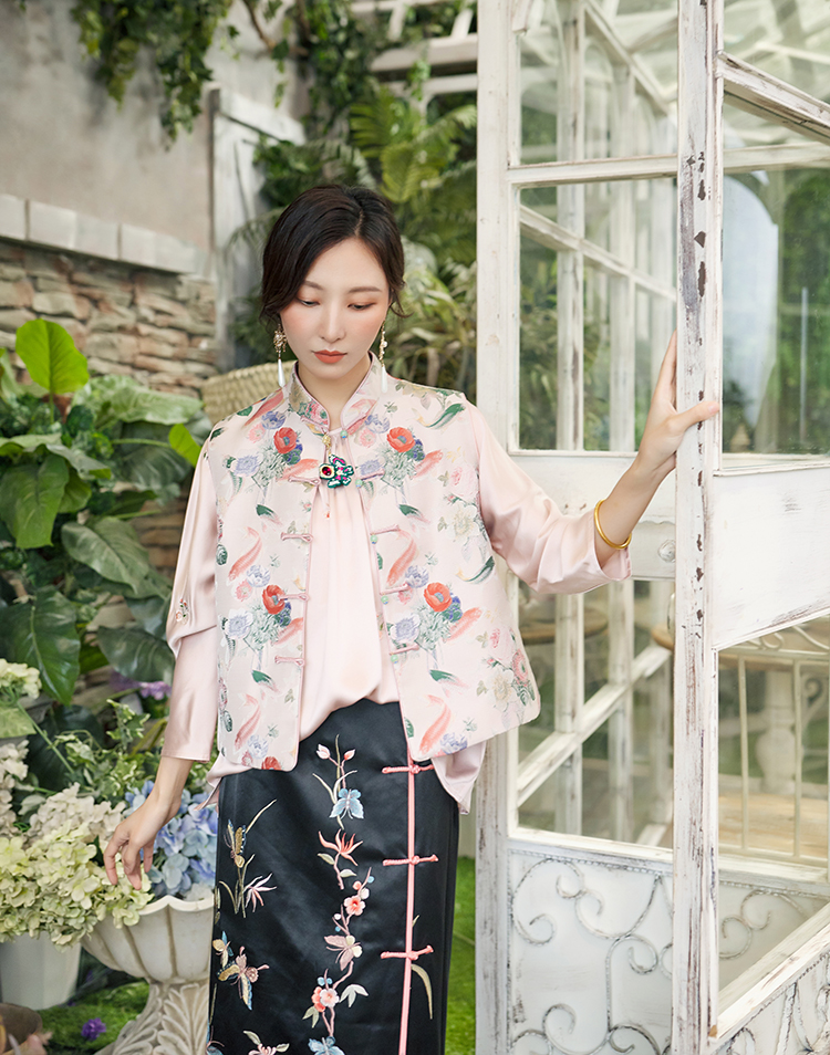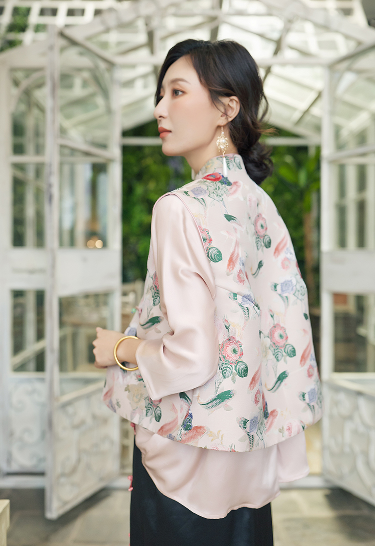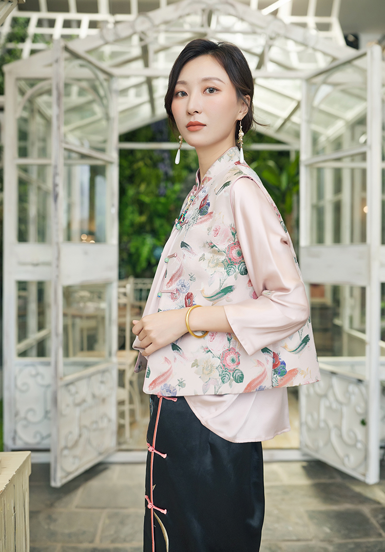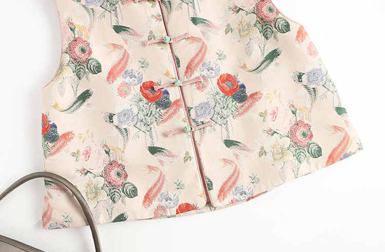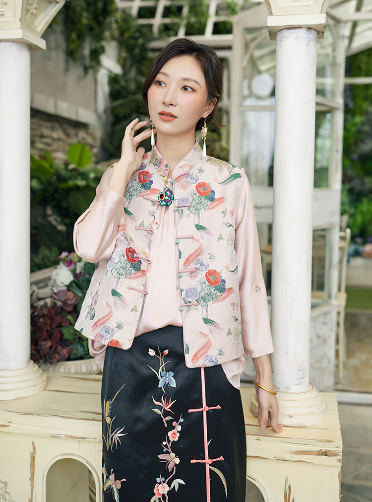 Asaya282 - New Chinese style magnolia slimming stand collar jade buckle vest for spring and autumn wear