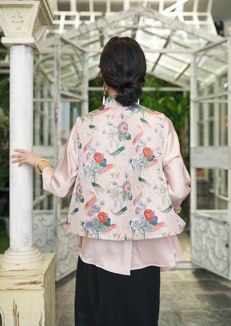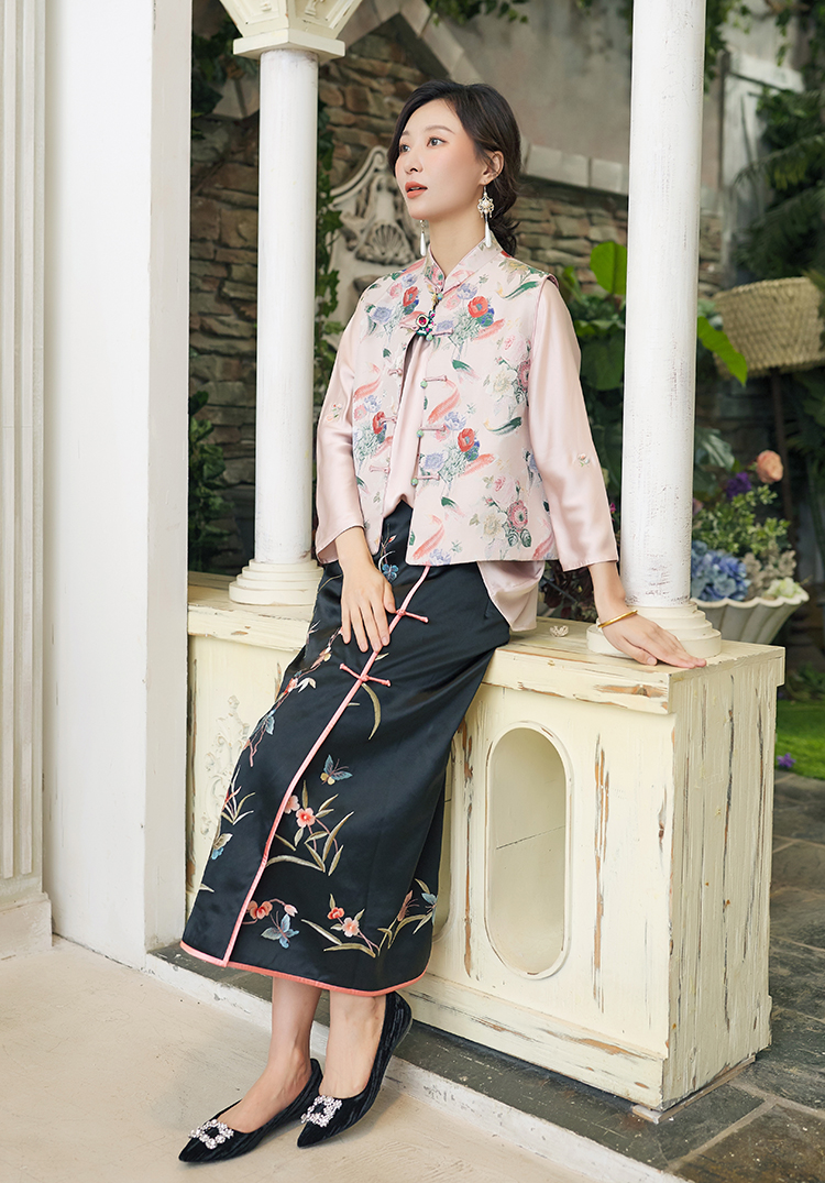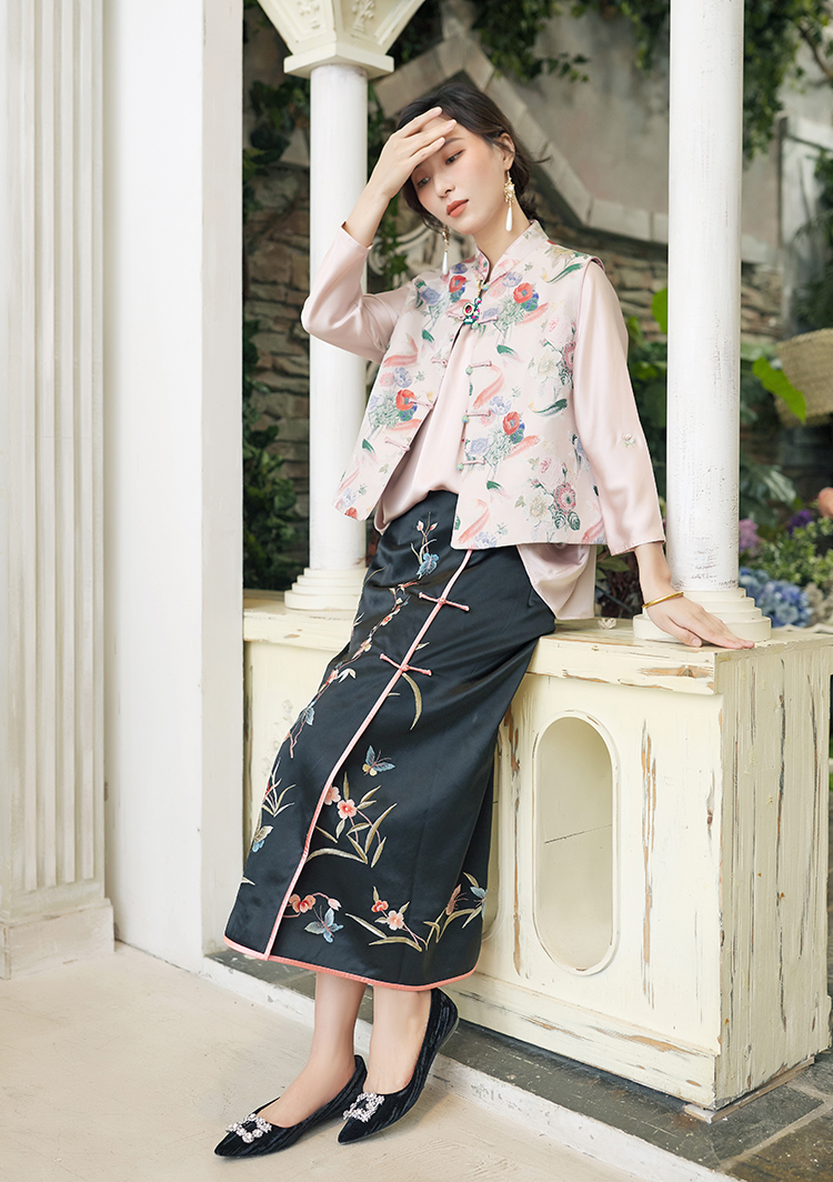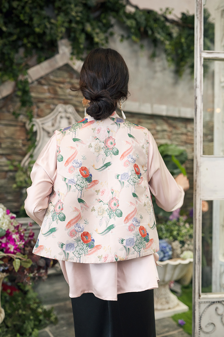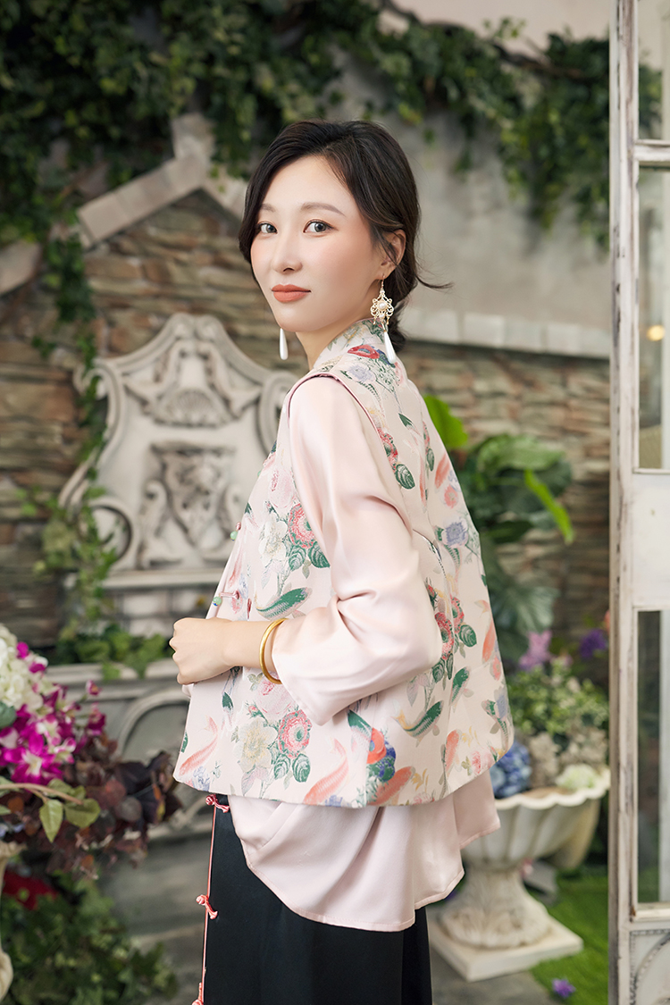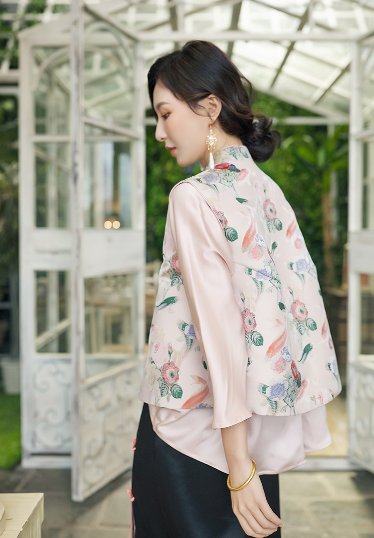 Asaya282 - New Chinese style magnolia slimming stand collar jade buckle vest for spring and autumn wear