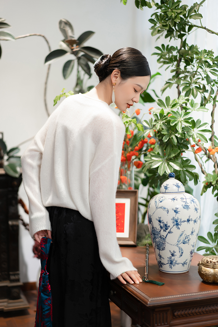 真丝羊绒结合的纱线是可以想见的极高舒适感