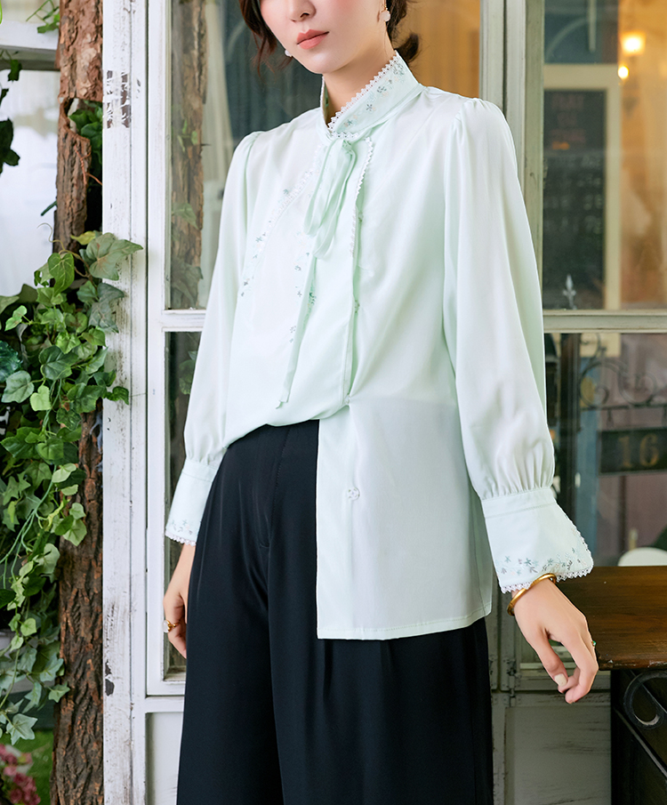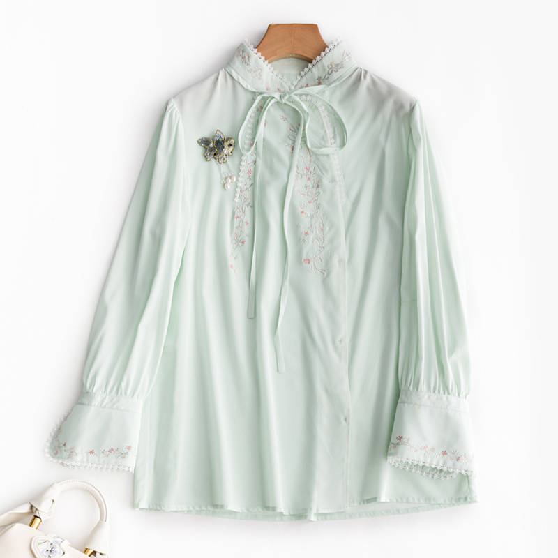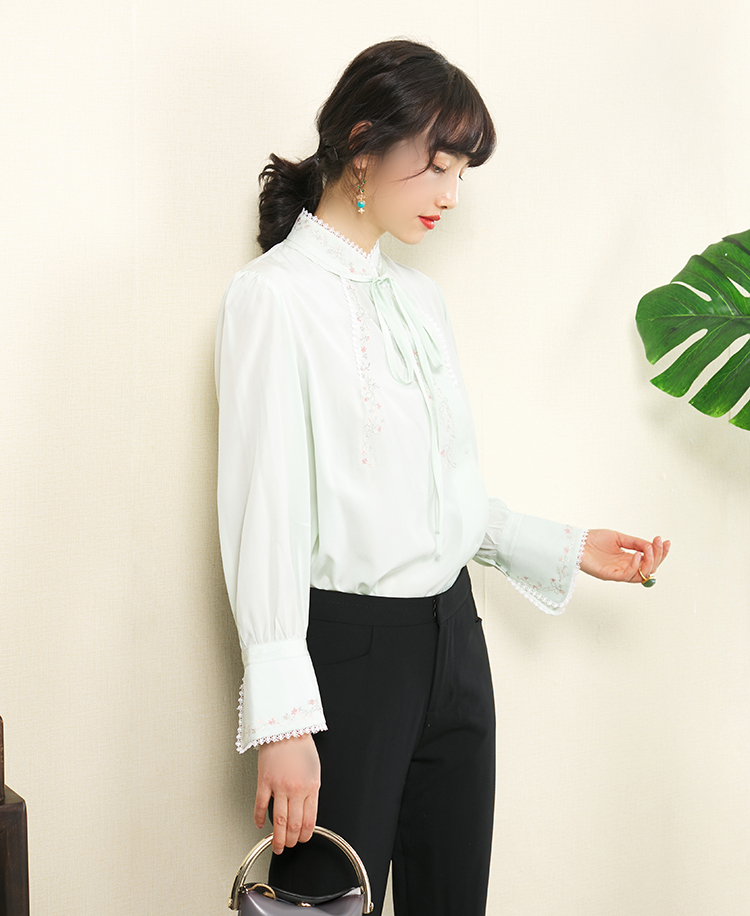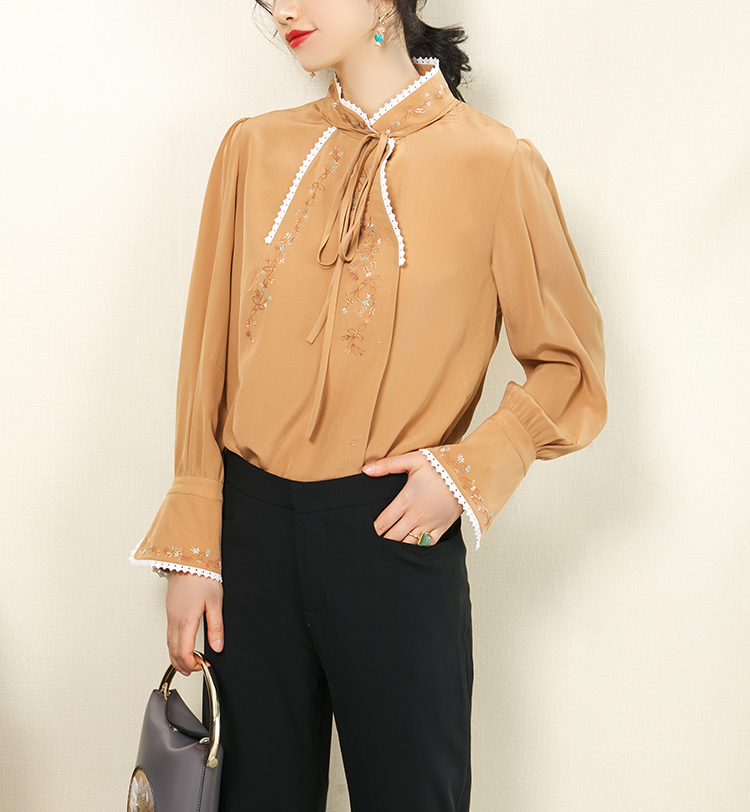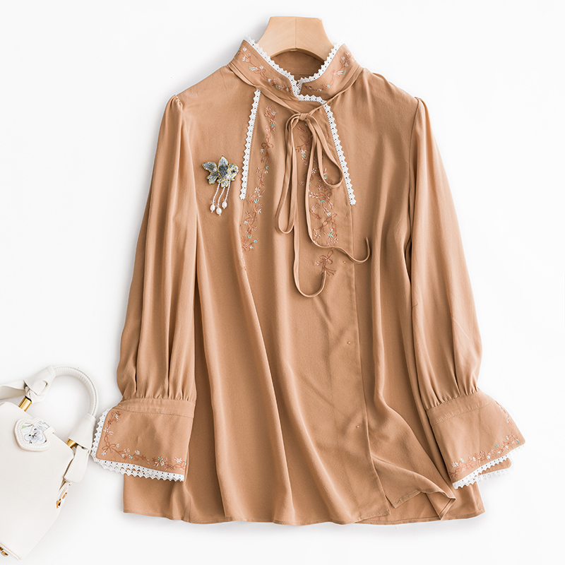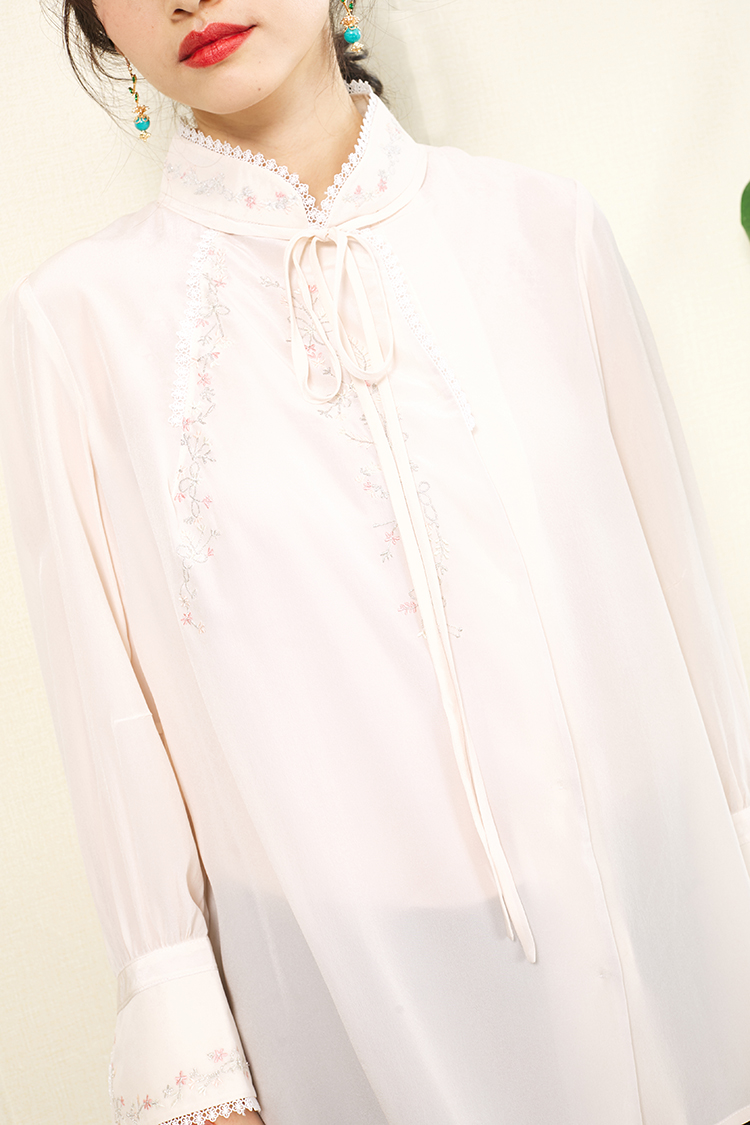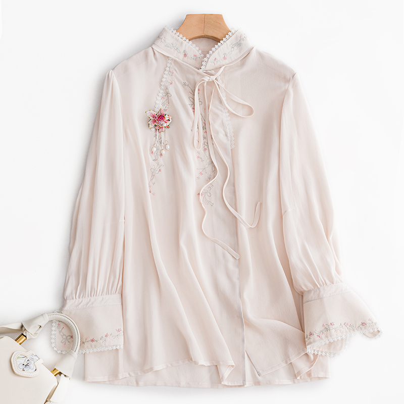 Asaya0311 - Town Store Baby PCY652 Silk Shirt a combination of Chinese and Western styles embroidered silk shirt OL shirt gentle and exquisite as water