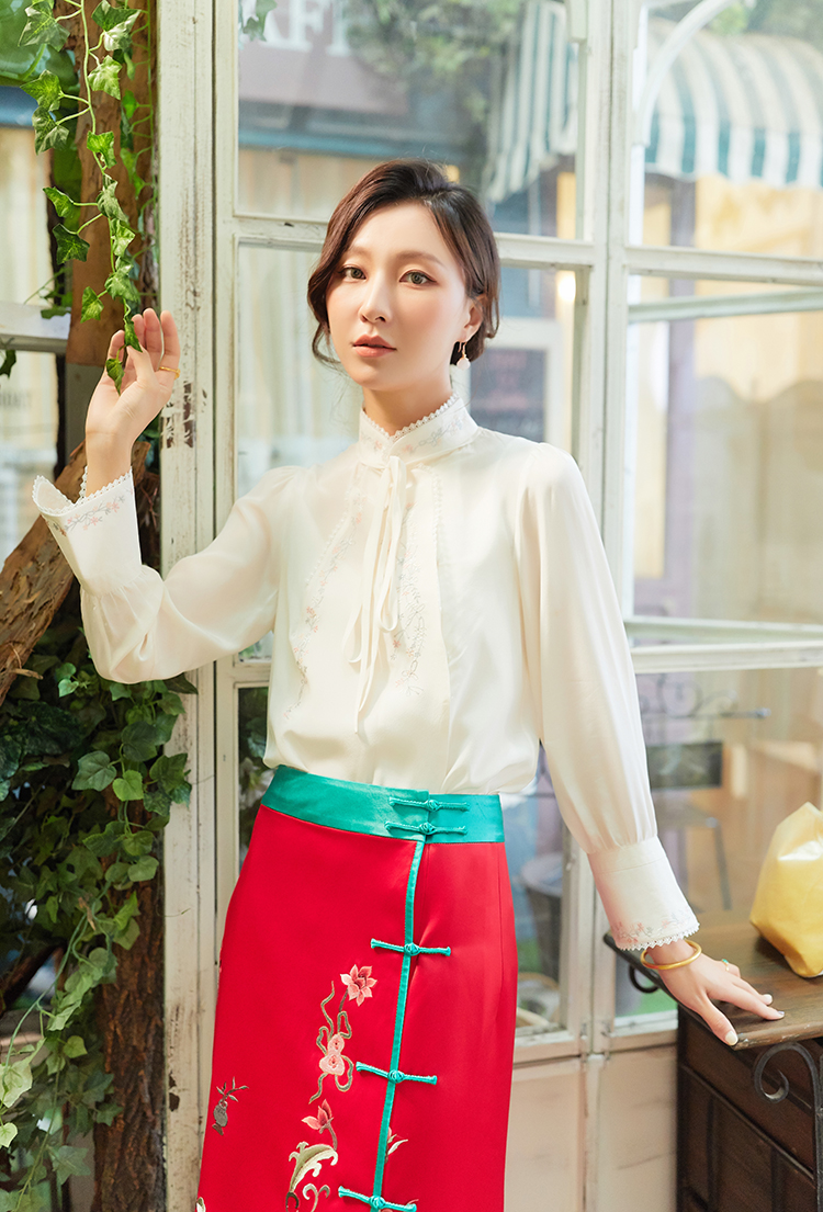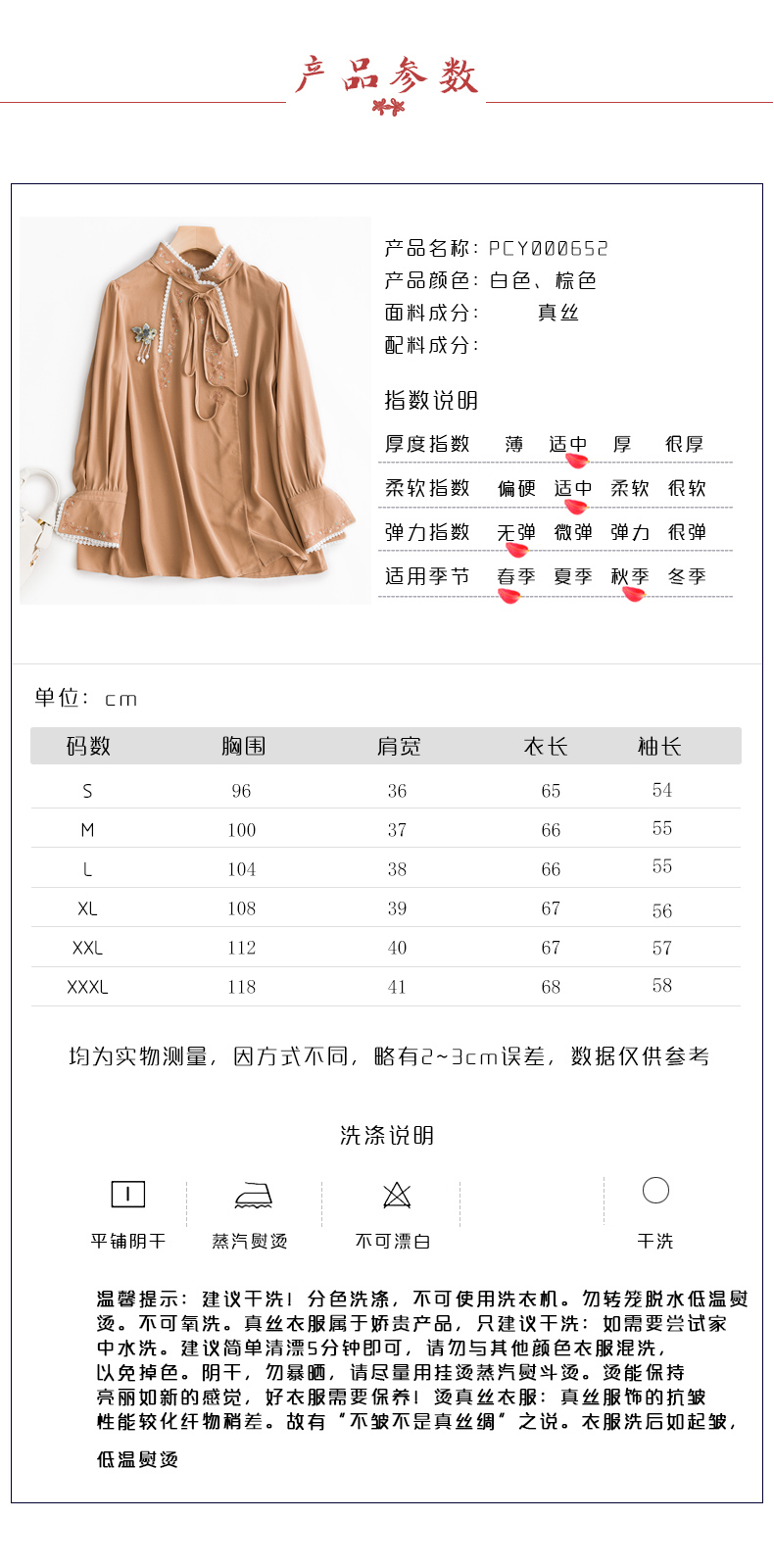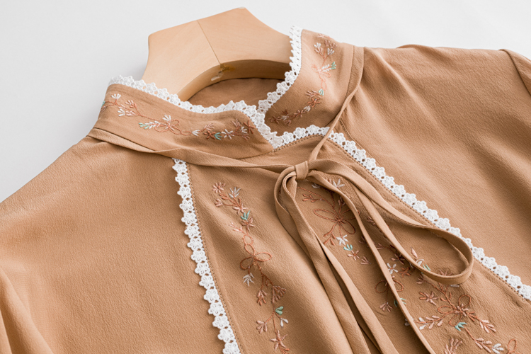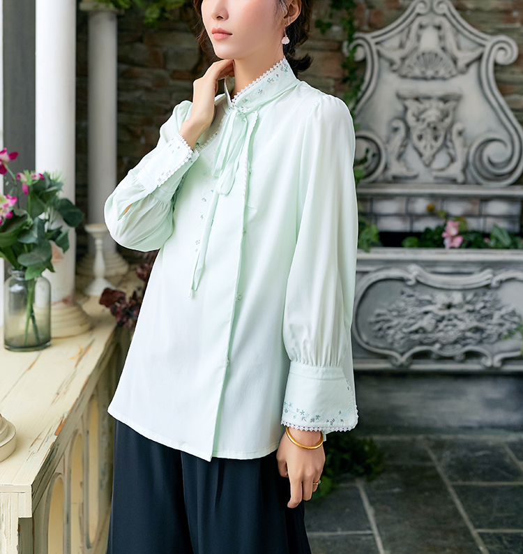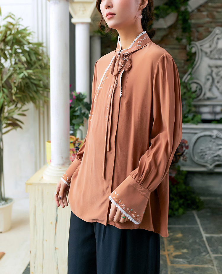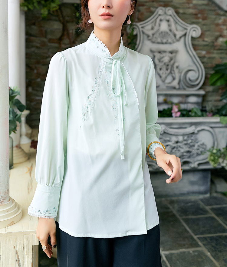 Asaya0311 - Town Store Baby PCY652 Silk Shirt a combination of Chinese and Western styles embroidered silk shirt OL shirt gentle and exquisite as water