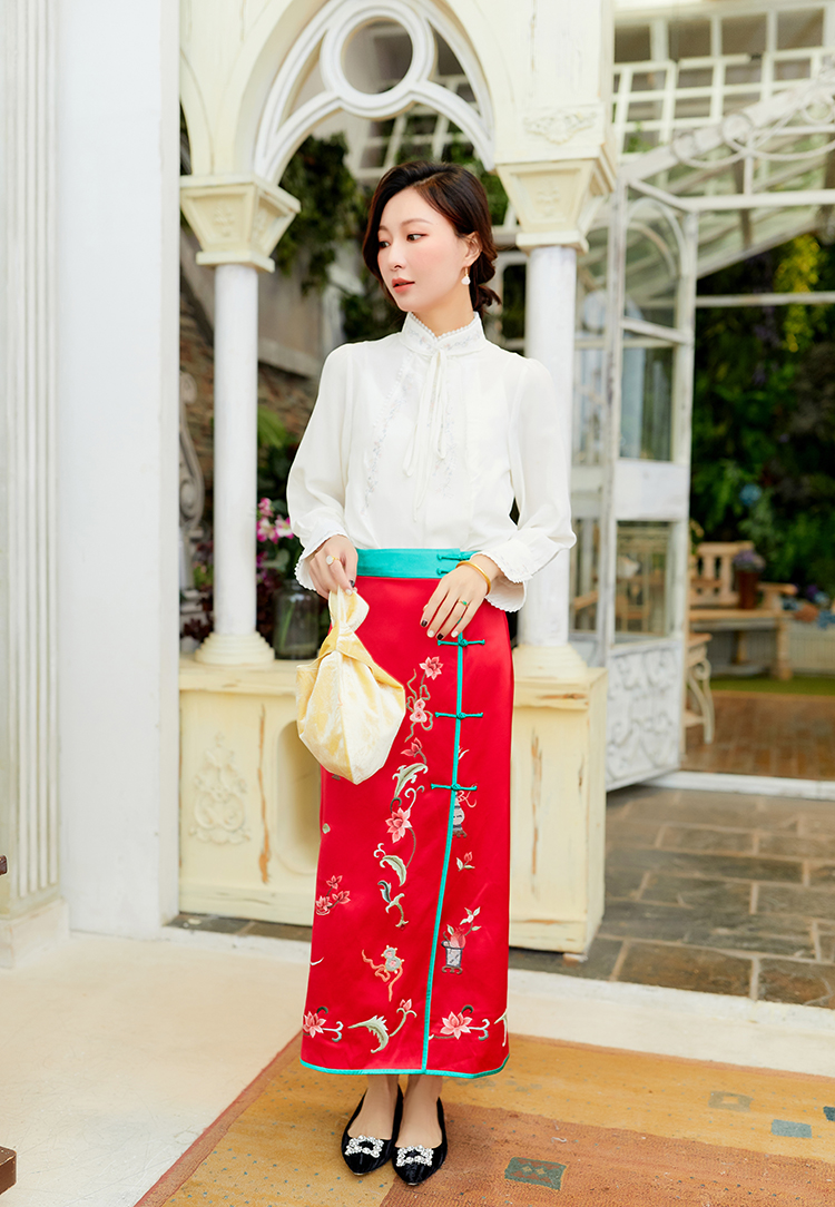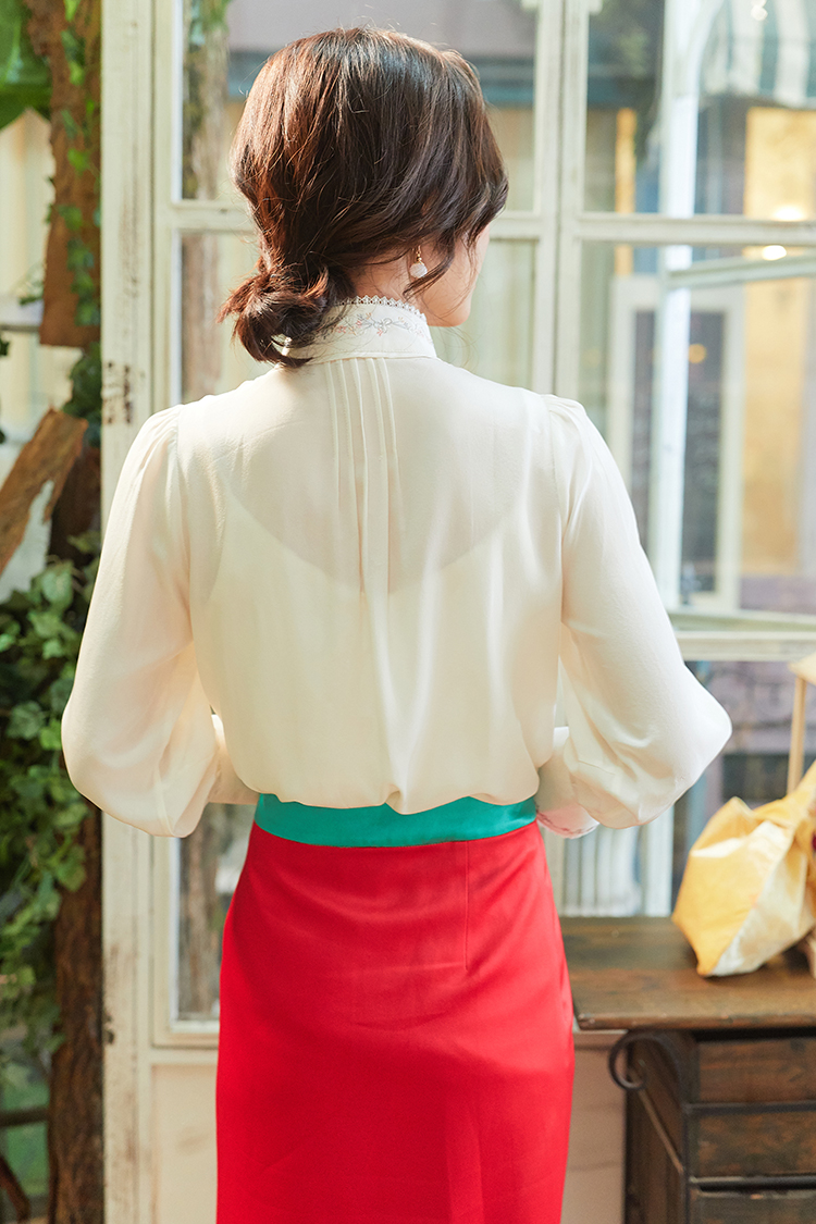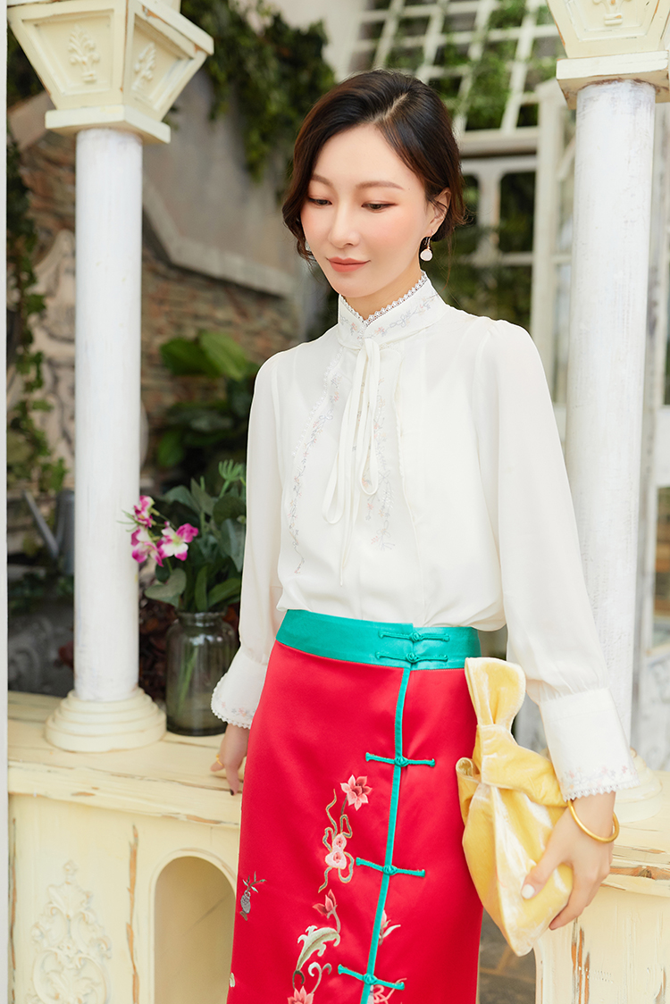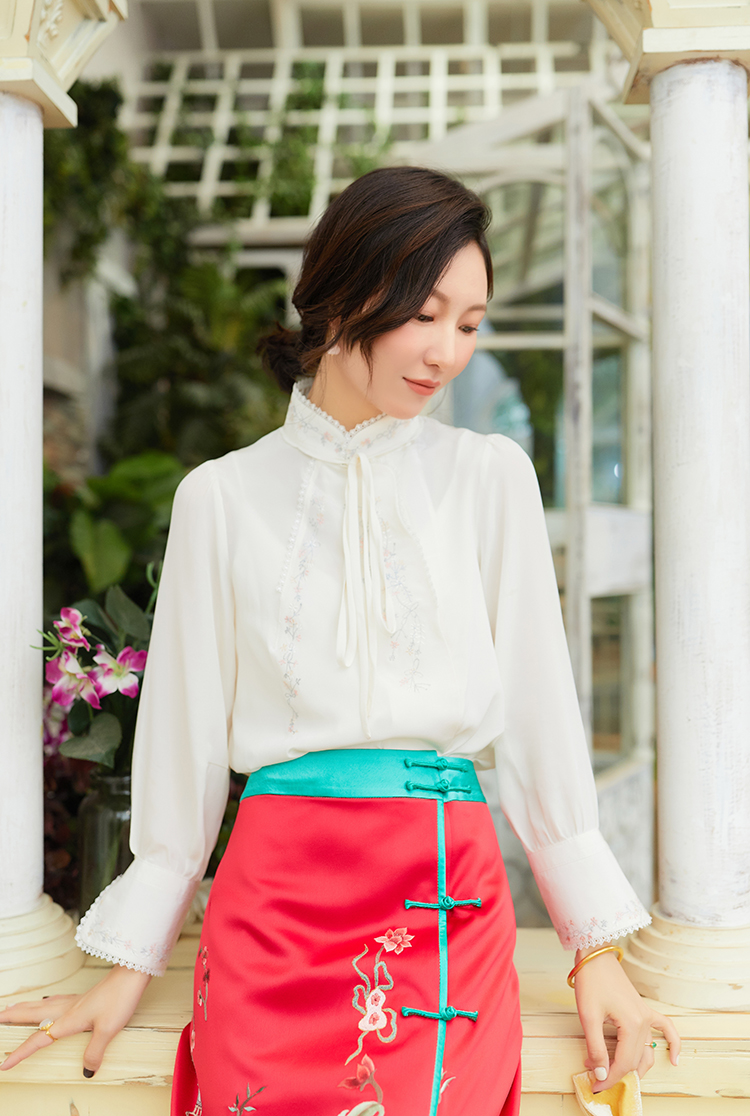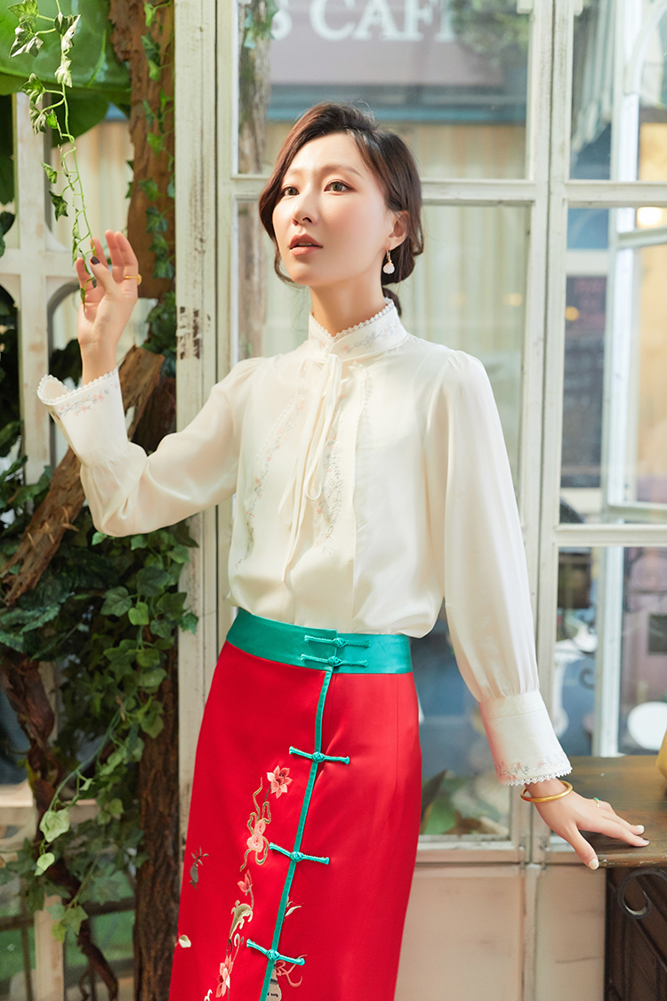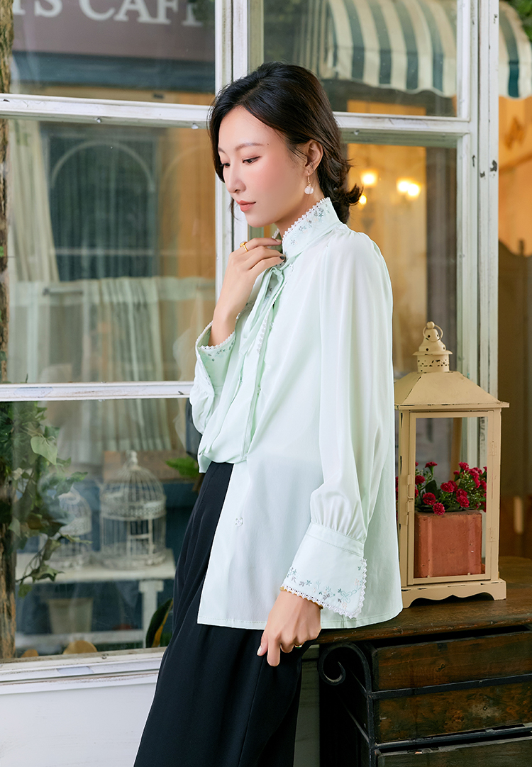 Asaya0311 - Town Store Baby PCY652 Silk Shirt a combination of Chinese and Western styles embroidered silk shirt OL shirt gentle and exquisite as water