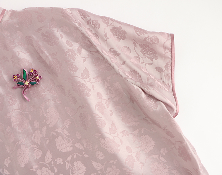 桑蚕丝质地柔滑细腻 精致的牡丹花朵点缀