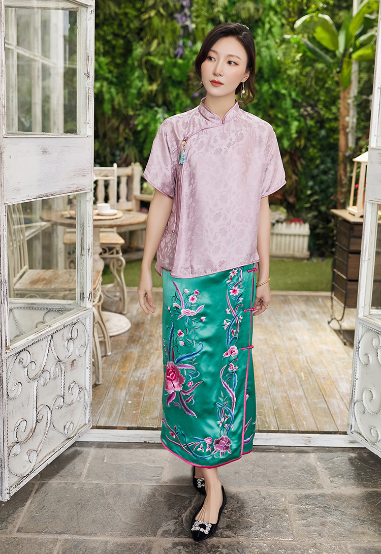斜门襟 配合中式古典纽扣 传达出的不仅是文化熏陶下的知性之美