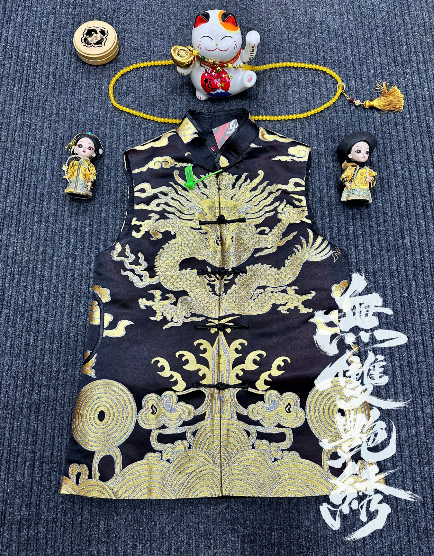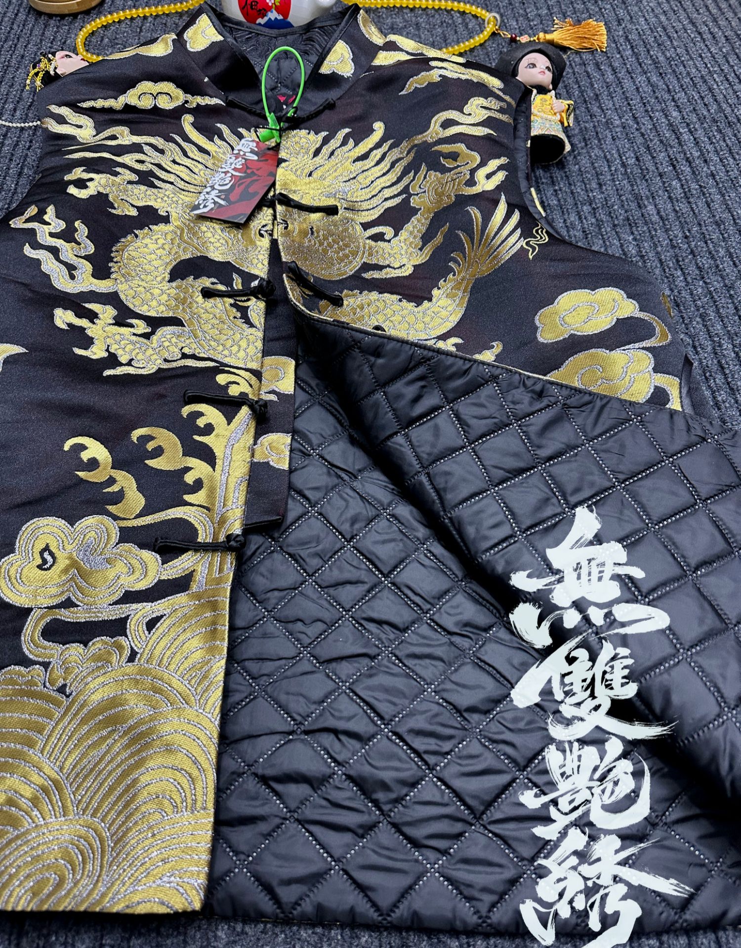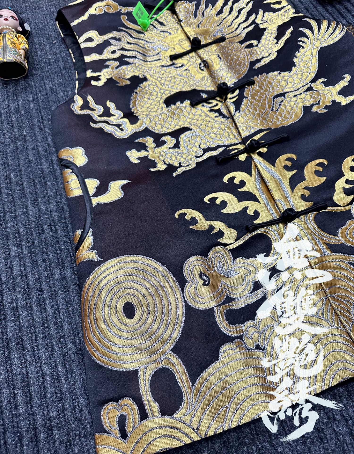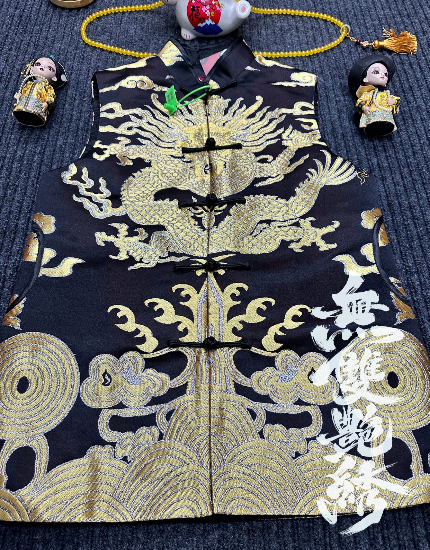 Asaya33 - Unparalleled Embroidery Original Design Weaving Brocade Dragon Robe Internet Celebrity Men and Women Large Size Retro Chinese Style Personalized Buckle Vest