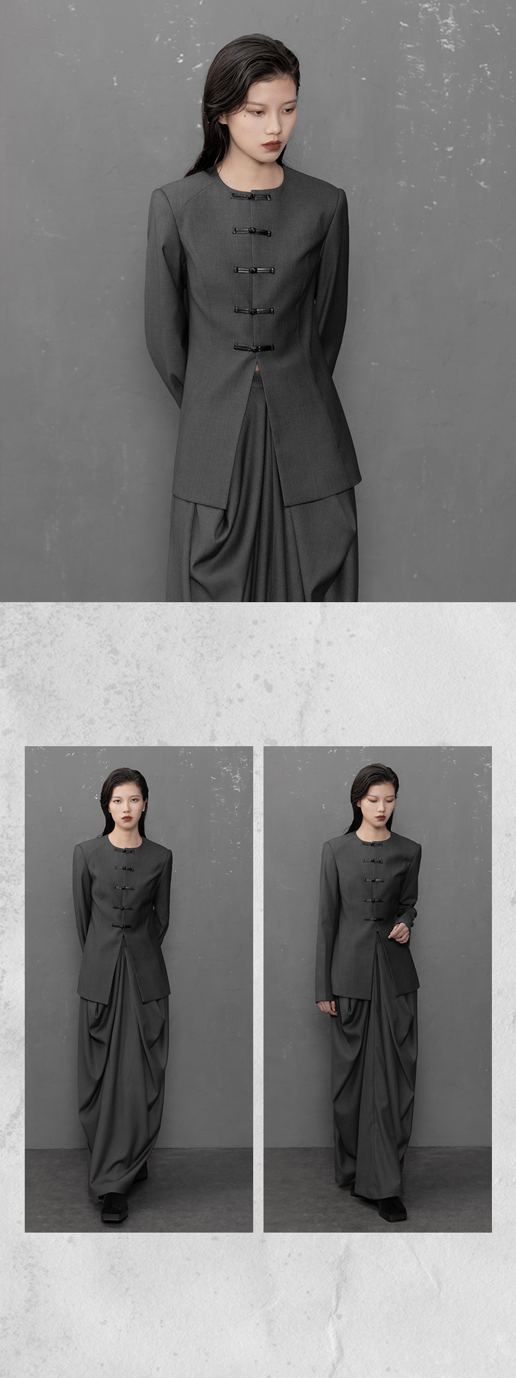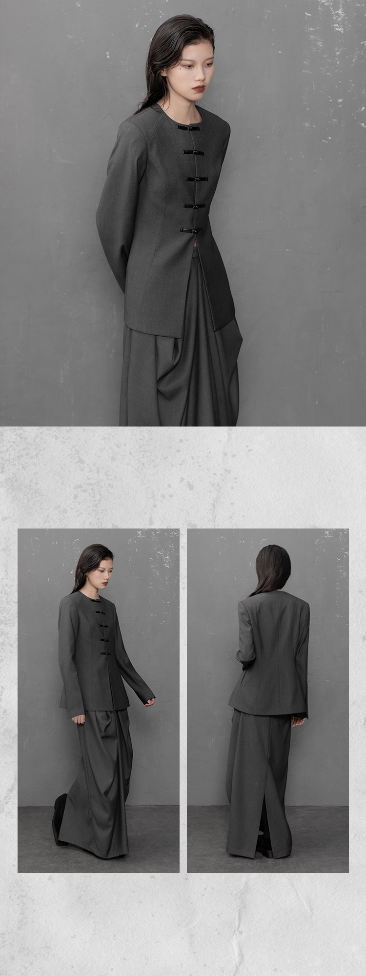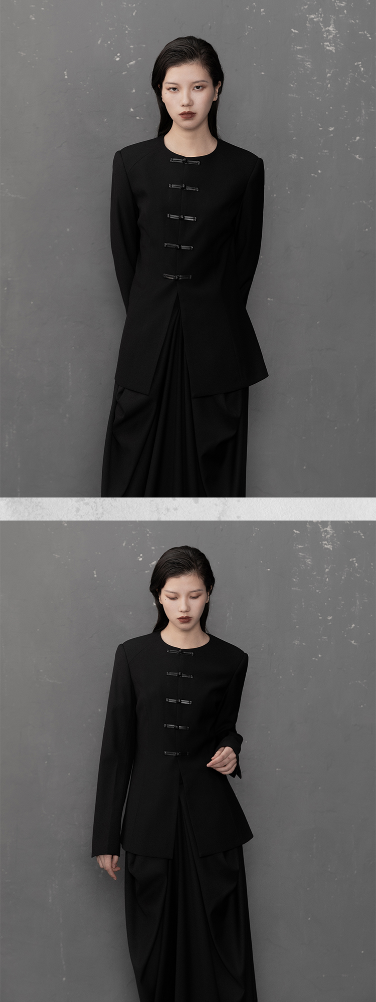 ASAYA1670 VAPOURBURE New Chinese style Pan Button Zhongshan Suit Women s Spring Retro Casual Collarless Slimming Suit Coat