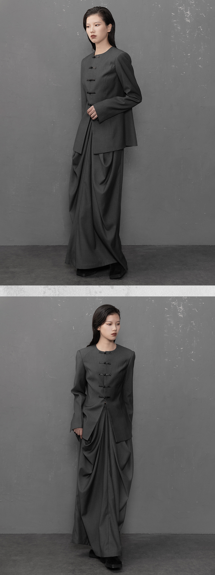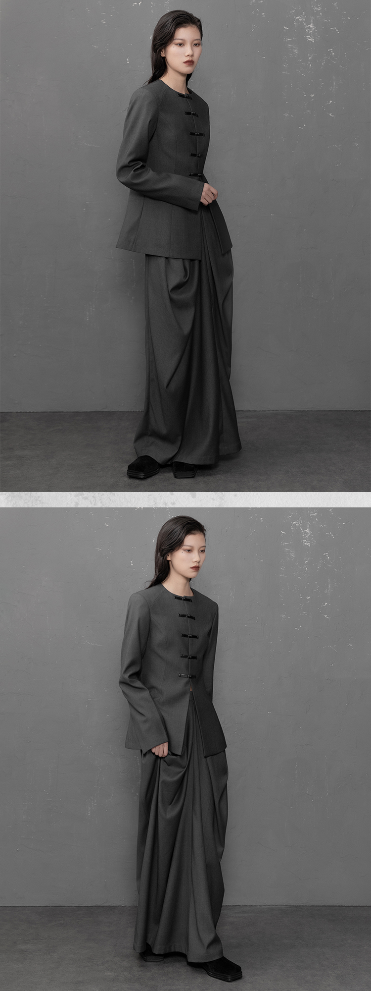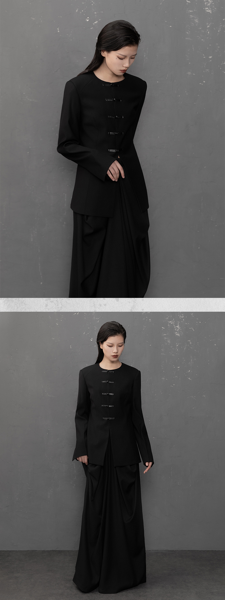 ASAYA1670 VAPOURBURE New Chinese style Pan Button Zhongshan Suit Women s Spring Retro Casual Collarless Slimming Suit Coat